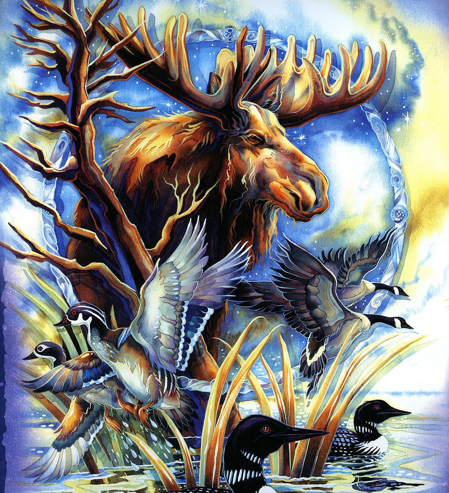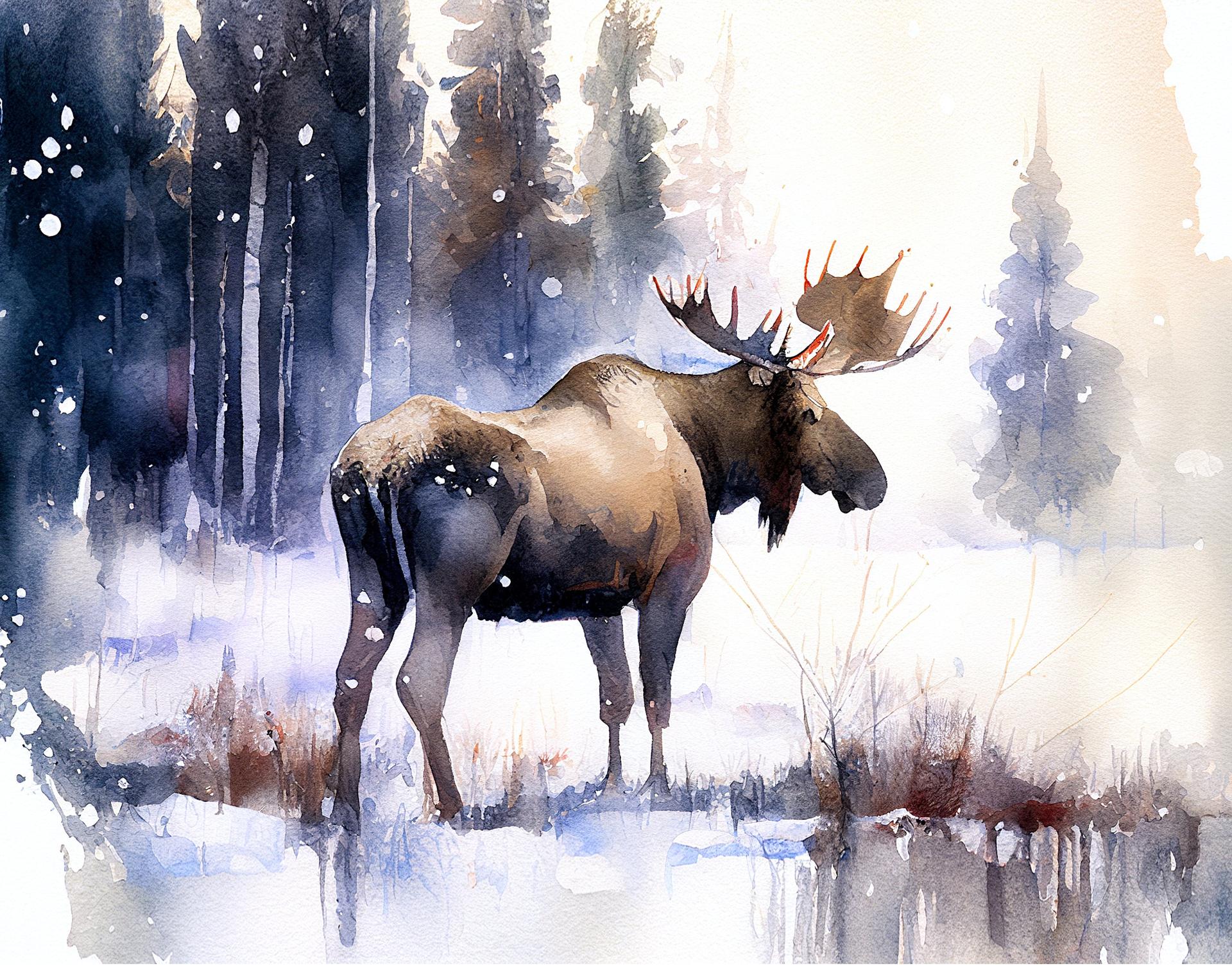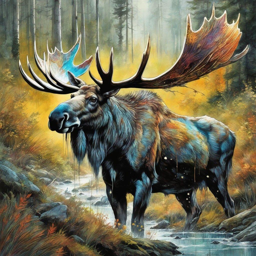Лось как символ северной природы и дикой мощи находит яркое воплощение в разнообразных художественных работах. В иллюстрациях он предстает то как величественный самец с размашистыми рогами, то как грациозная самка с детенышем. Художники мастерски передают атмосферу тайги: заснеженные леса, осенние пейзажи, летние луга с цветами. Разнообразие техник включает реалистичные рисунки с анатомической точностью, динамичные композиции в движении, концептуальные работы с элементами символизма. Особое внимание уделяется деталям: текстура шерсти, мощные рога, выразительные глаза. Коллекция представляет лося в различных сезонах и ситуациях - от спокойных пасторальных сцен до драматических моментов выживания в дикой природе.