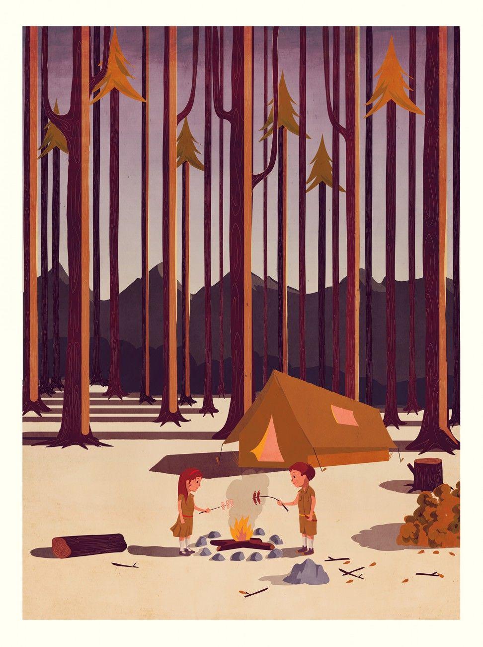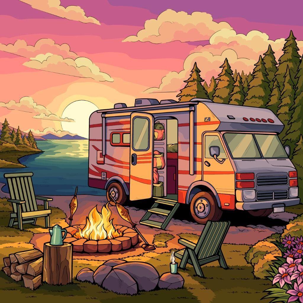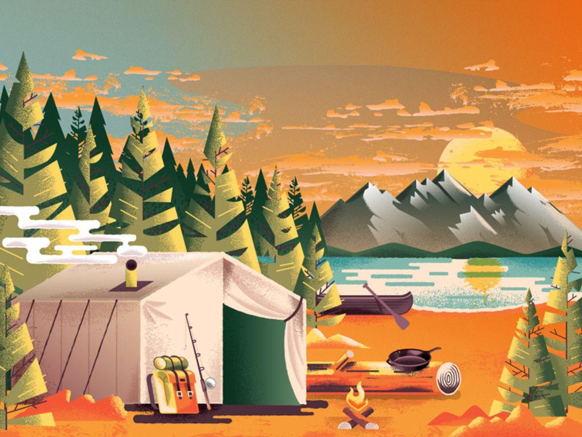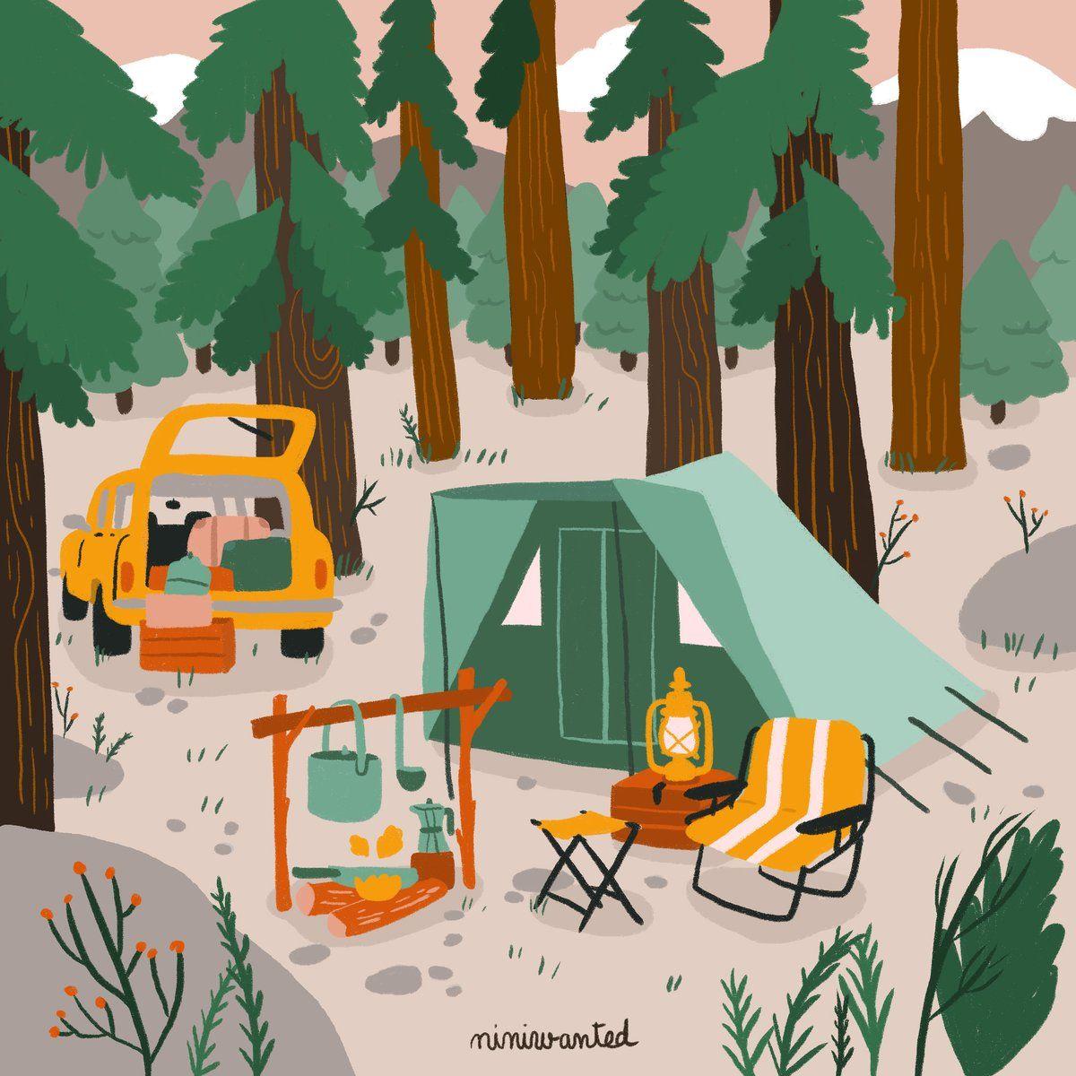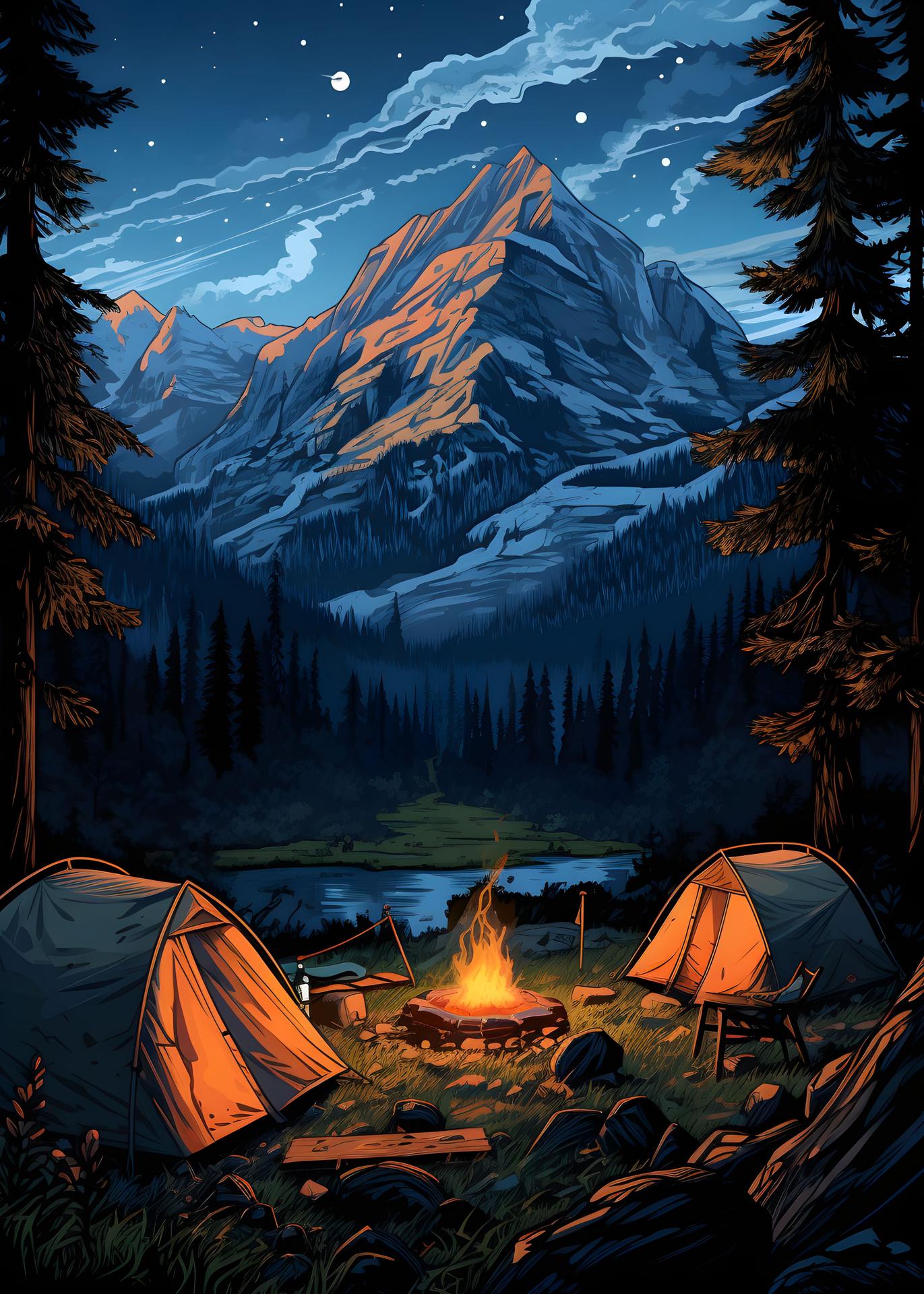 Кемпинг - это возвращение к истокам, где палатка и костер заменяют комфорт цивилизации. Эти иллюстрации показывают атмосферу приключений: установку лагеря, приготовление пищи на огне, ночные посиделки. Художники передают романтику дикой природы и camaraderie. Композиции включают лесные пейзажи, туристическое снаряжение, звездное небо. Тематические элементы охватывают outdoor-культуру, выживание в природе, медитацию. Каждая работа рассказывает о поиске внутреннего покоя через общение с природой.
