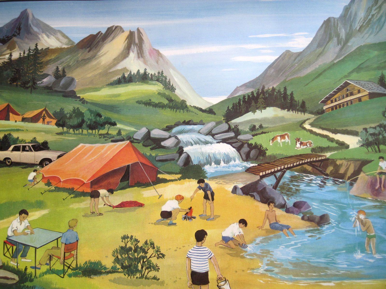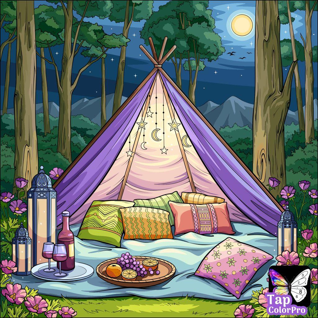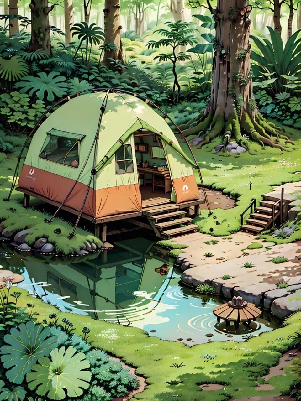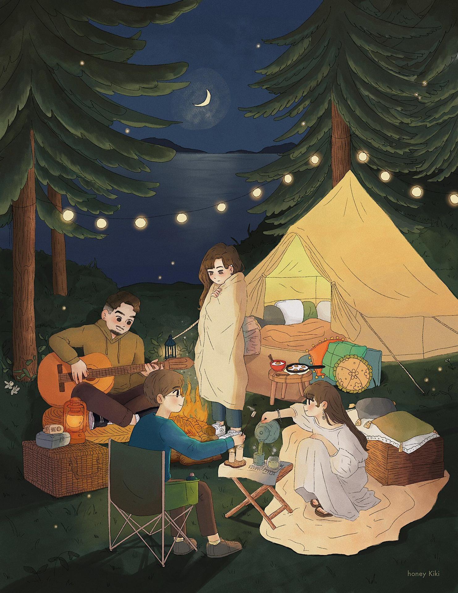 Кемпинг - это возвращение к истокам, где палатка и костер заменяют комфорт цивилизации. Эти иллюстрации показывают атмосферу приключений: установку лагеря, приготовление пищи на огне, ночные посиделки. Художники передают романтику дикой природы и camaraderie. Композиции включают лесные пейзажи, туристическое снаряжение, звездное небо. Тематические элементы охватывают outdoor-культуру, выживание в природе, медитацию. Каждая работа рассказывает о поиске внутреннего покоя через общение с природой.