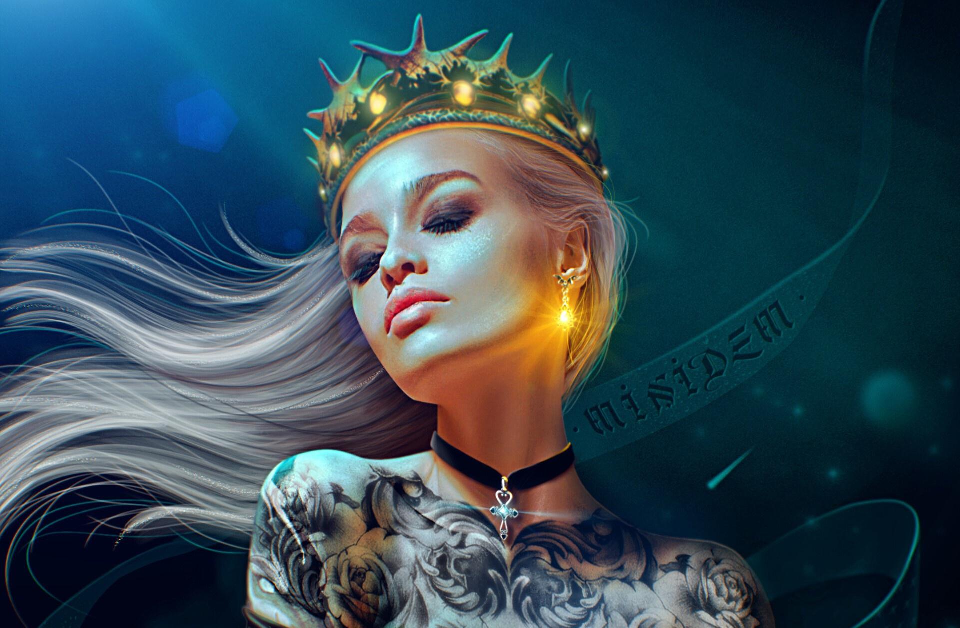 Девушка с короной Девушка с короной Спокойной ночи открытка Eve ventrue король Викторианское искусство Арты