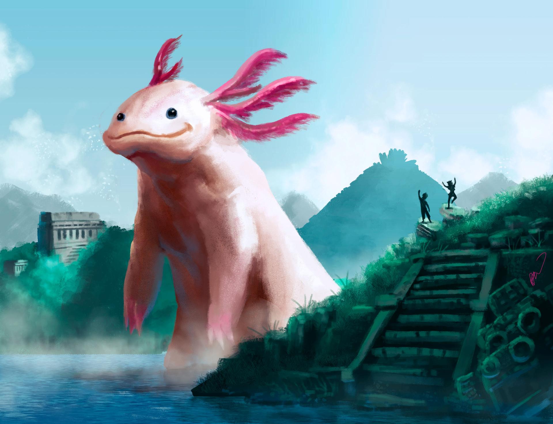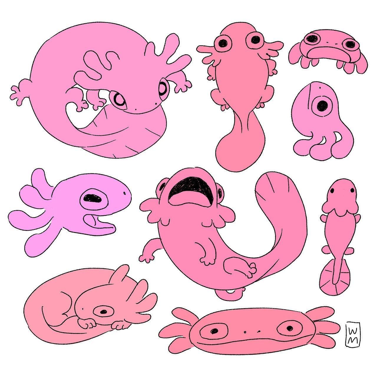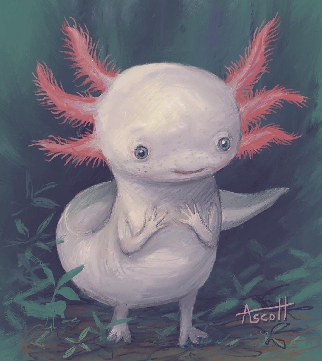 Аксолотль кавайи Хуманизированный аксолотль Аксолотль аниме Милые рисунки аксолотля Розовый аксолотль Арты