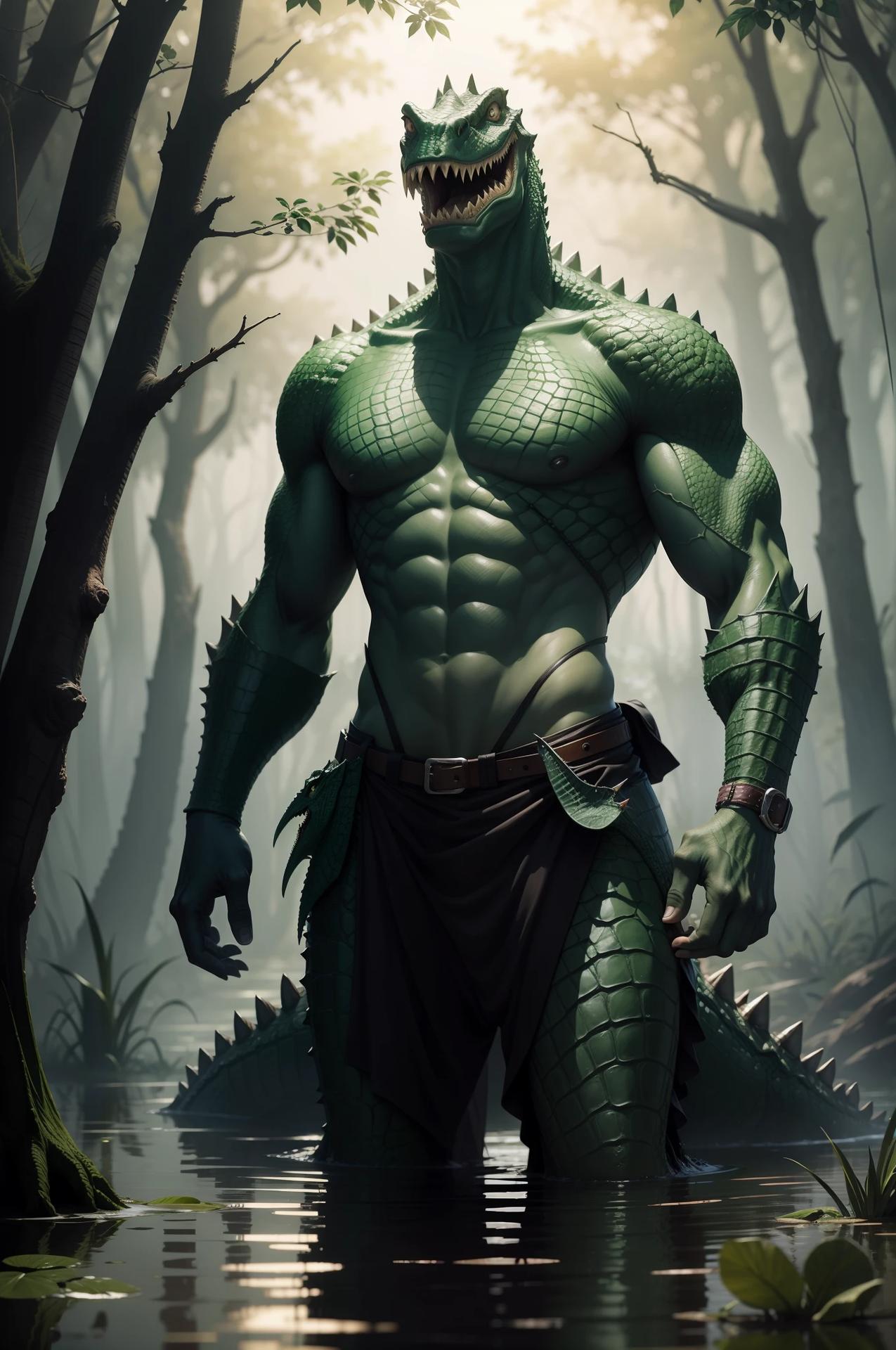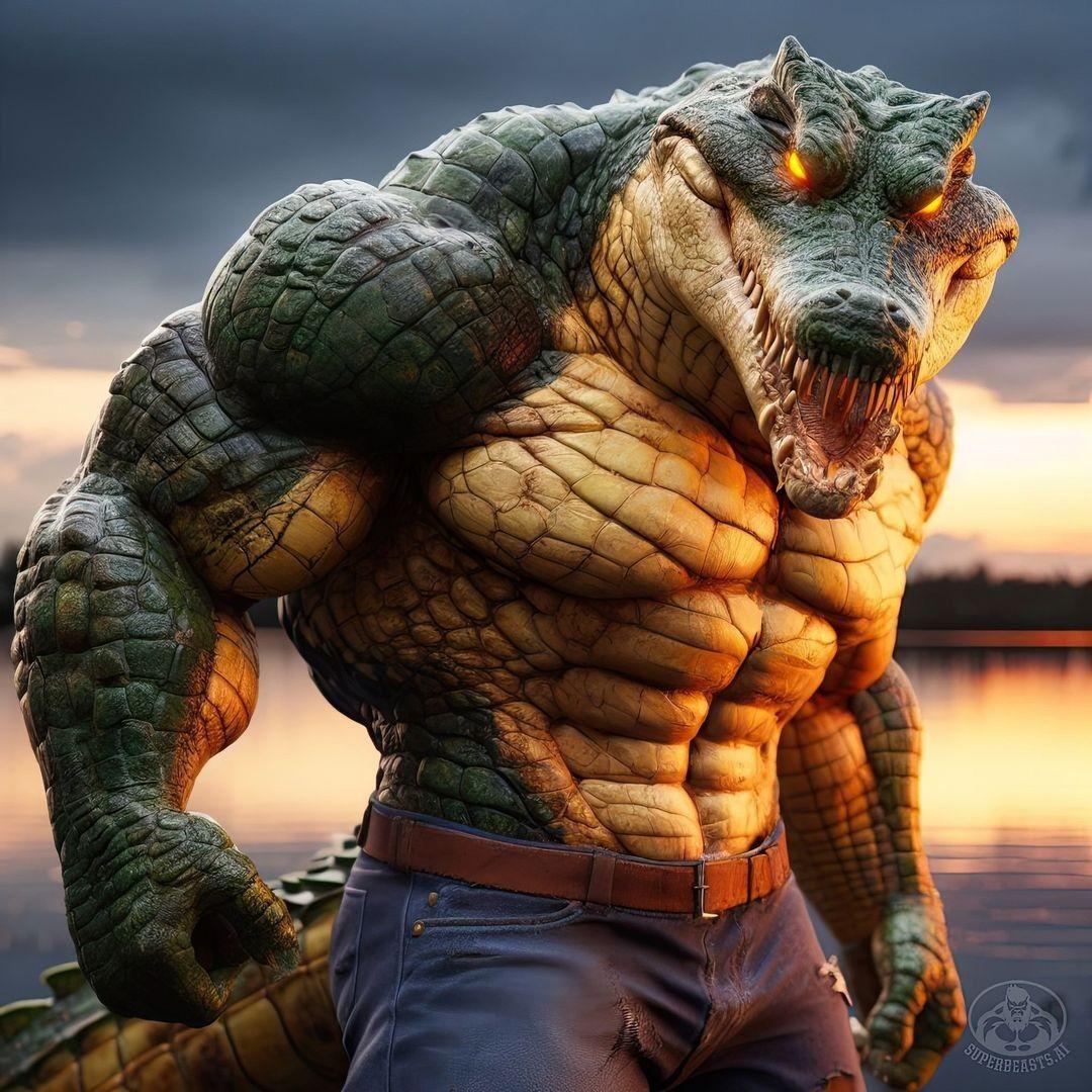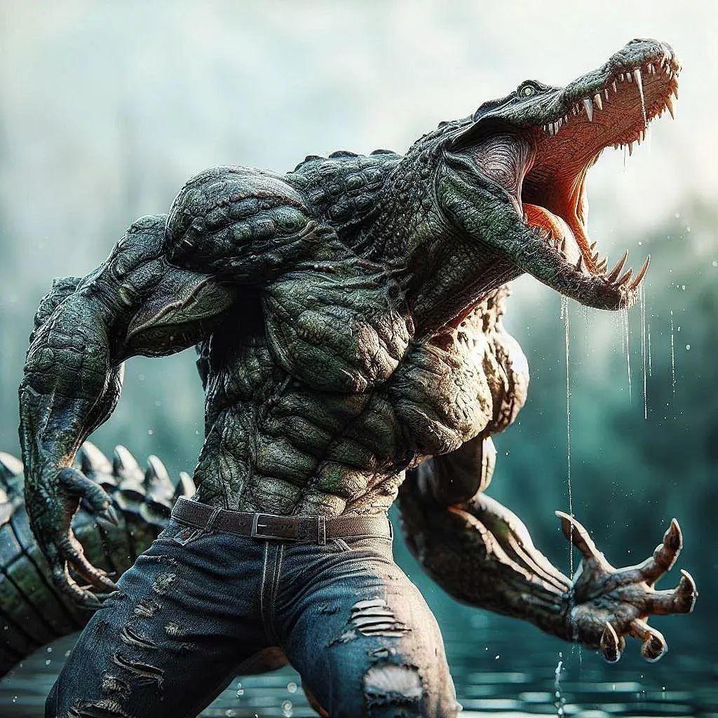 Человек крокодил - это не просто мутант, а живое воплощение единства человека и природы, наделенное разумом и волей. Его внешность завораживает и пугает одновременно, создавая образ, который невозможно забыть. Тело человека-крокодила покрыто чешуей, которая переливается всеми оттенками зеленого и коричневого, а глаза горят внутренним огнем, наполненным древней мудростью и нечеловеческой силой. Кожа мутанта имеет неземной оттенок, словно он высечен из самого мрамора, но теплая и живая на ощупь. Его фигура - это песня, сложенная из изгибов и линий, каждая из которых говорит о совершенстве. Одежда человека-крокодила - это не просто ткань, а продолжение его сущности, струящееся, как вода, и переливающееся всеми оттенками земли и неба. В руках он может держать различные символы силы - оружие, инструменты или просто мощь, которая исходит от его ладоней. Каждое движение мутанта исполнено грации и силы, а в воздухе вокруг него постоянно мерцают искры жизненной энергии, создавая атмосферу таинственности и красоты.