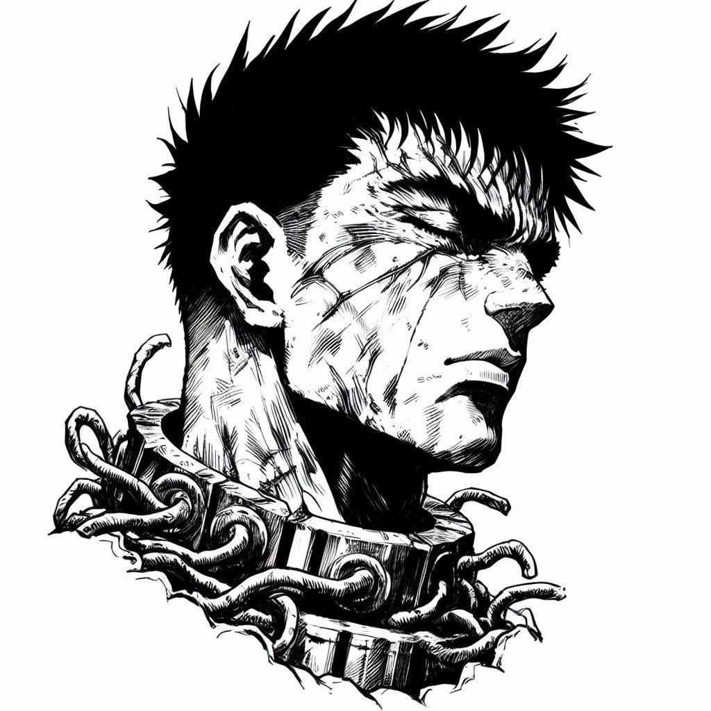 Гатс предстает как воплощение неукротимого духа - воин с механической рукой, ведомый жаждой мести в жестоком мире. Эти иллюстрации показывают его в различных испытаниях: сражениях с апостолами, странствиях по землям, охваченным хаосом, моментах редкого покоя с друзьями. Художники подчеркивают его суровый характер - шрамы на лице, огромный меч Драконья Смерть, непреклонная воля в глазах. Композиции передают атмосферу Берсерка - кровь и грязь полей битв, тени демонов в ночи, мрачные замки лордов. Некоторые работы фокусируются на его прошлом - детстве в наемниках, потере руки, встрече с Гриффитом. Эти изображения отражают темы судьбы, дружбы и человечности в мире, где зло принимает человеческий облик, а герой продолжает борьбу несмотря на все потери.