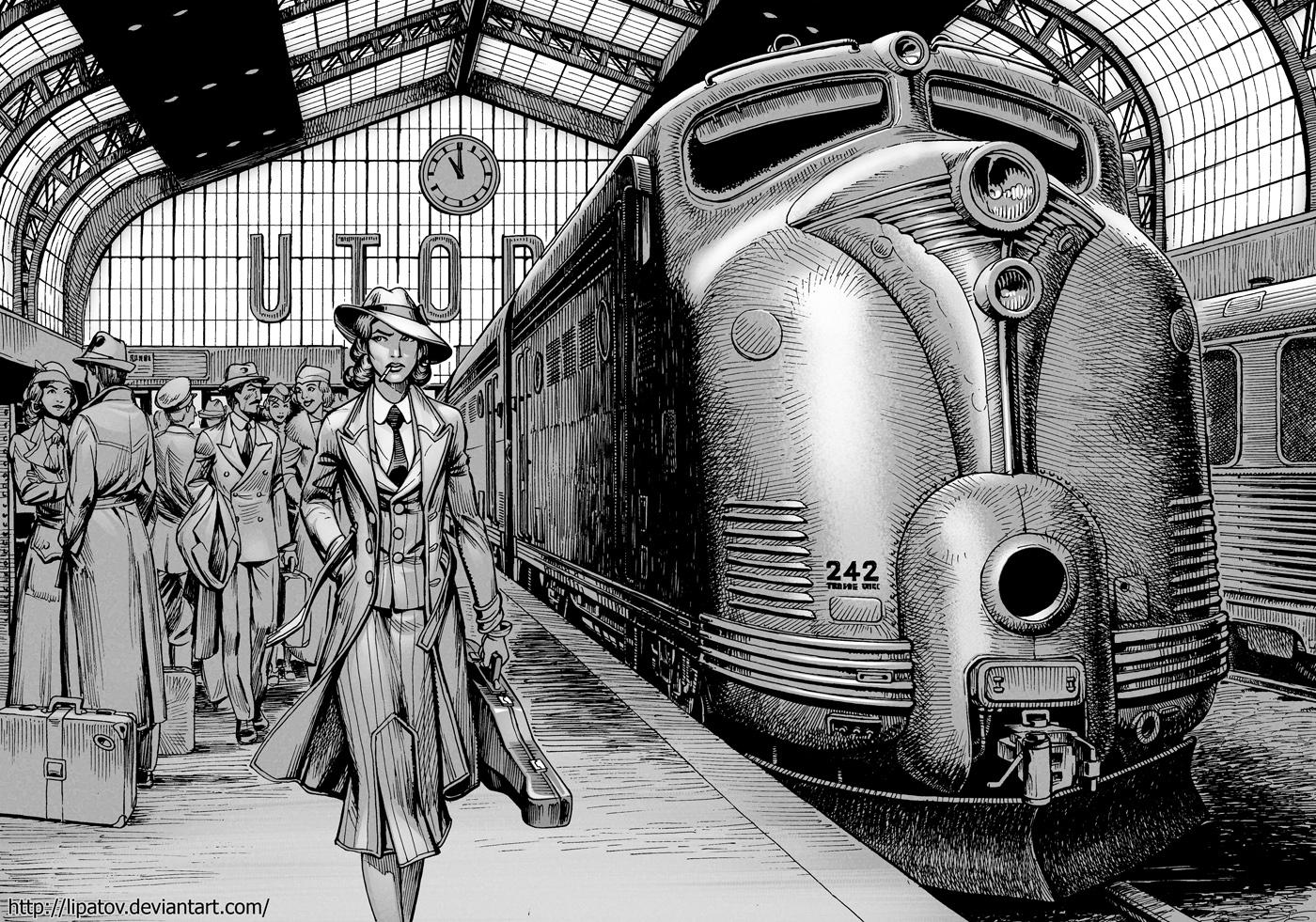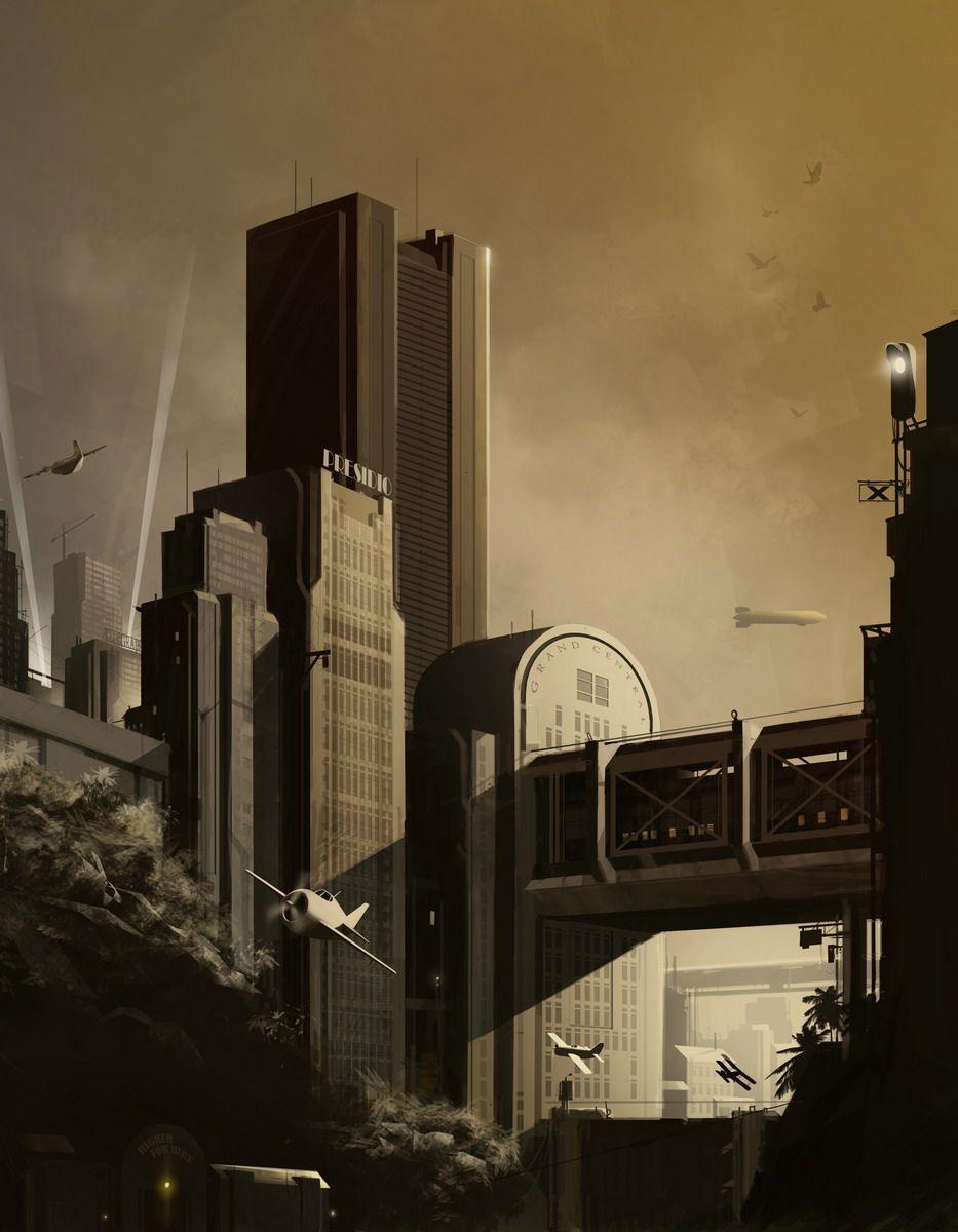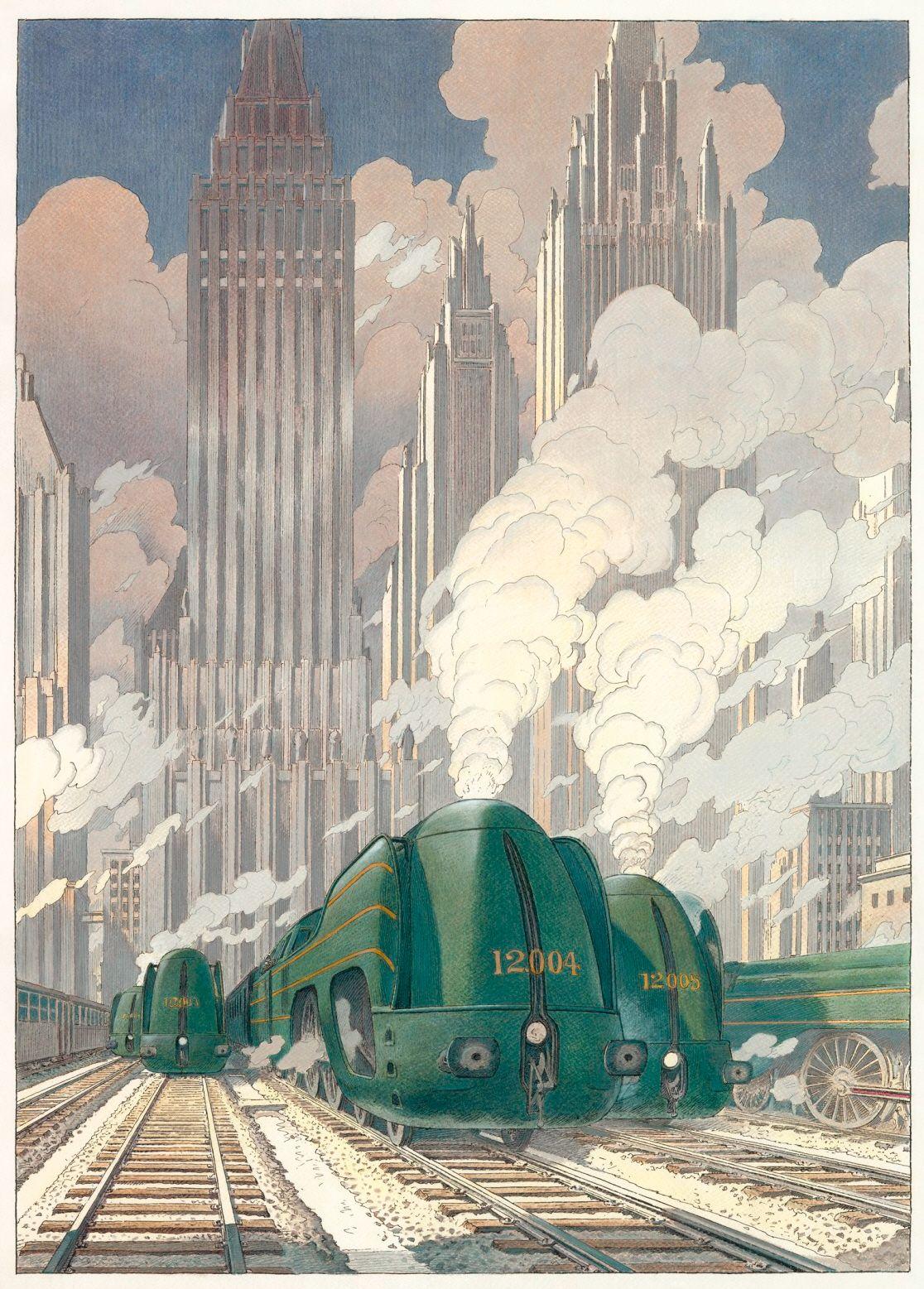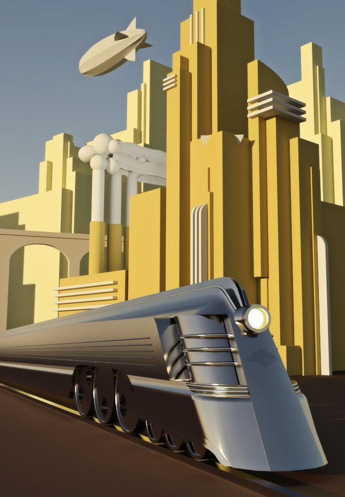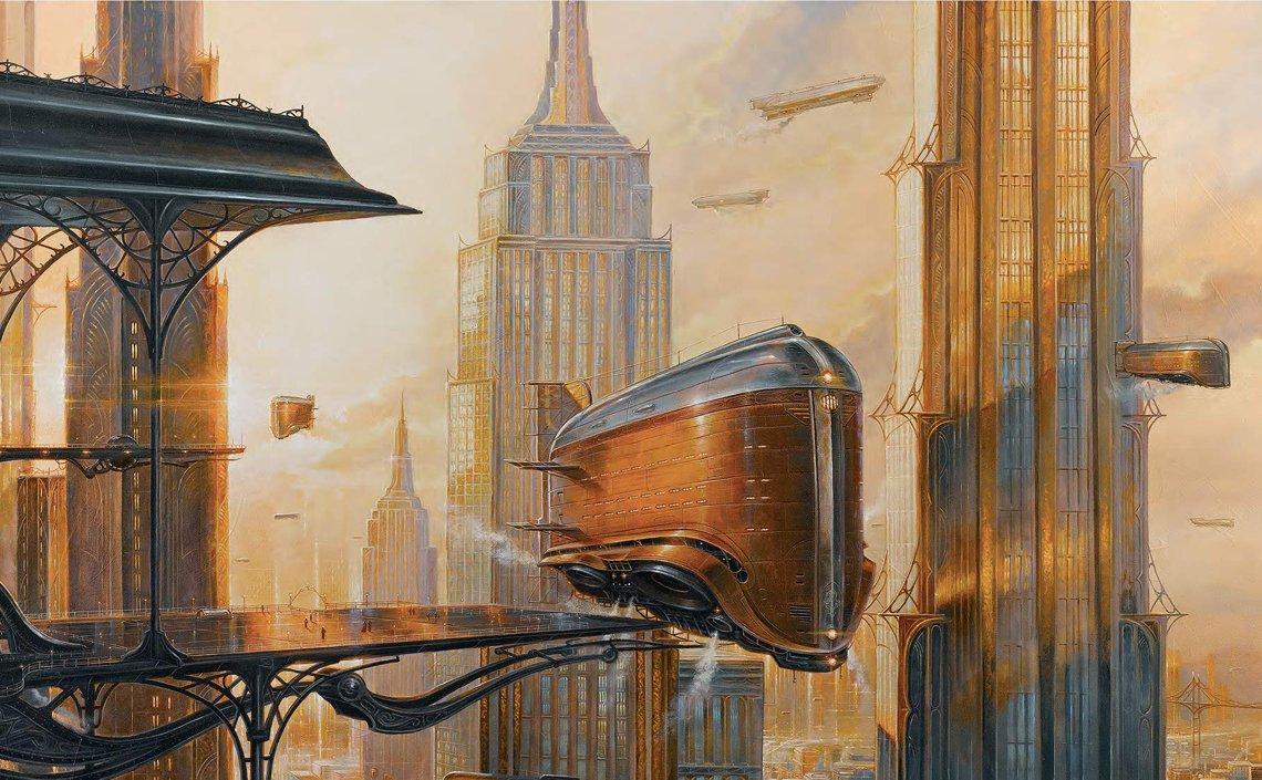 Поезд ар деко Алексей липатов художник дизельпанк Дизельпанк небоскребы Робот женщина Дирижабль жюль верн ретрофутуризм Арты