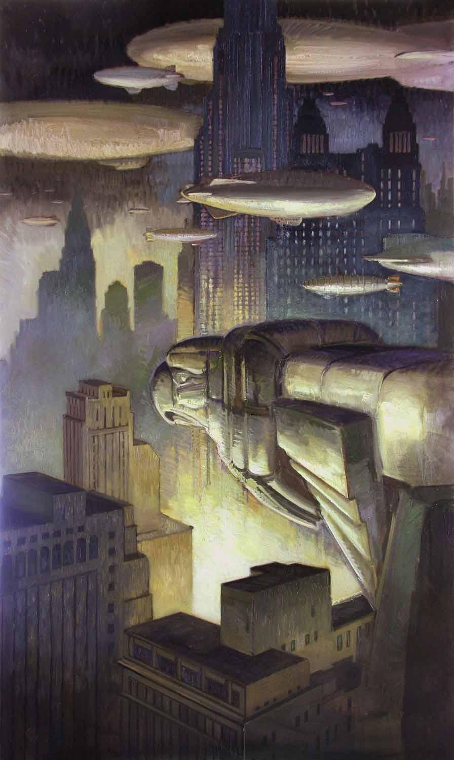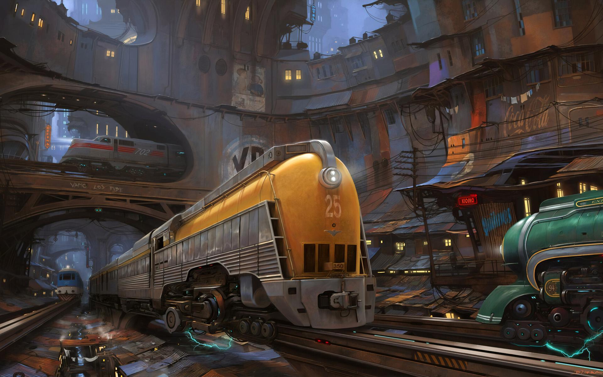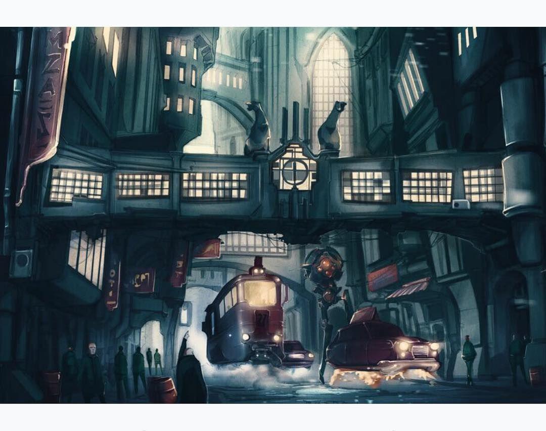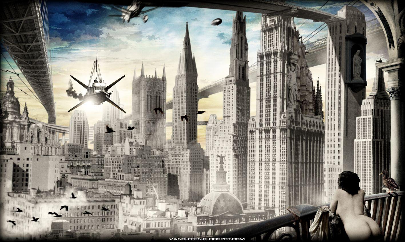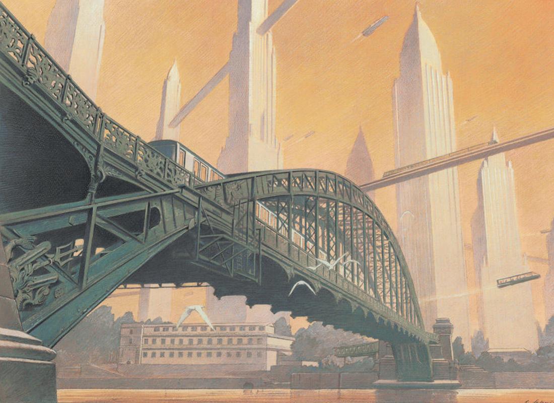Поезд ар деко Алексей липатов художник дизельпанк Дизельпанк небоскребы Робот женщина Дирижабль жюль верн ретрофутуризм Арты