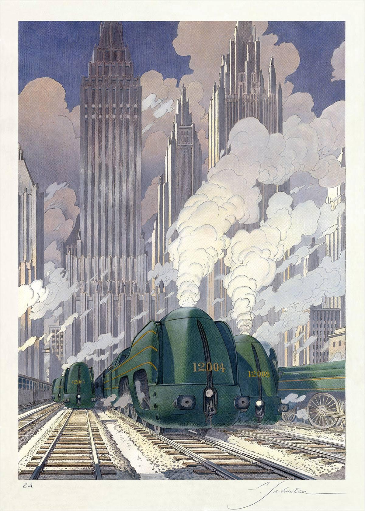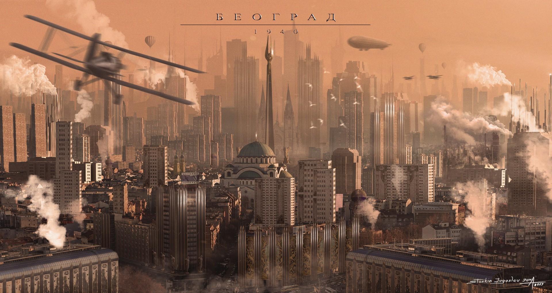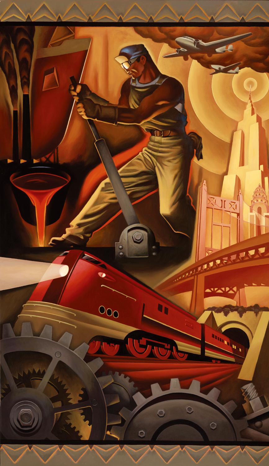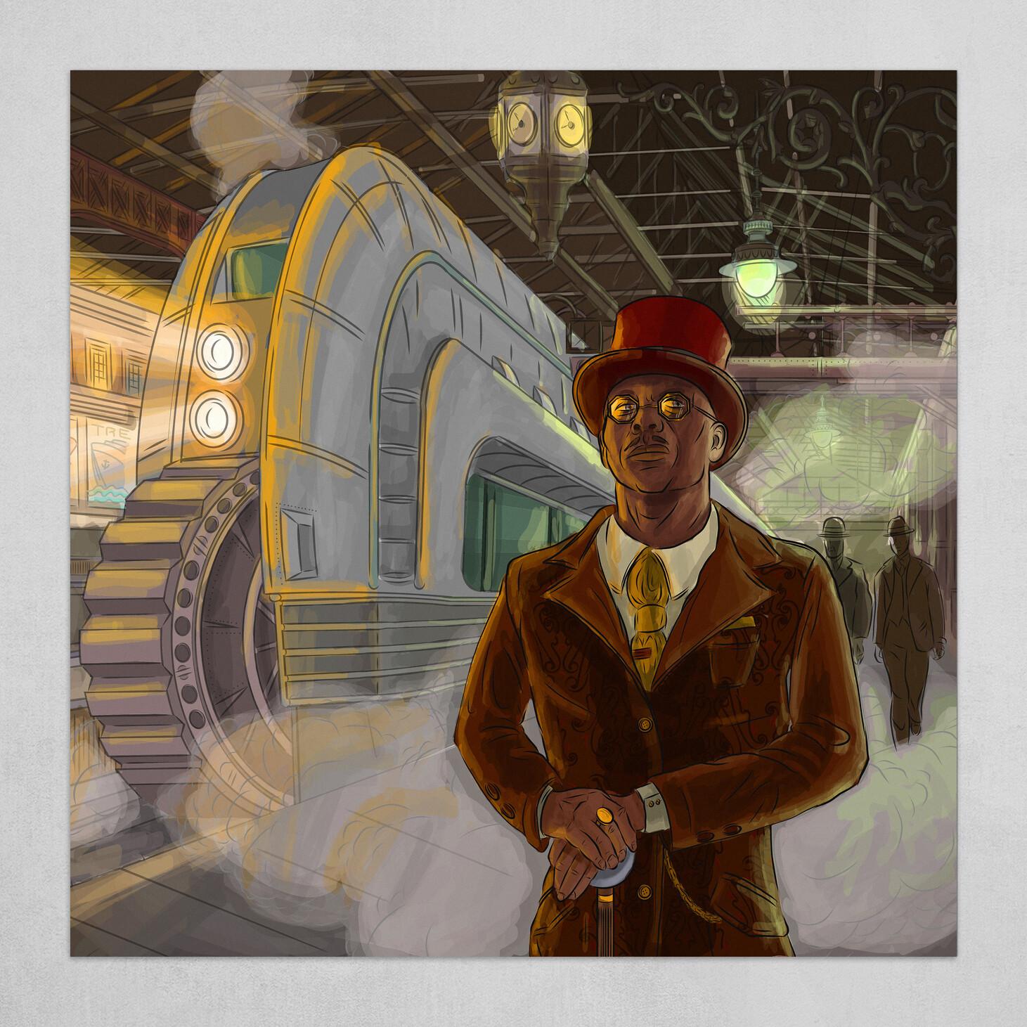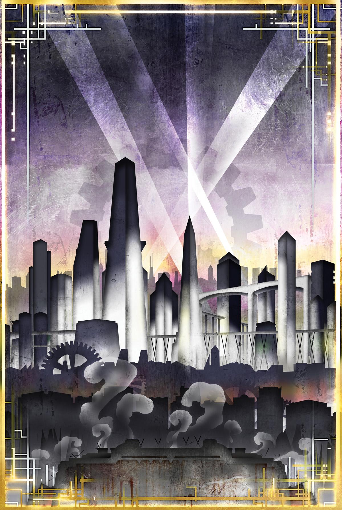 Поезд ар деко Алексей липатов художник дизельпанк Дизельпанк небоскребы Робот женщина Дирижабль жюль верн ретрофутуризм Арты