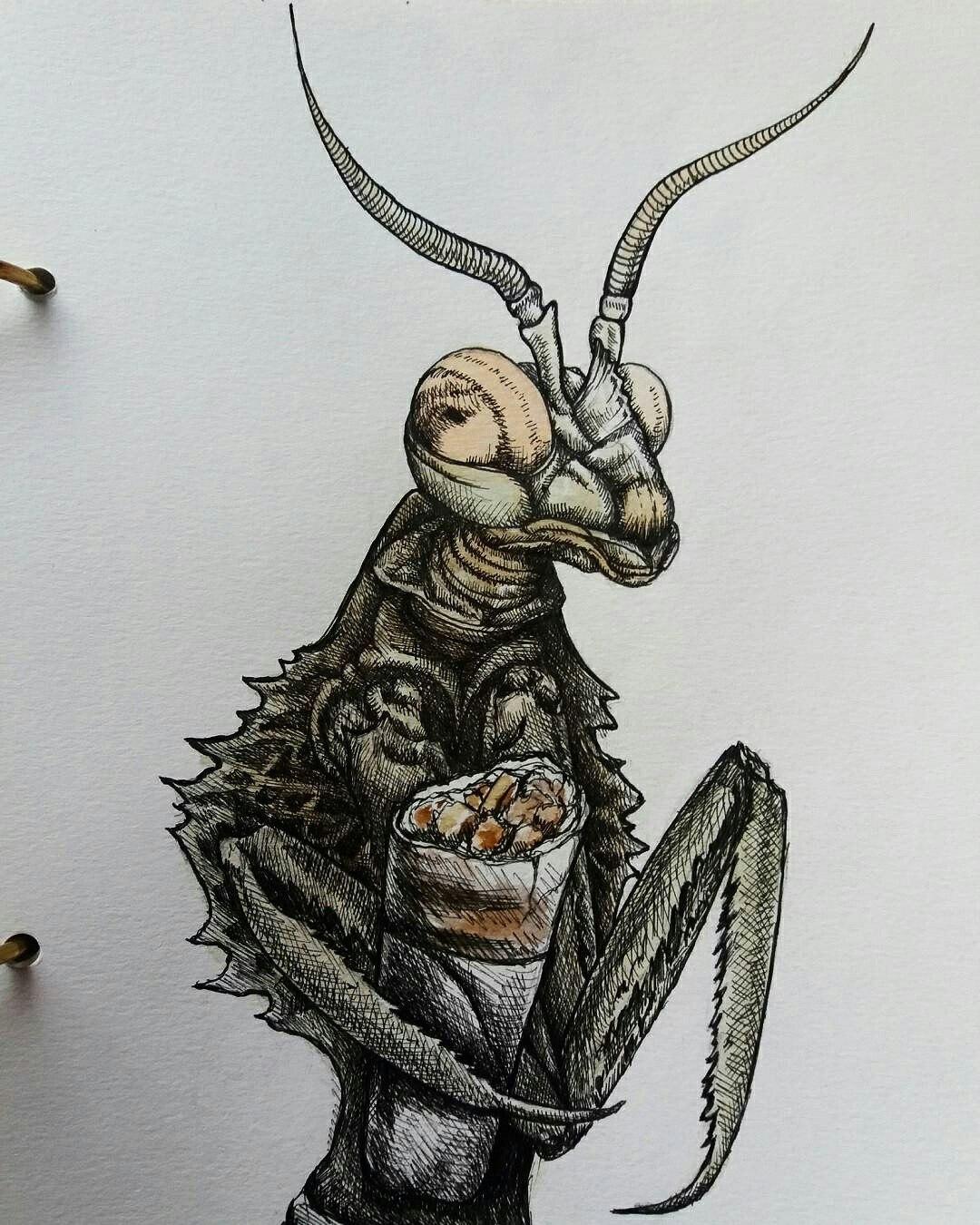 Боливария короткокрылая Богомол рисунок Чужой ксеноморф avp Тор валум звездные войны Постапокалипсис монстры Арты