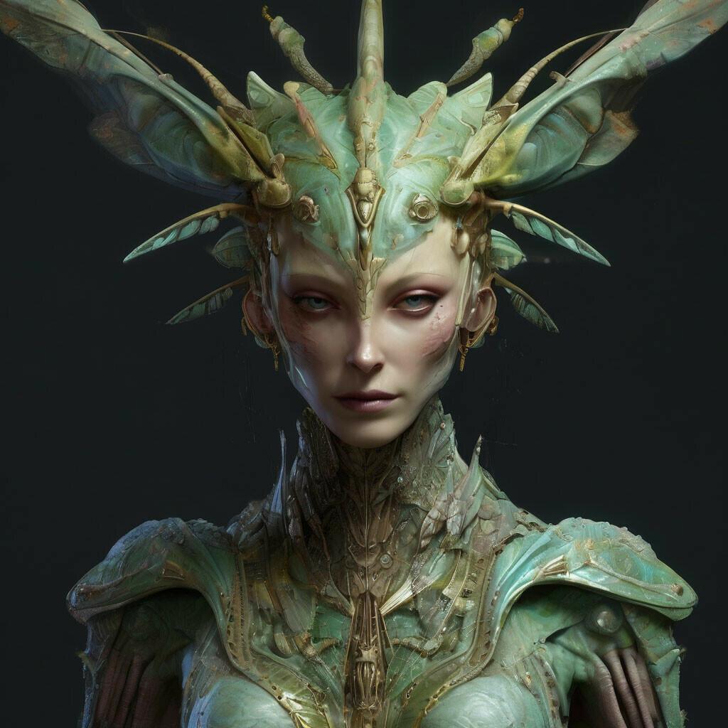 Инсектоид девушка - это не просто персонаж фэнтези, а живое воплощение единства человека и насекомого, наделенное разумом и волей. Ее внешность завораживает и восхищает, создавая образ, который невозможно забыть. Богомол - это не просто насекомое, а воплощение различных архетипов, от нежных существ до могущественных монстров. Ее длинные волосы струятся по плечам, словно живой водопад, а глаза горят внутренним огнем, наполненным жизненной силой и инстинктом. Насекомые элементы на теле инсектоида - это не просто украшения, а продолжение ее сущности, отражающие ее связь с природой. Каждый жест инсектоида исполнен грации и силы, а в воздухе вокруг нее постоянно мерцают искры насекомой энергии, создавая атмосферу таинственности и красоты.