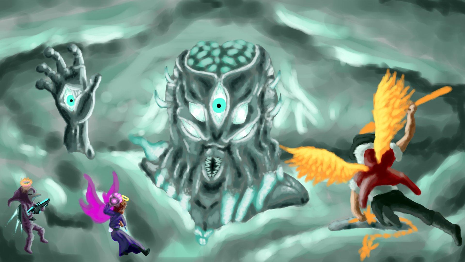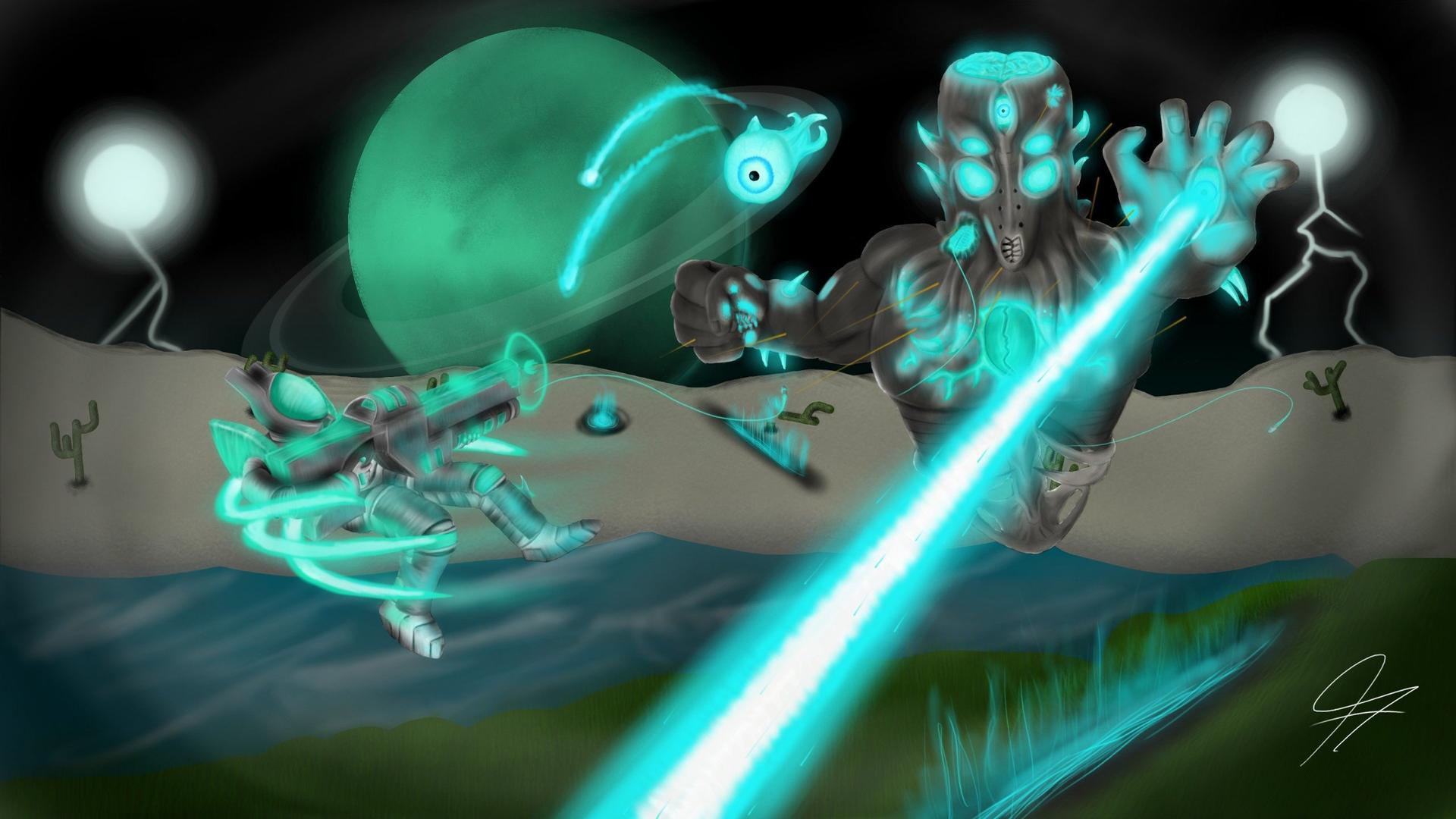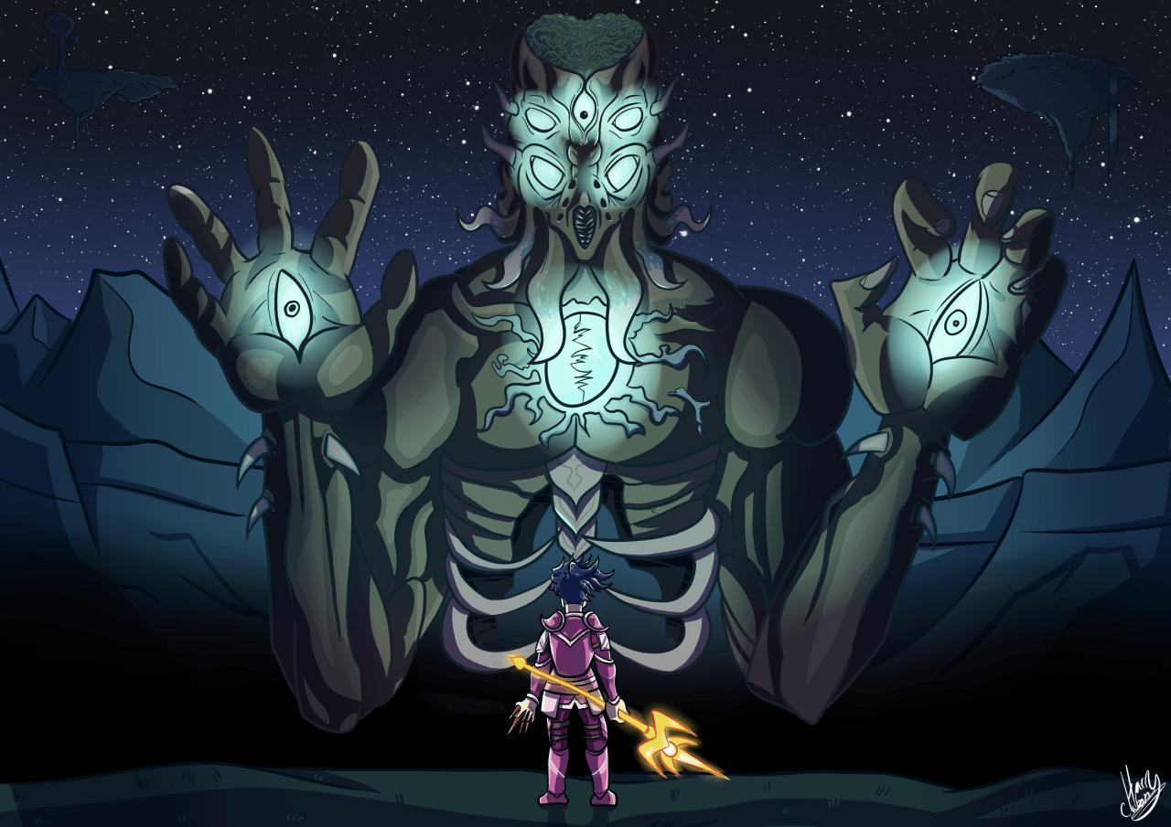 Лунный лорд из мира Террарии предстает в этих иллюстрациях как воплощение космического ужаса и невероятной мощи. Художник мастерски передает атмосферу финальной битвы, показывая огромные размеры босса, его разрушительную силу и сложные атаки. Композиции часто захватывают кульминационные моменты сражения, с пролетающими метеорами и энергетическими вспышками. Детали тщательно проработаны: текстура тела лорда, разнообразное оружие и эффекты магии. Цветовая палитра создает ощущение эпичности - яркие контрасты и динамичное освещение. Эти цифровые арты особенно ценны для фанатов игры и любителей босс-артов.