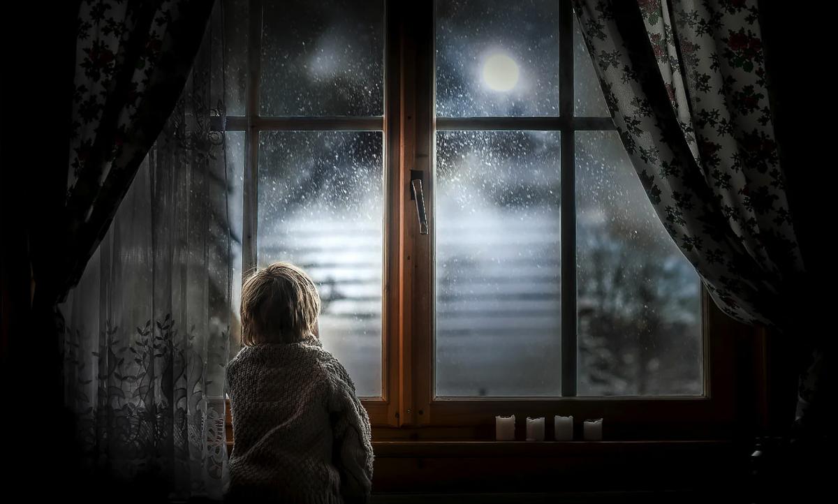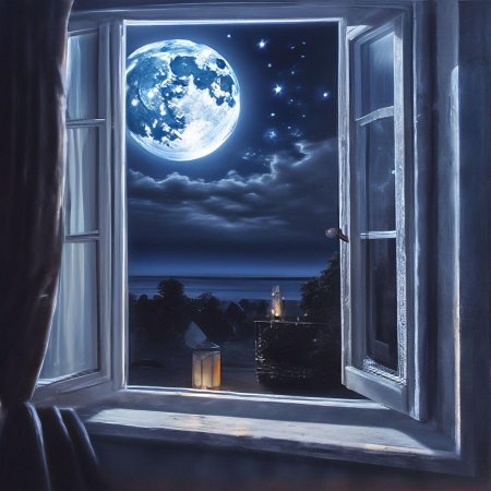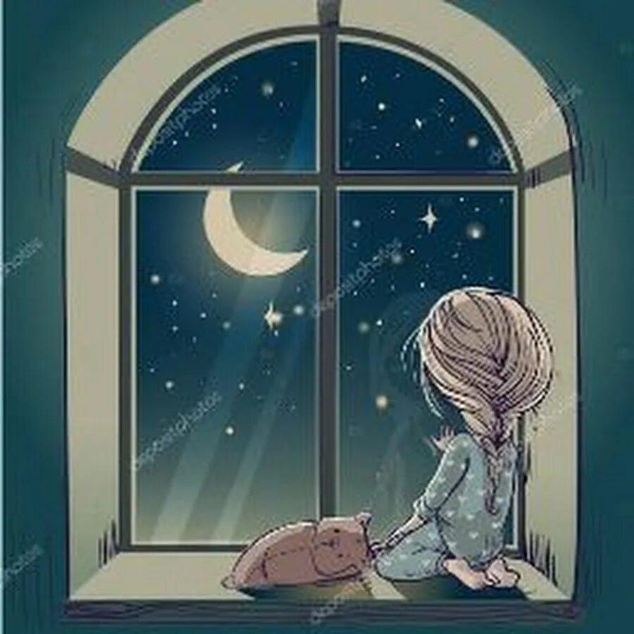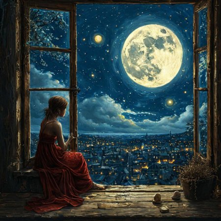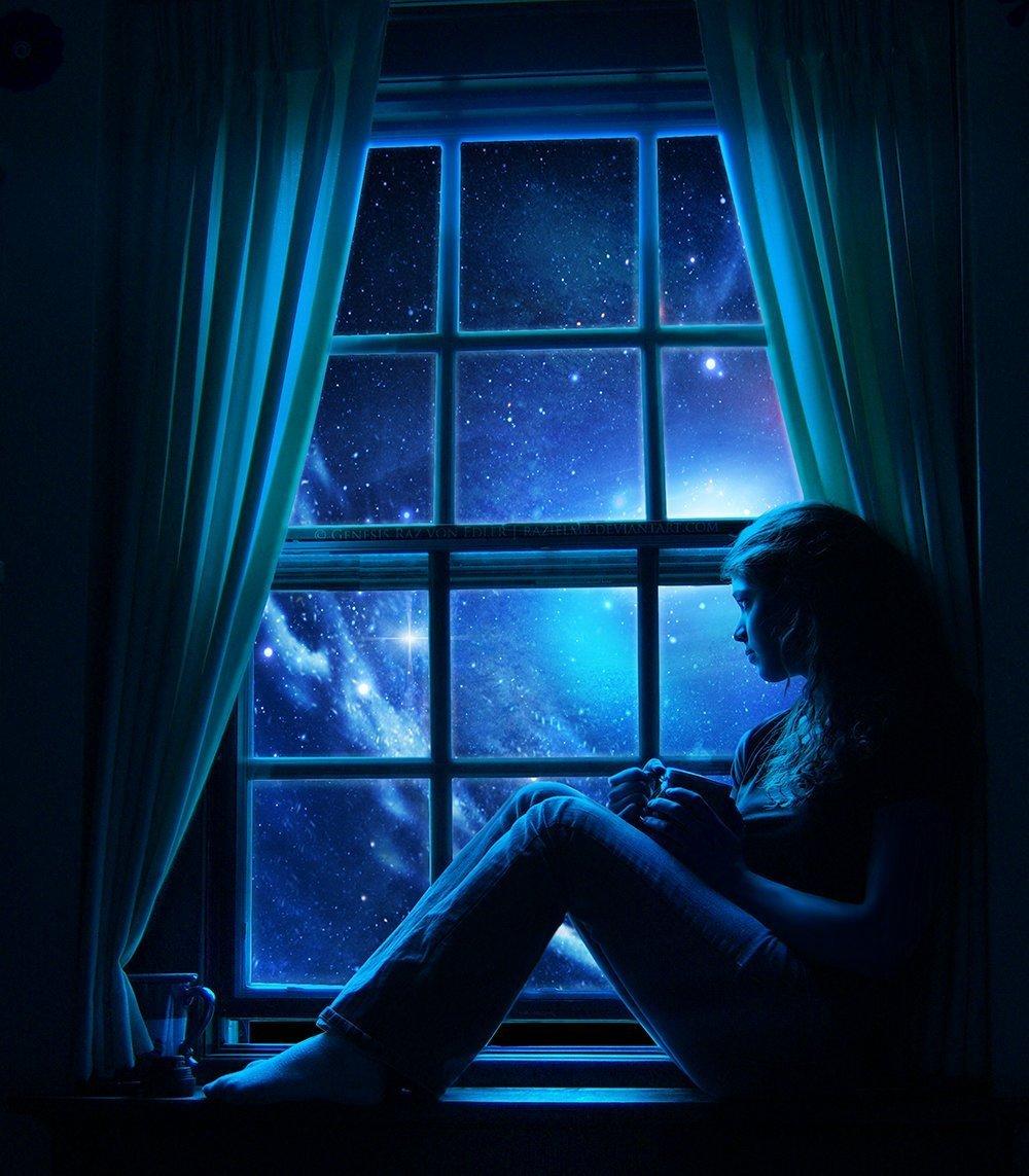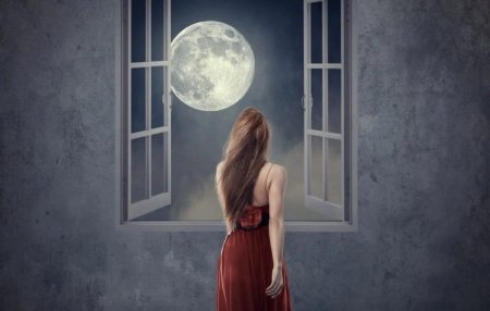 Девушка у окна луна