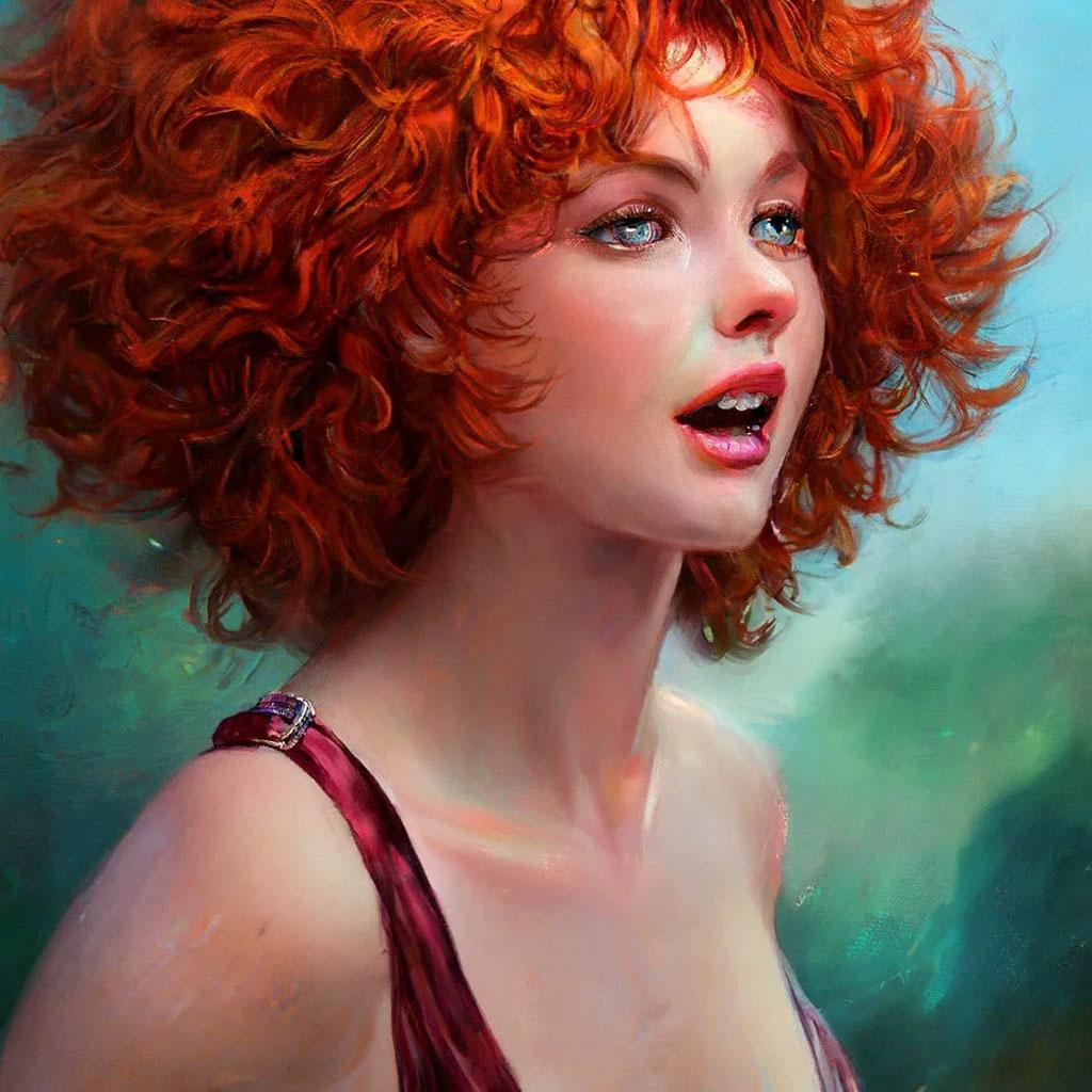 Кудрявая рыжая девушка