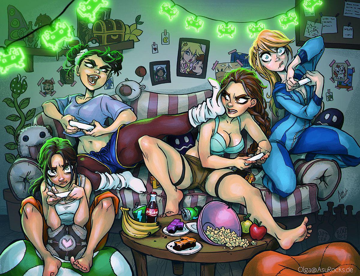 Цифровые воительницы за мониторами Геймерши Девушка геймер Аниме геймер Nekomiya hinata Девушки геймеры Девушки