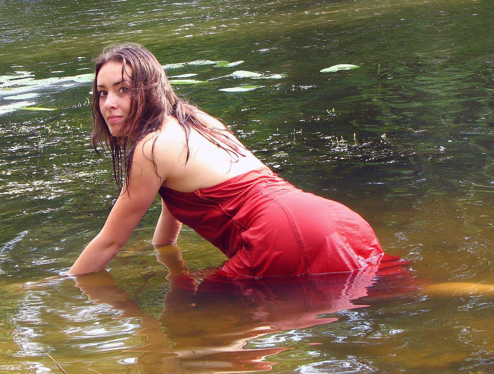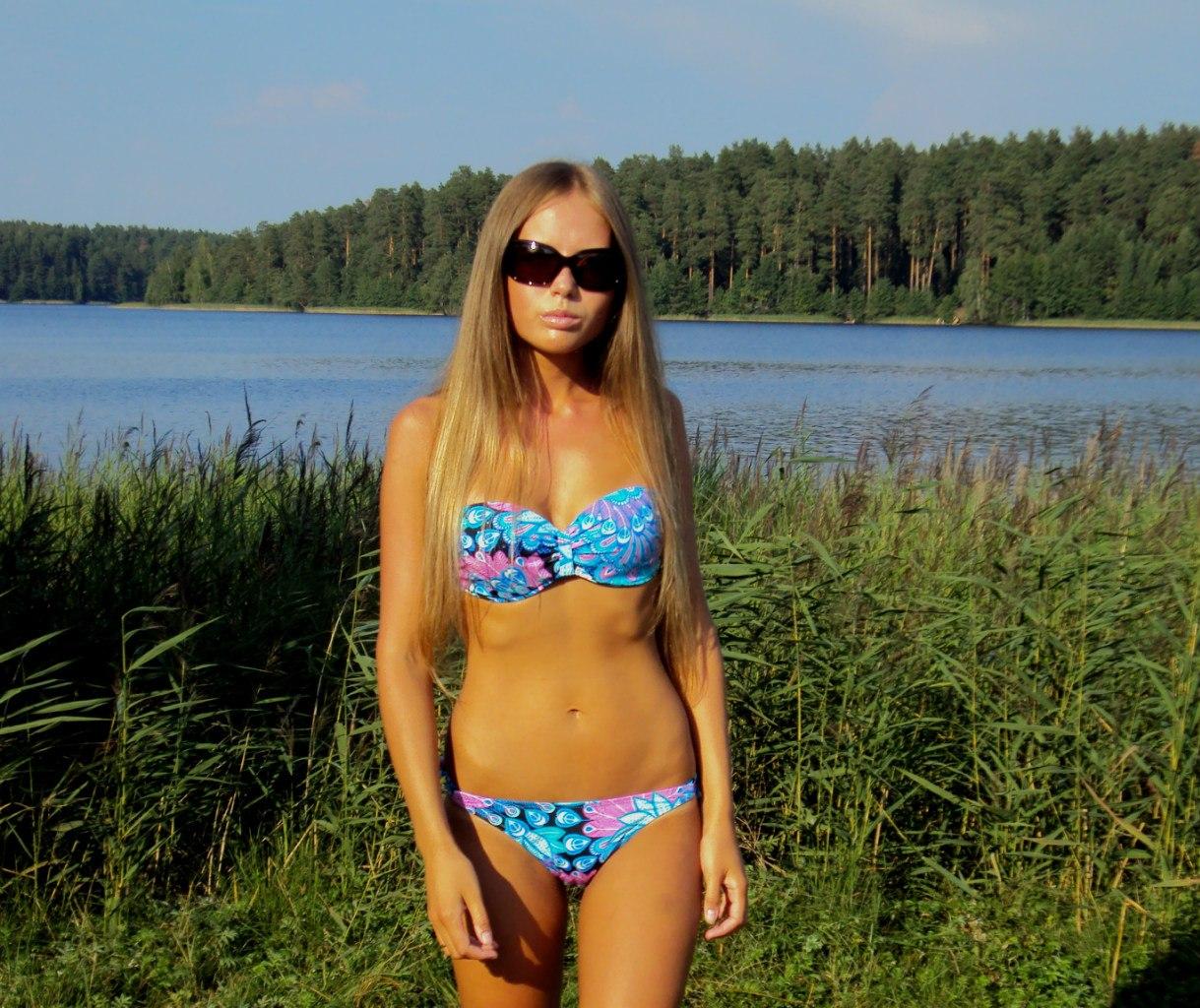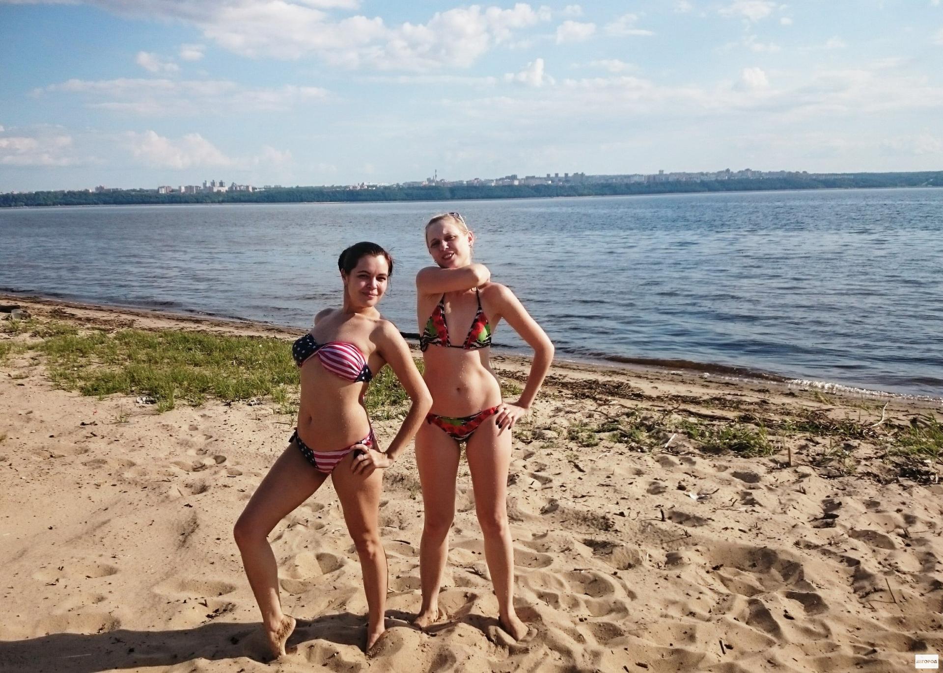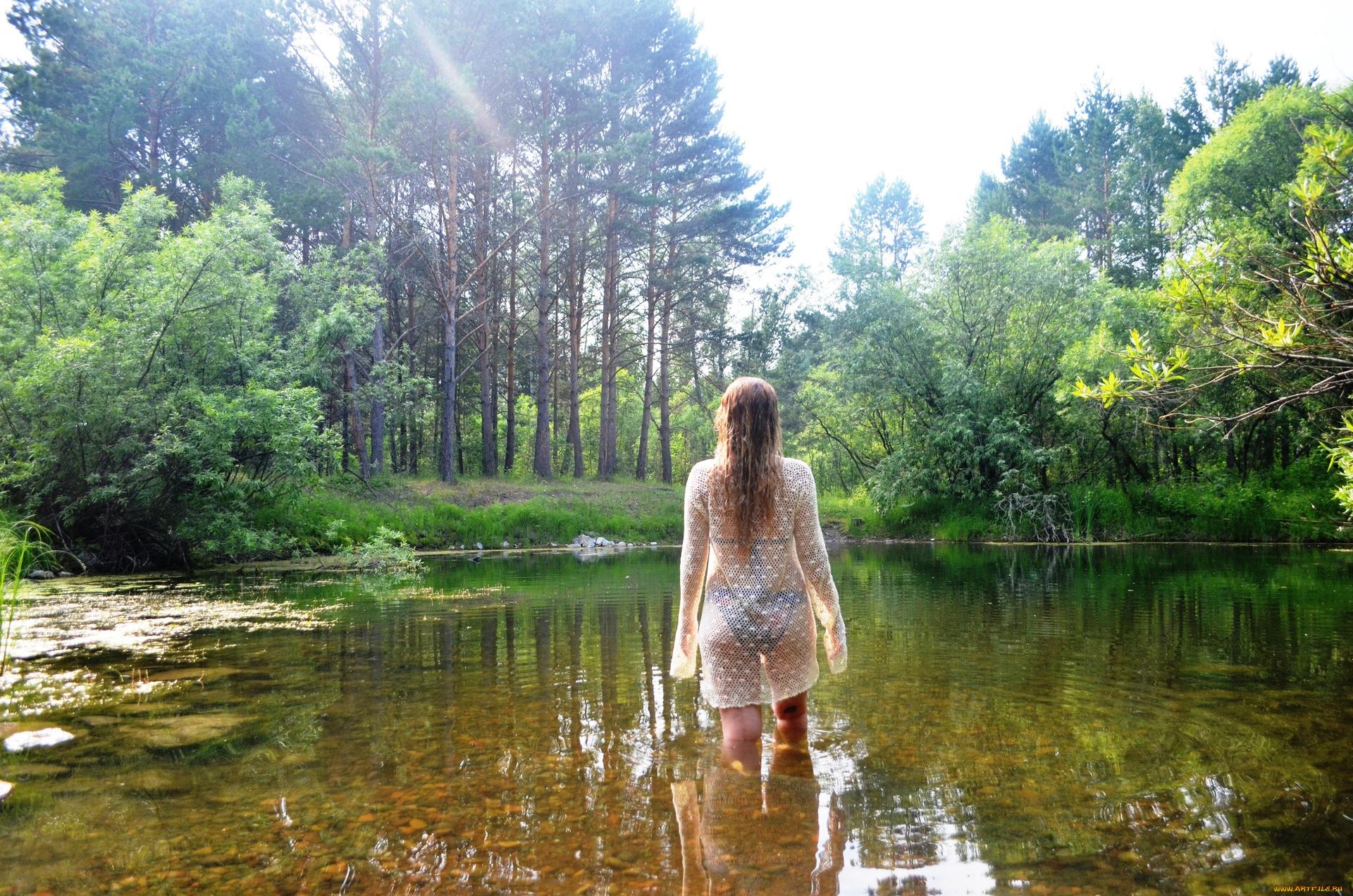 Девушки в купальниках на речке