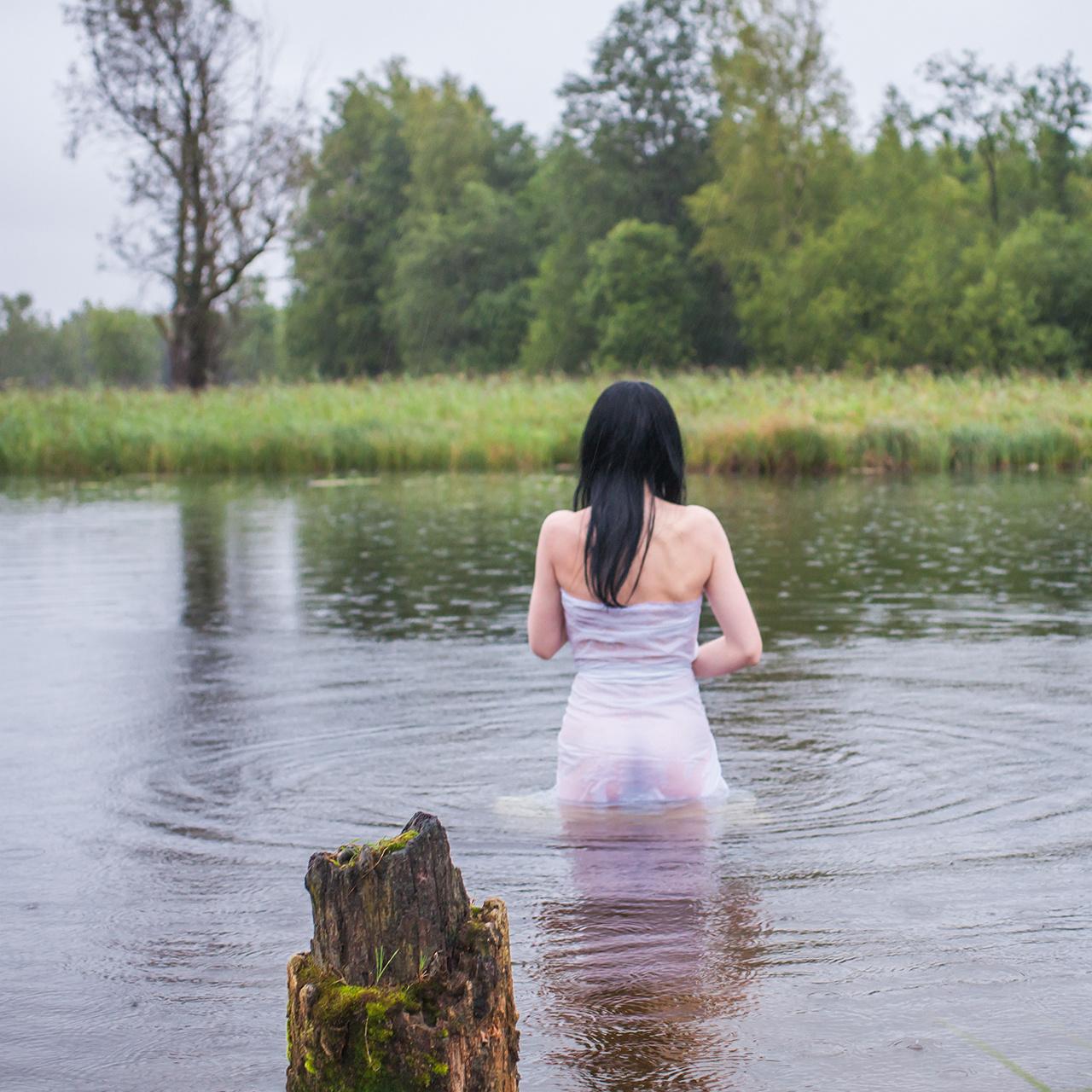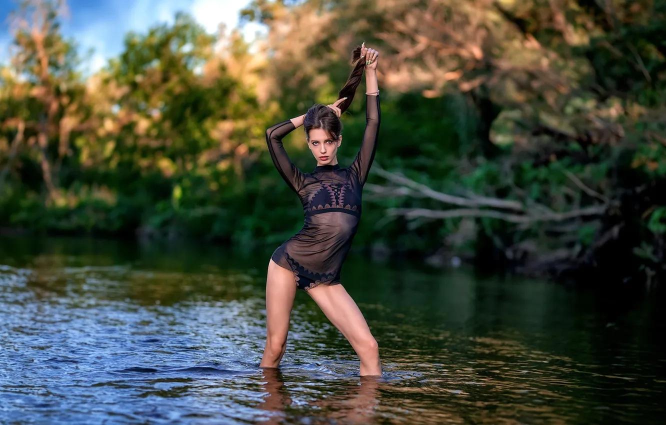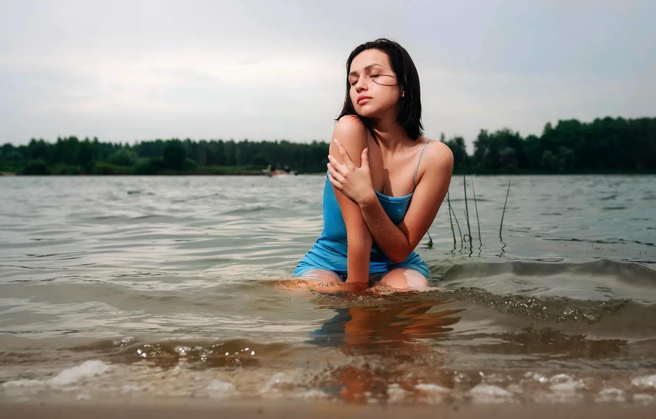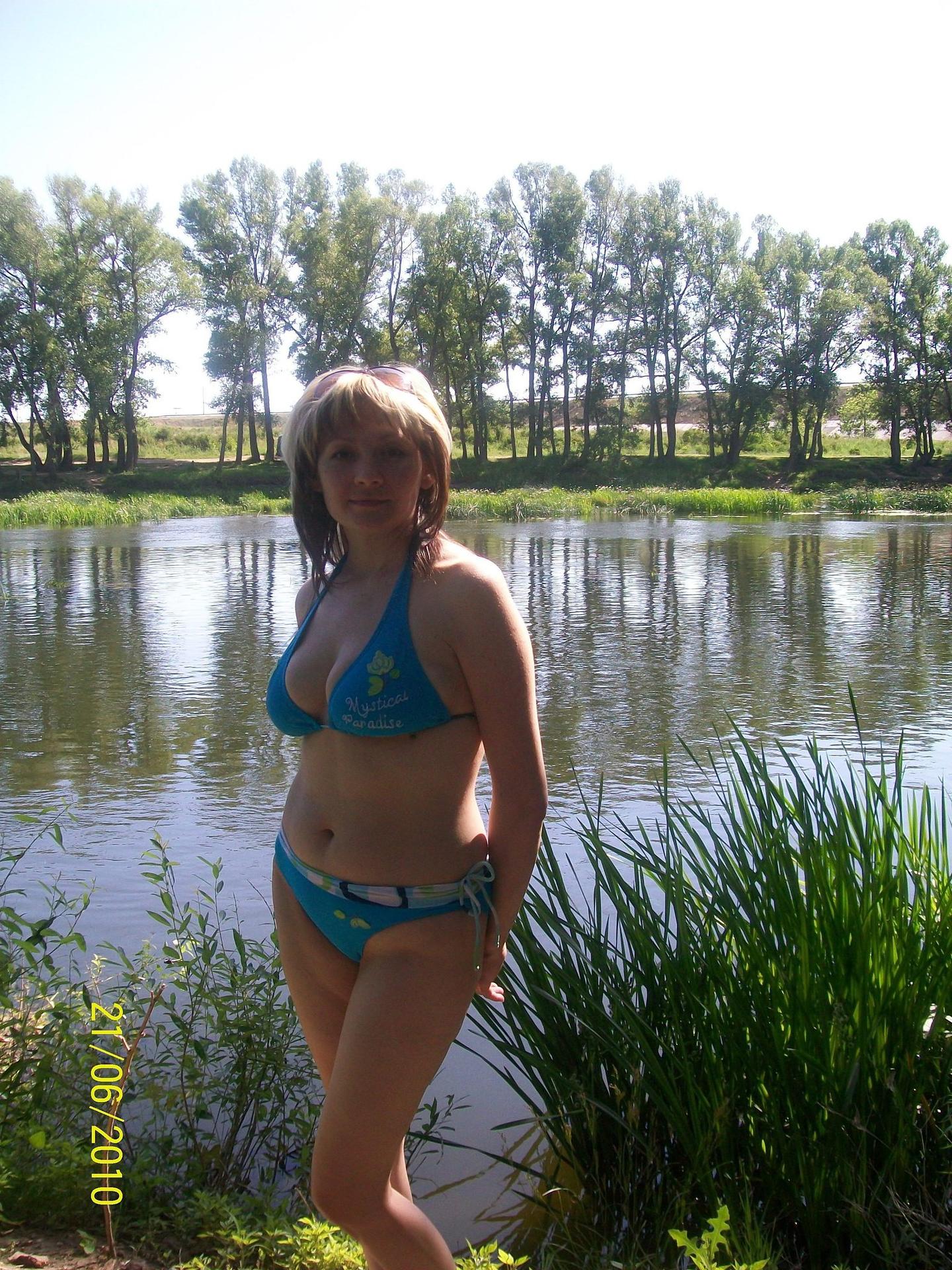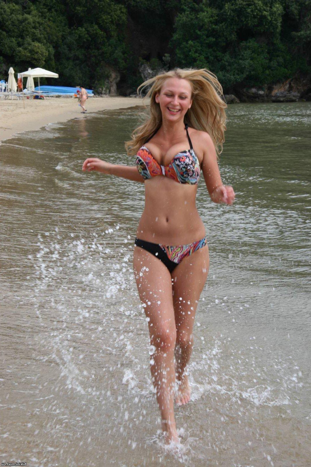 Девушки в купальниках на речке