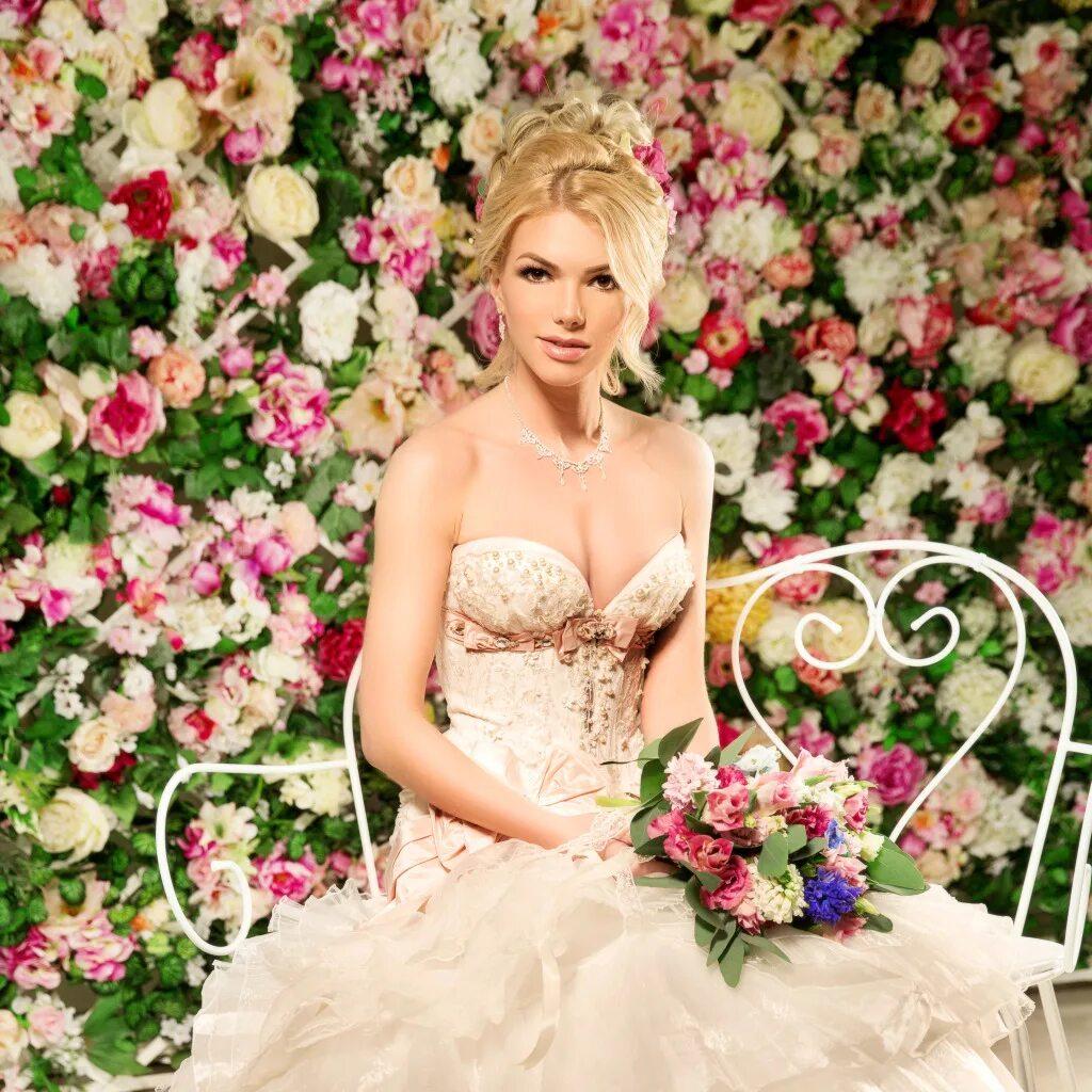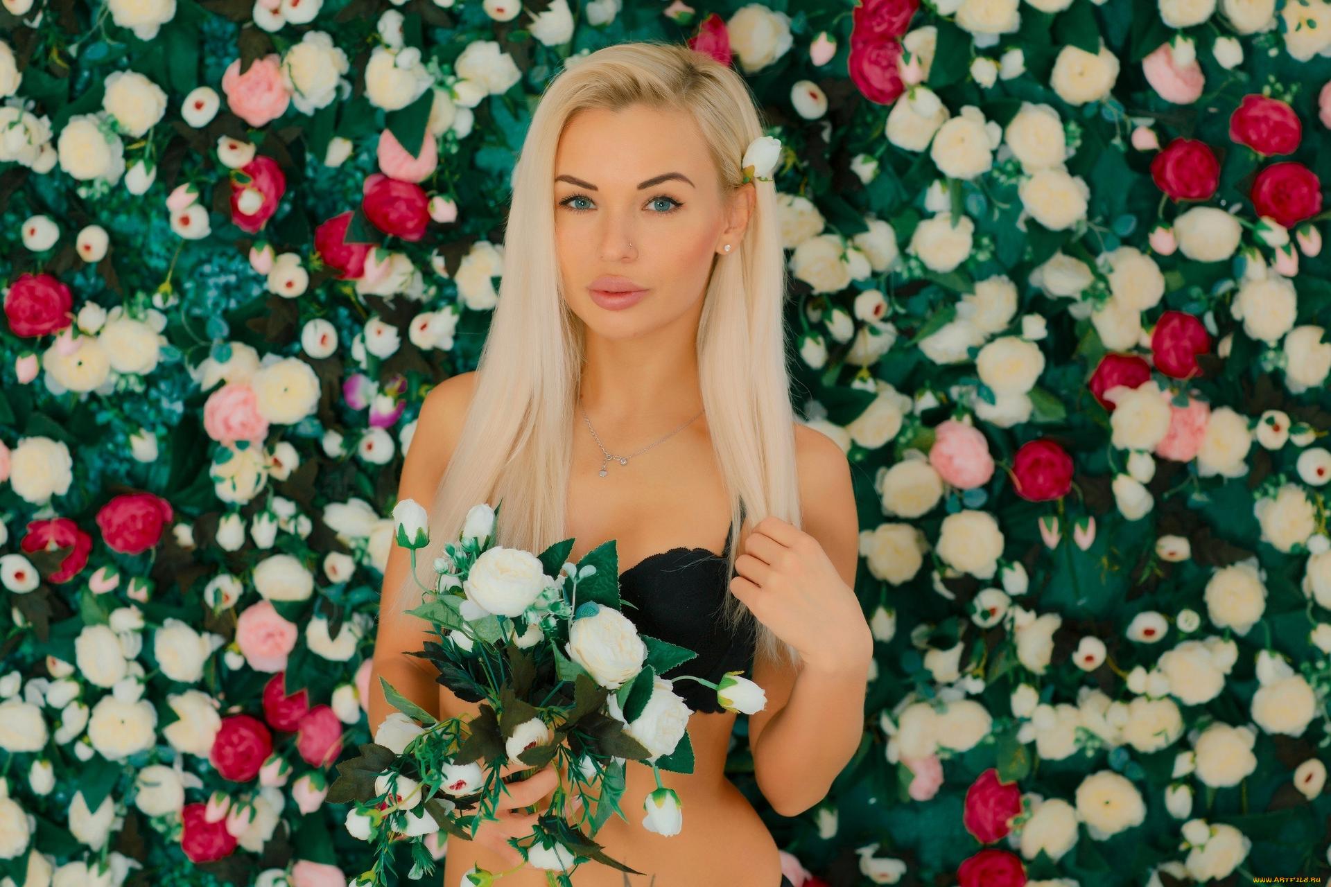 Девушка блондинка с цветами