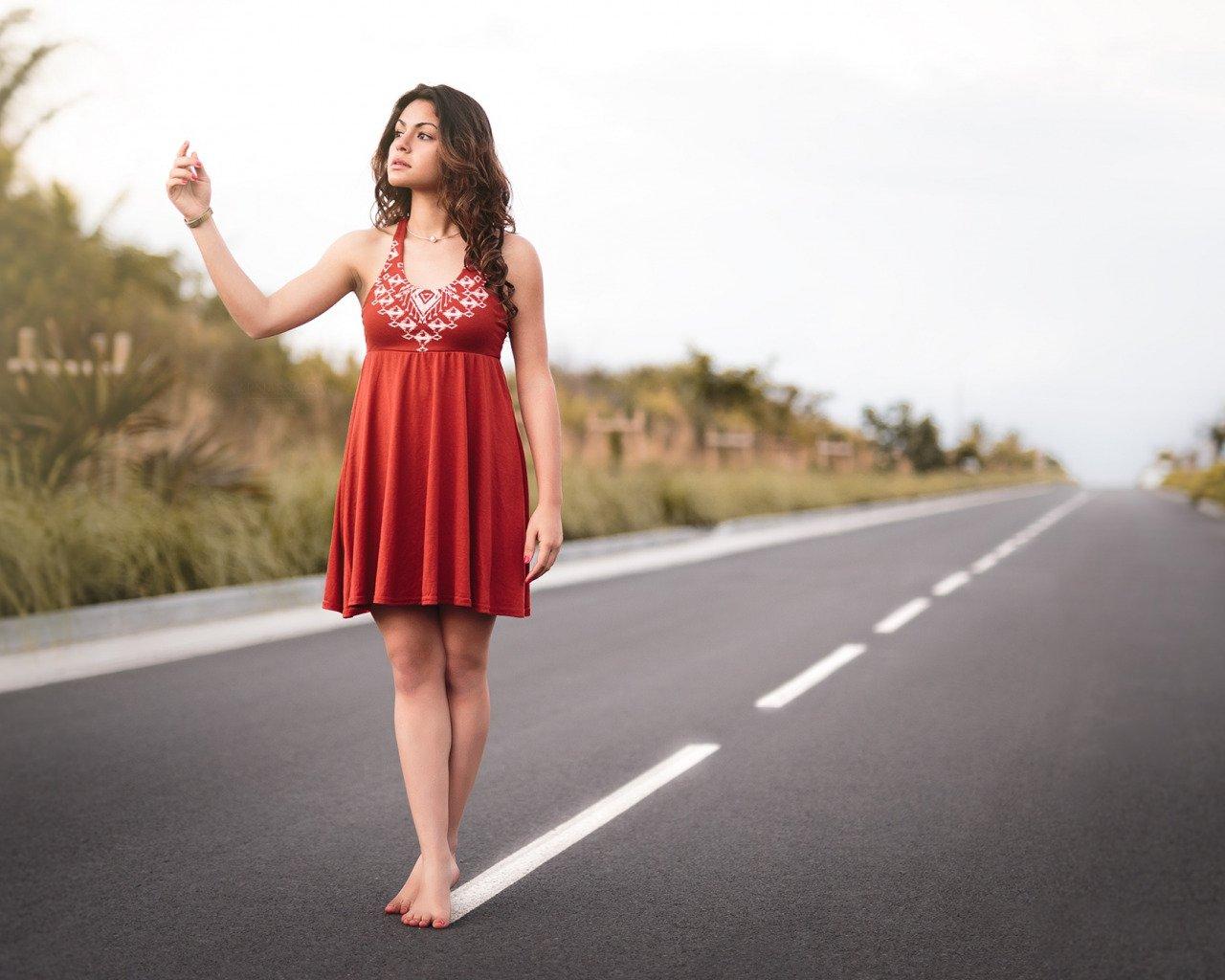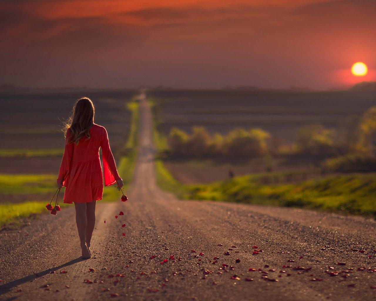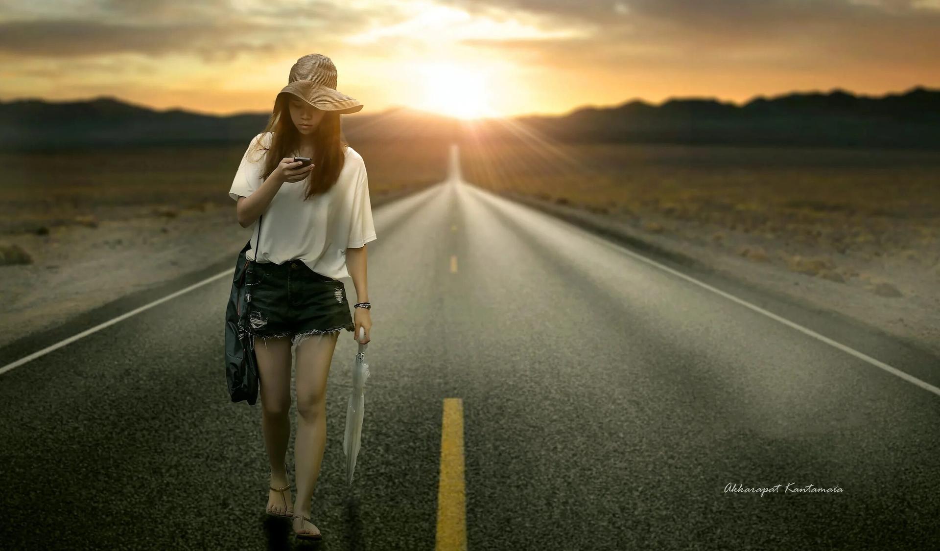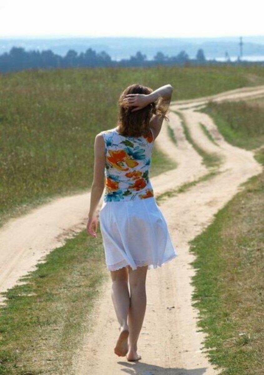 Девушка идет по дороге