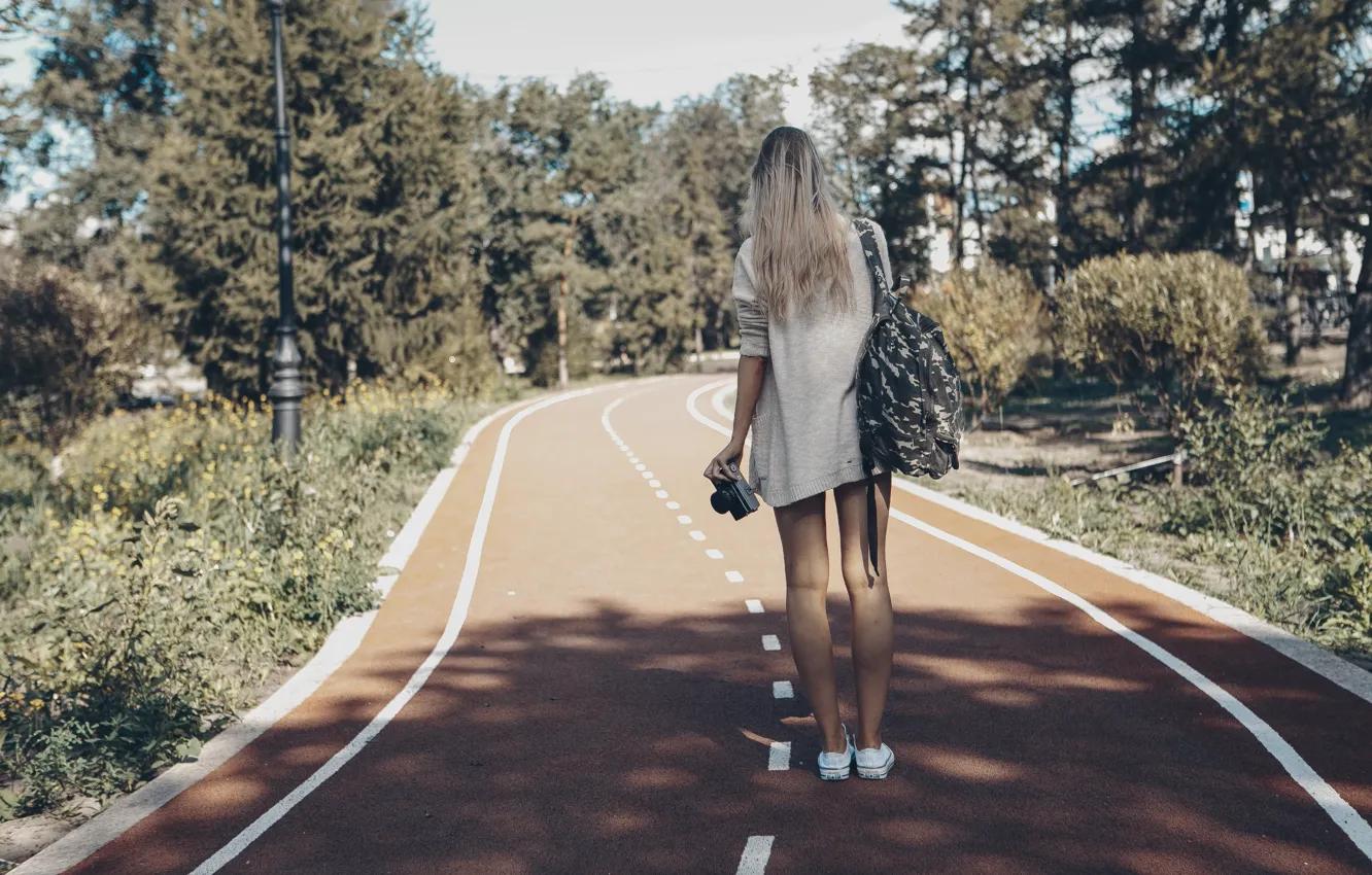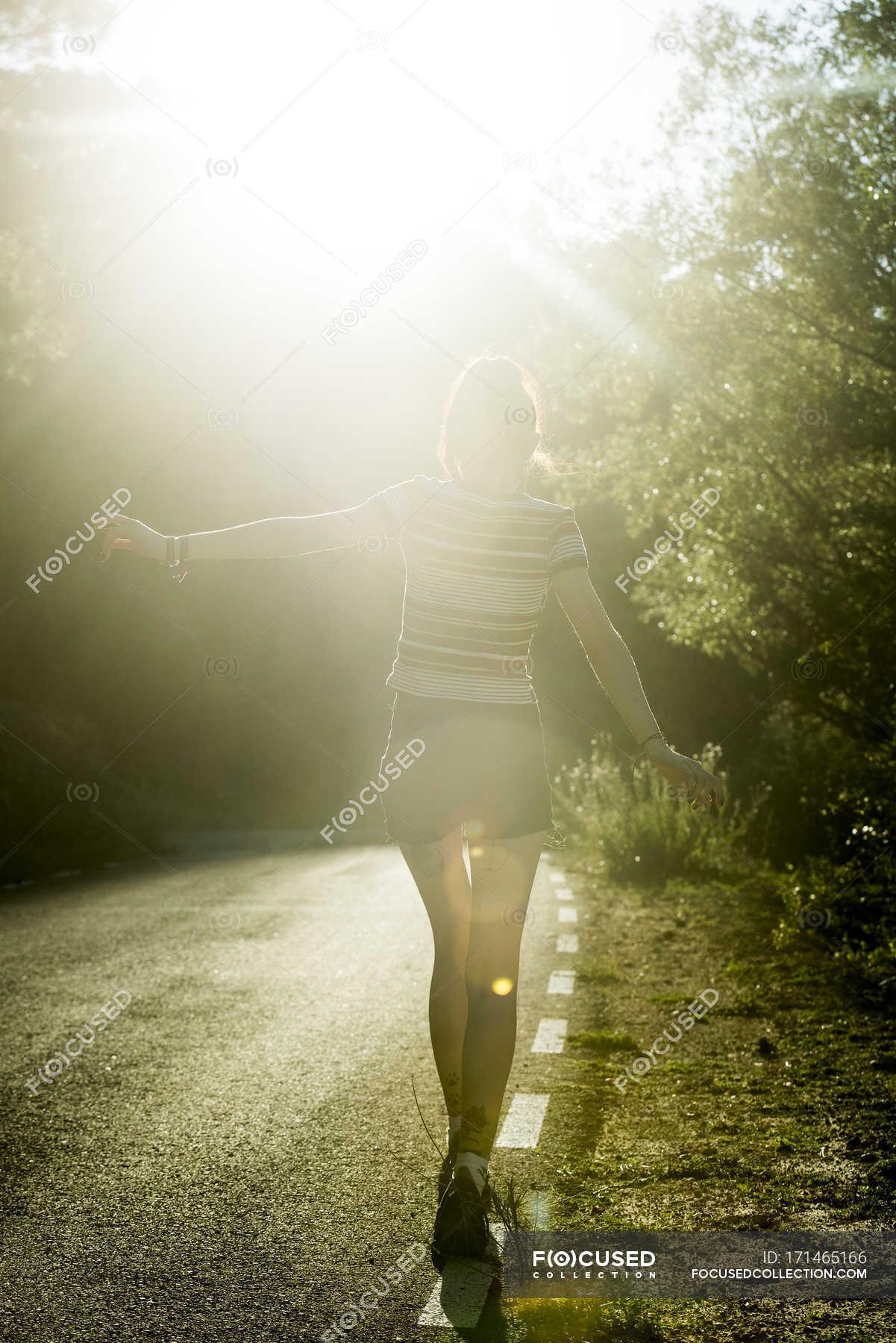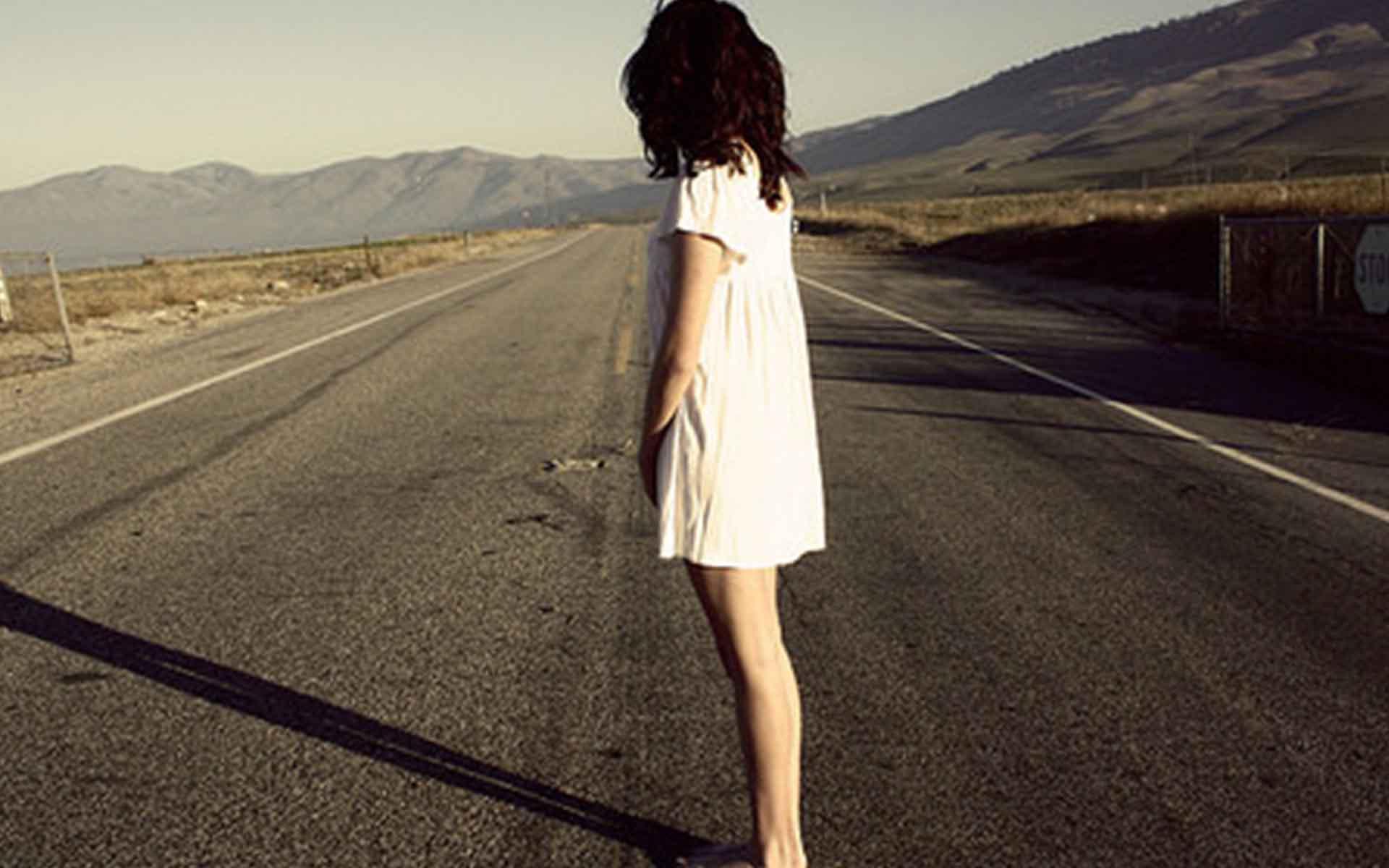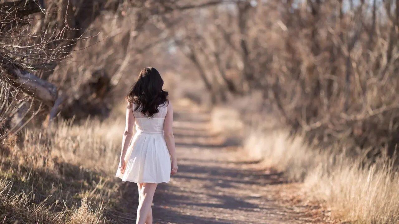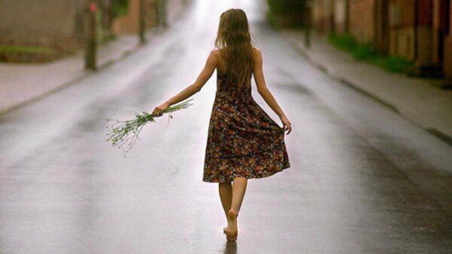 Девушка идет по дороге