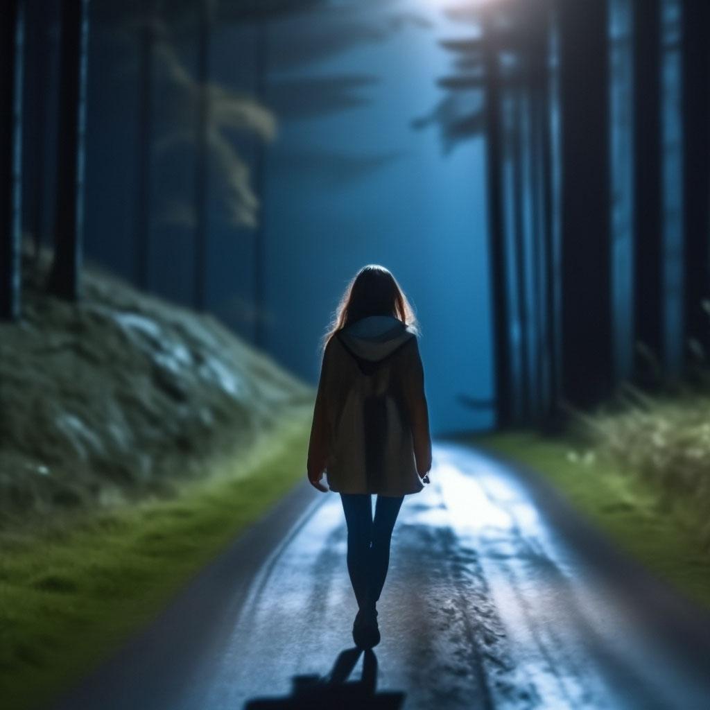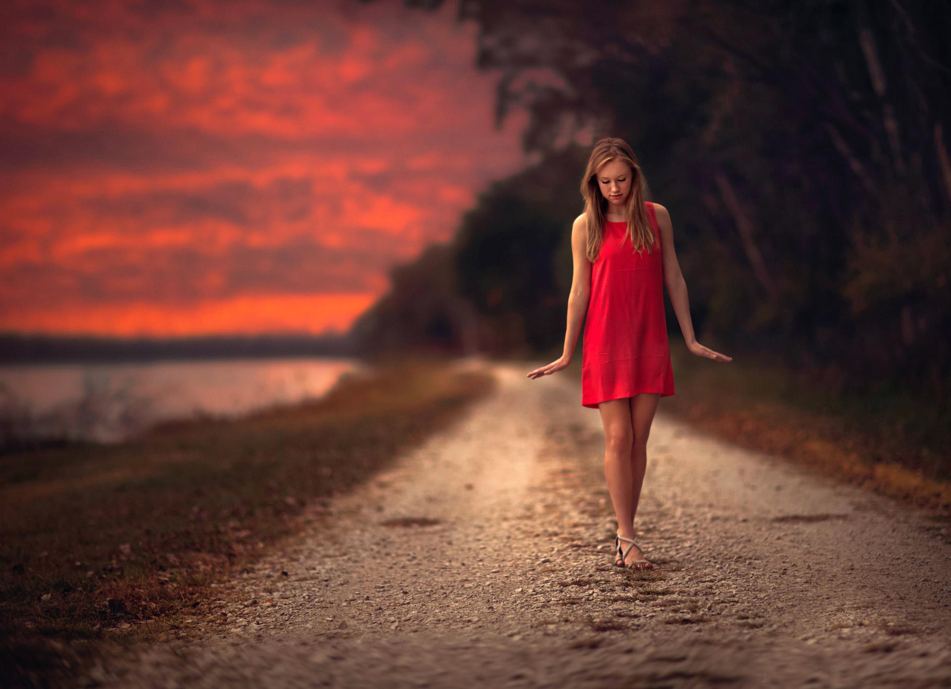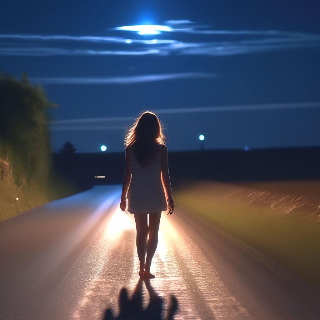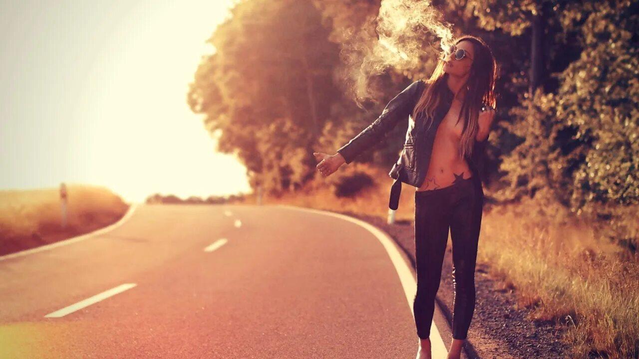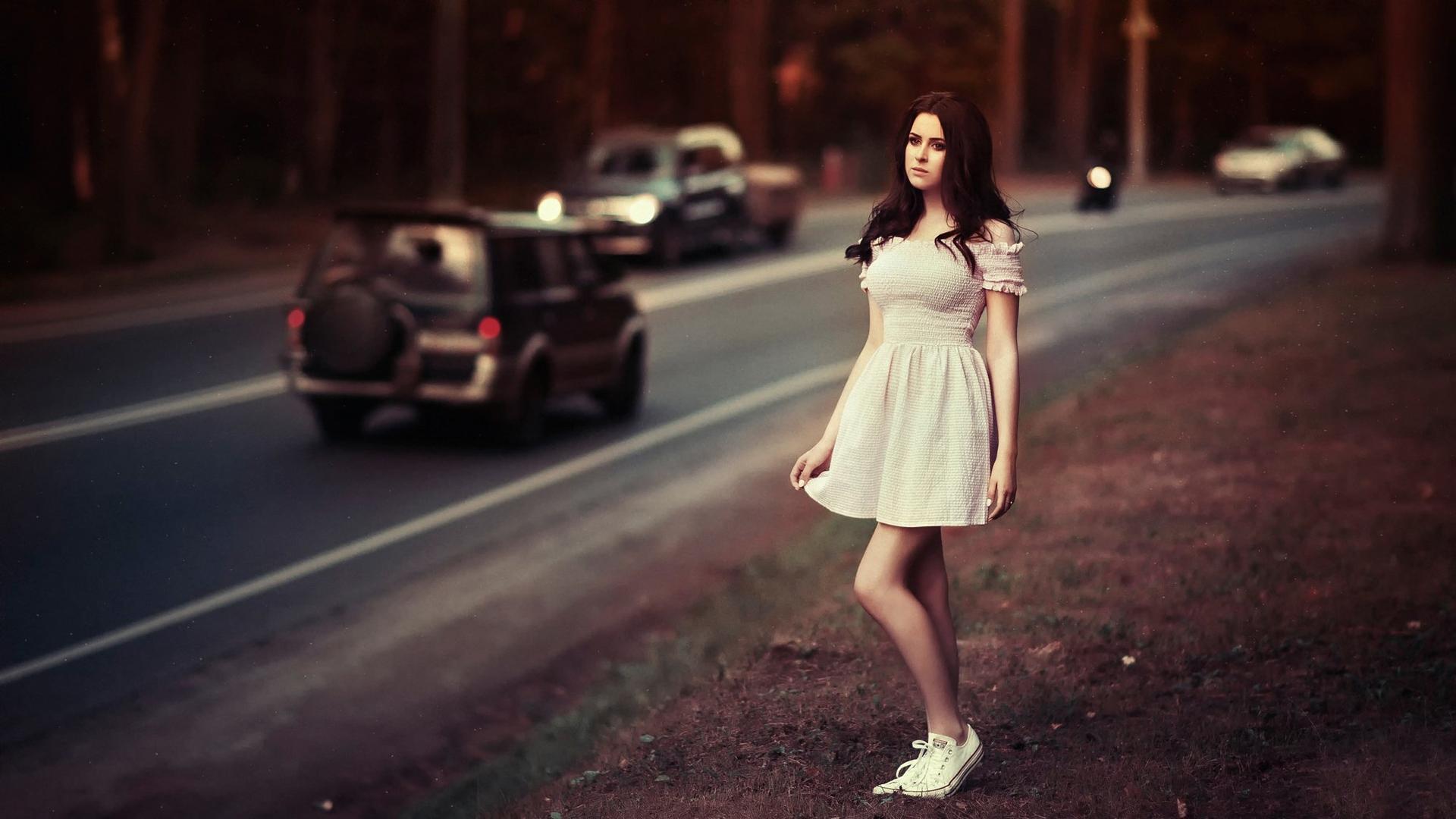 Девушка идет по дороге