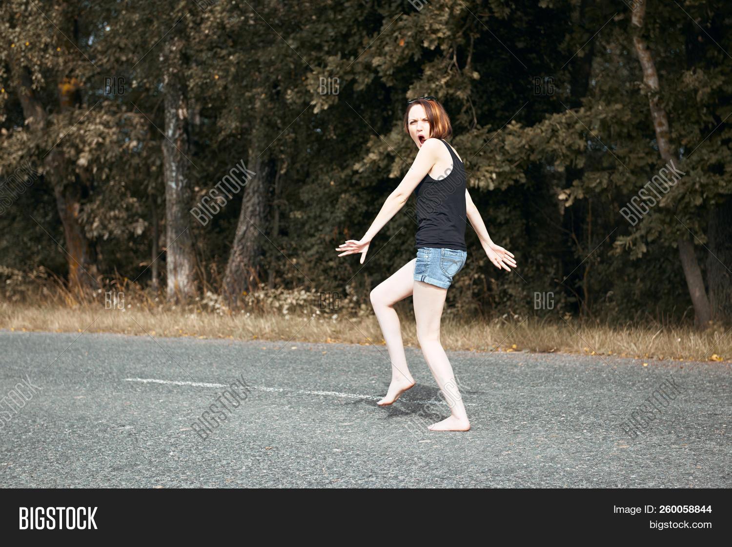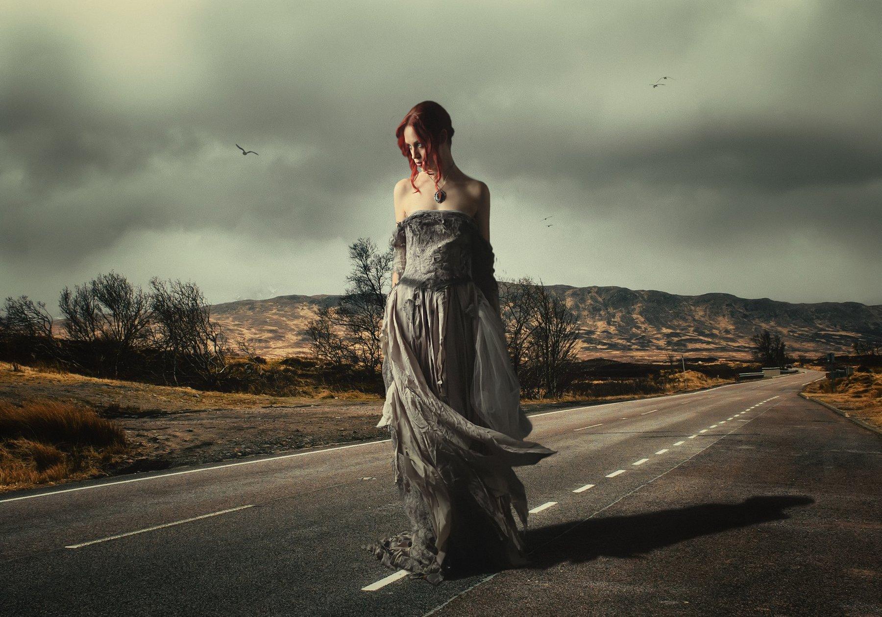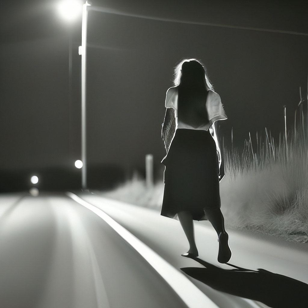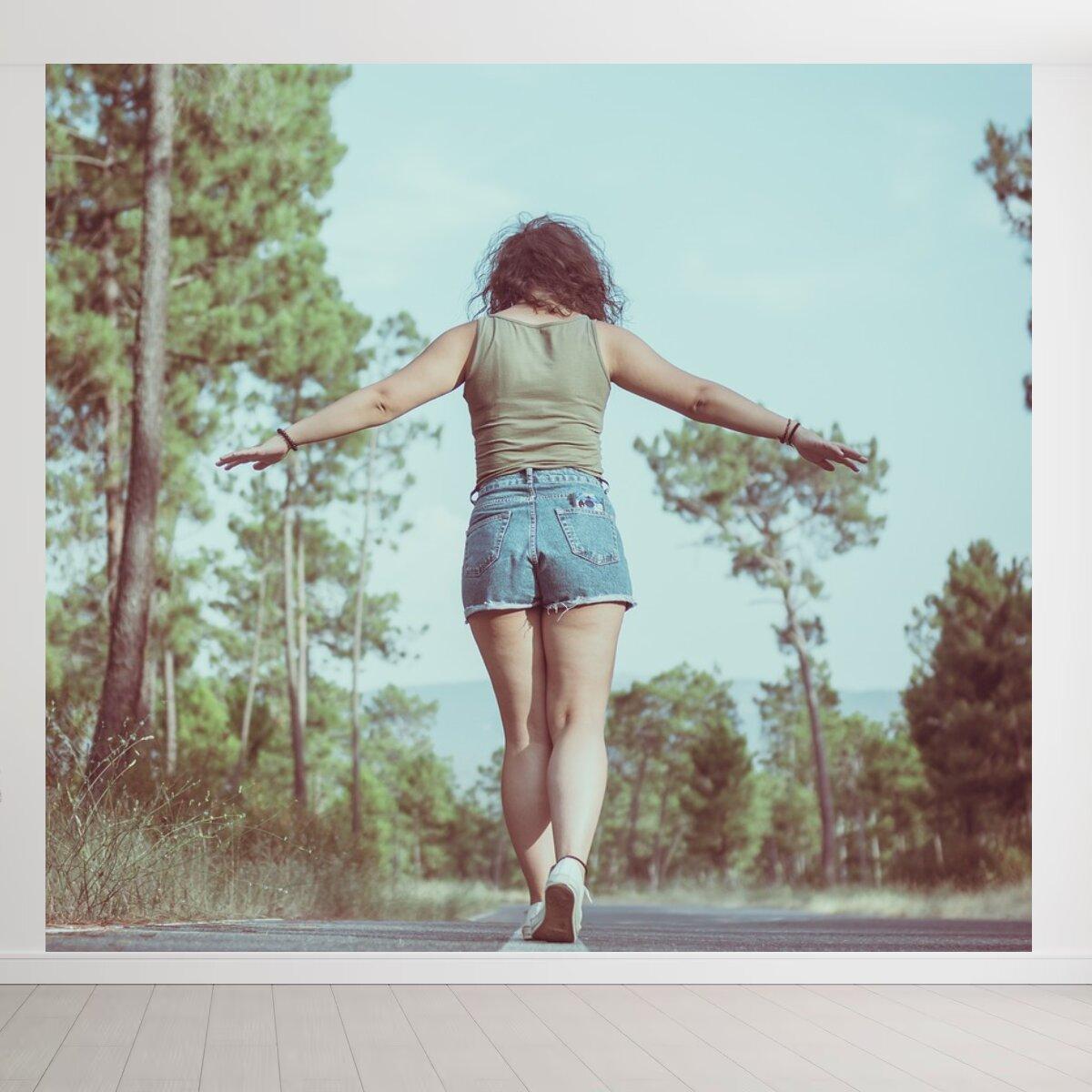 Девушка идет по дороге