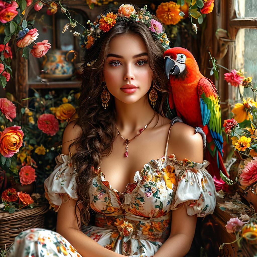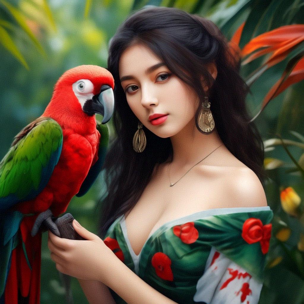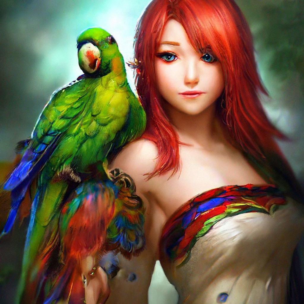 Девушка с попугаем