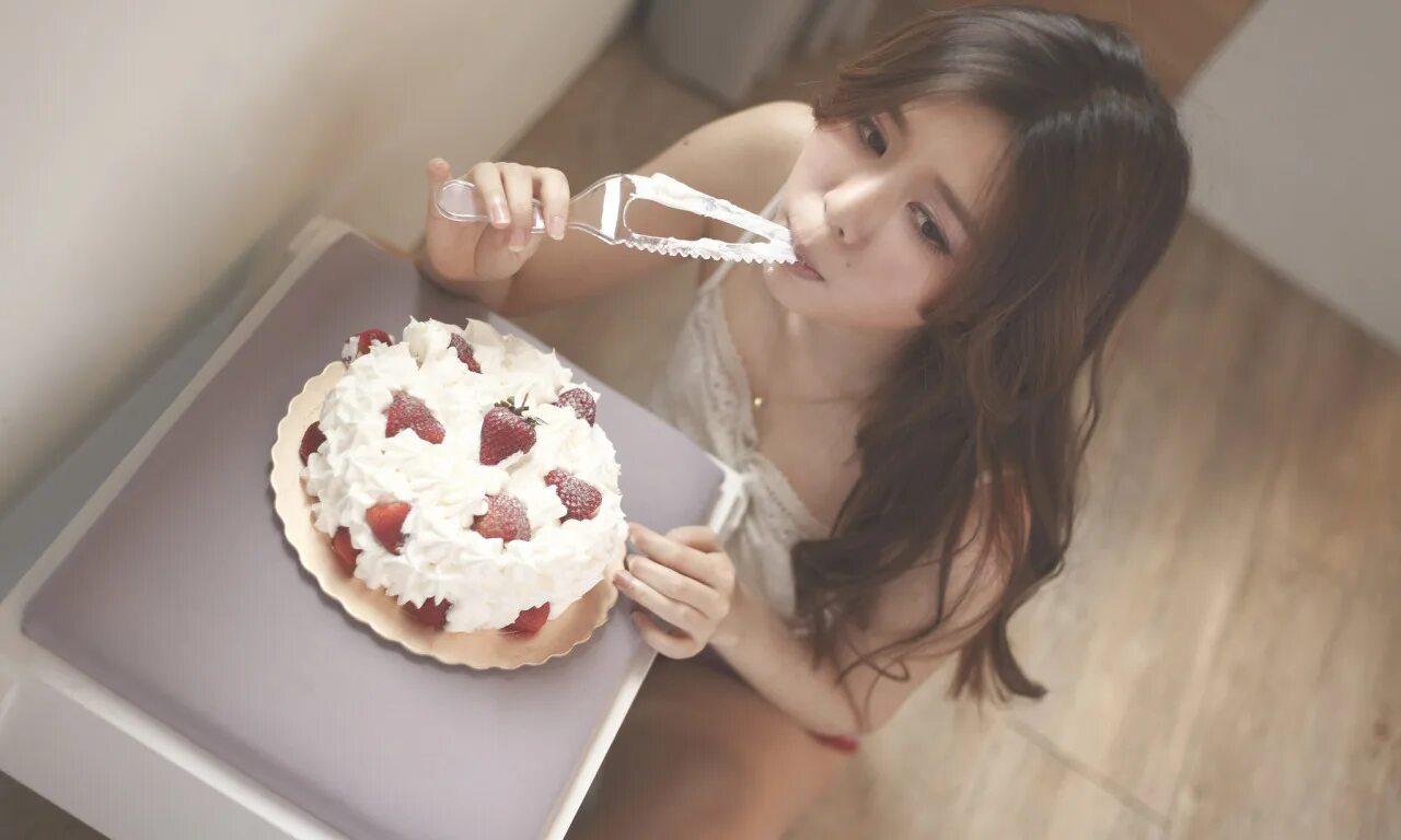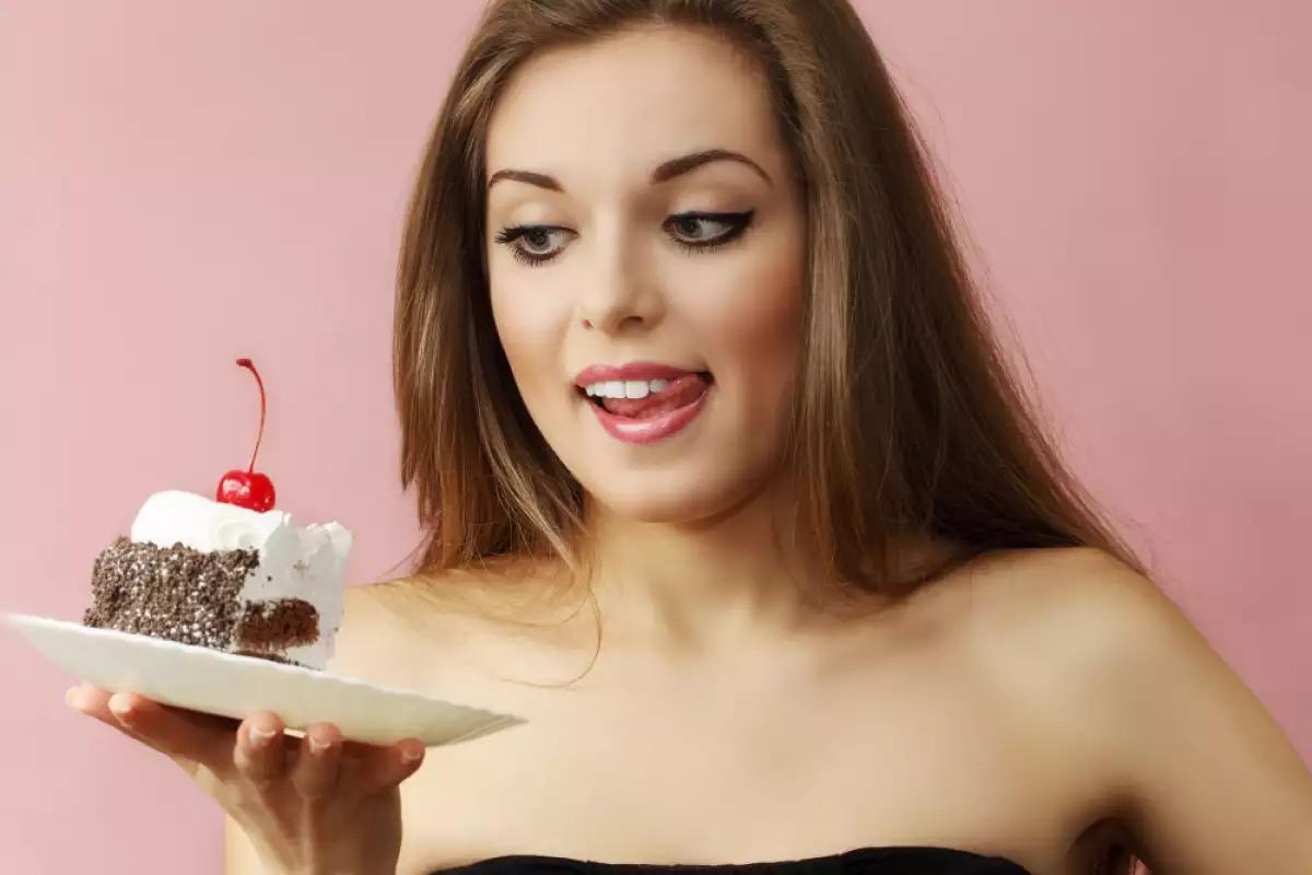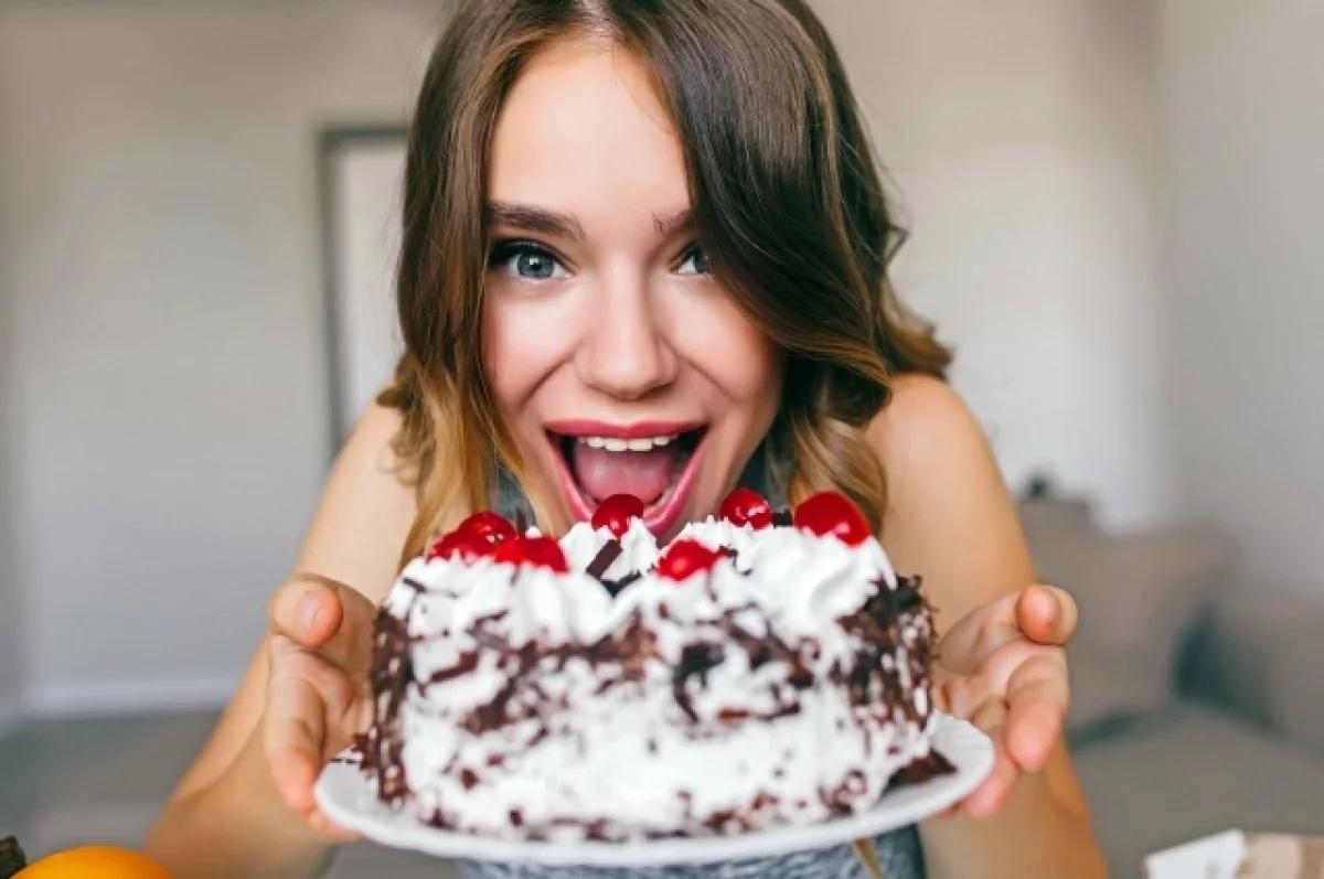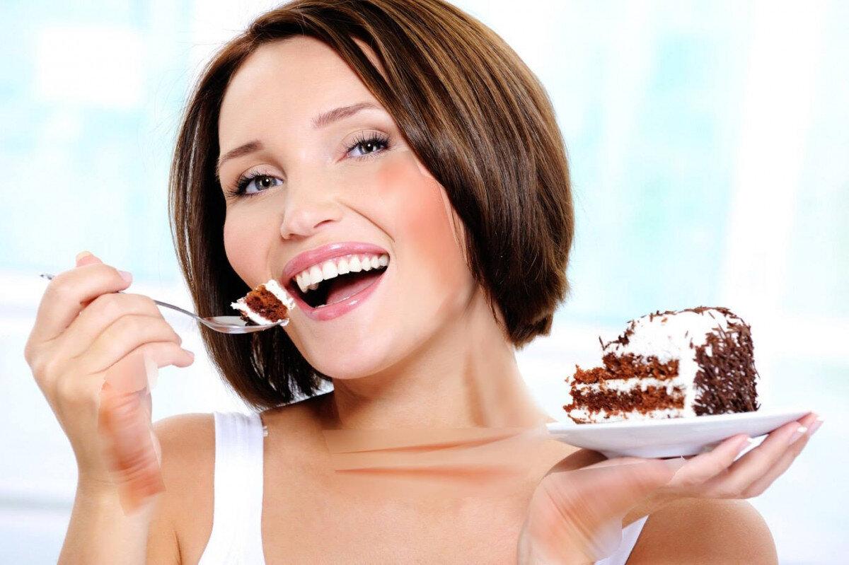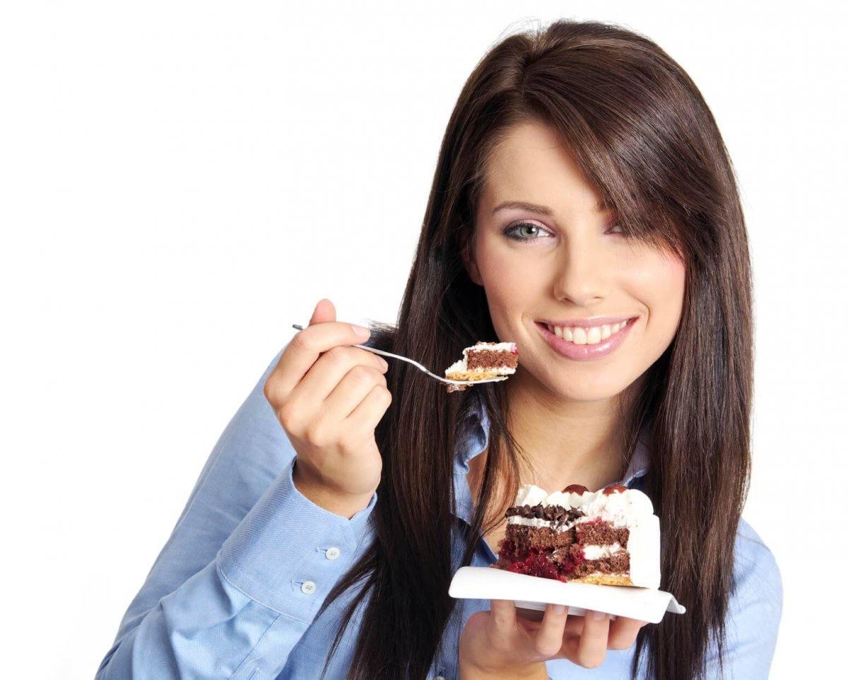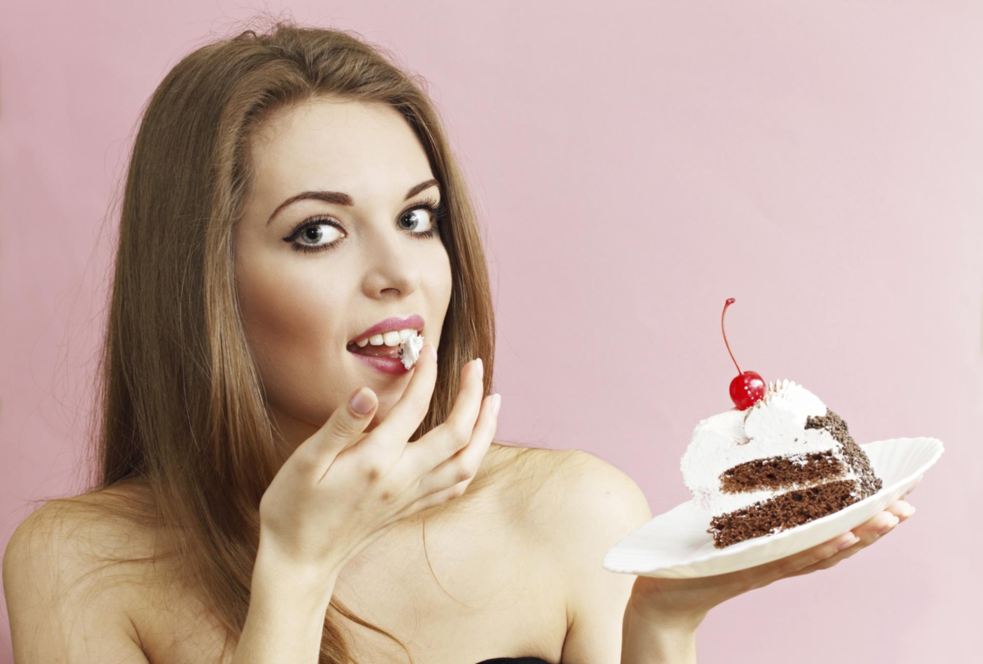 Девушка ест торт