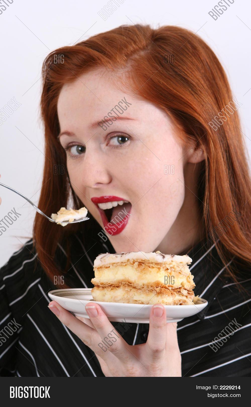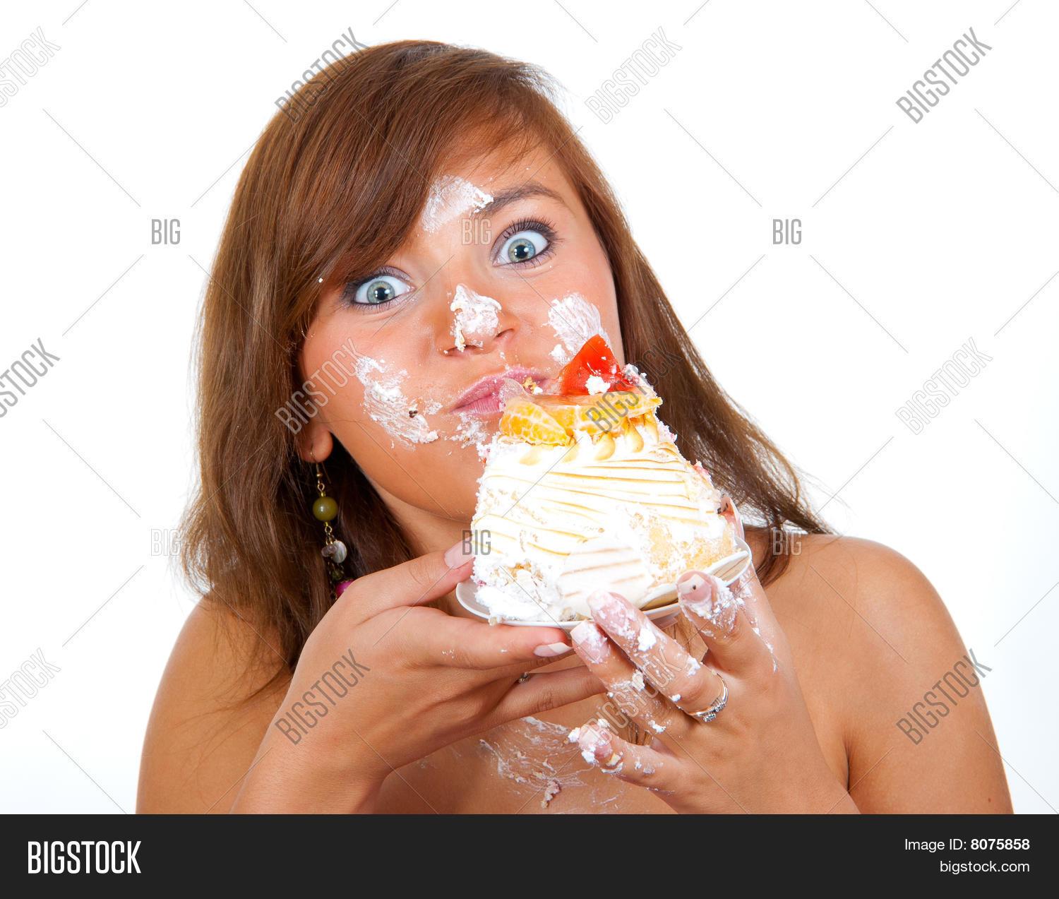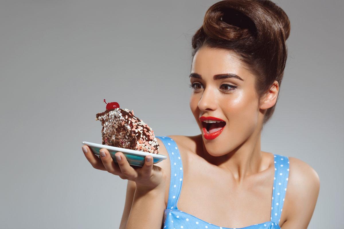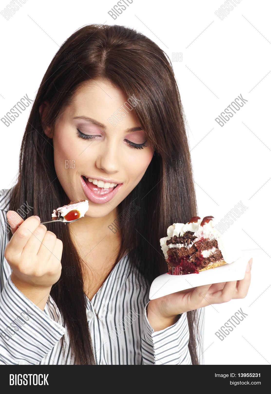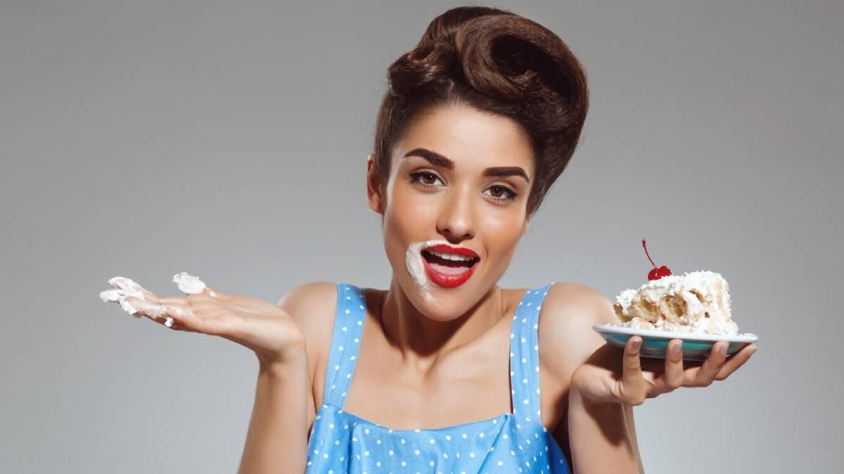 Девушка ест торт