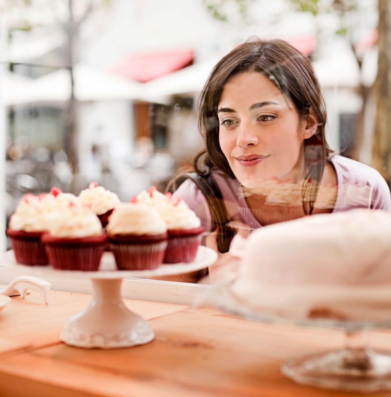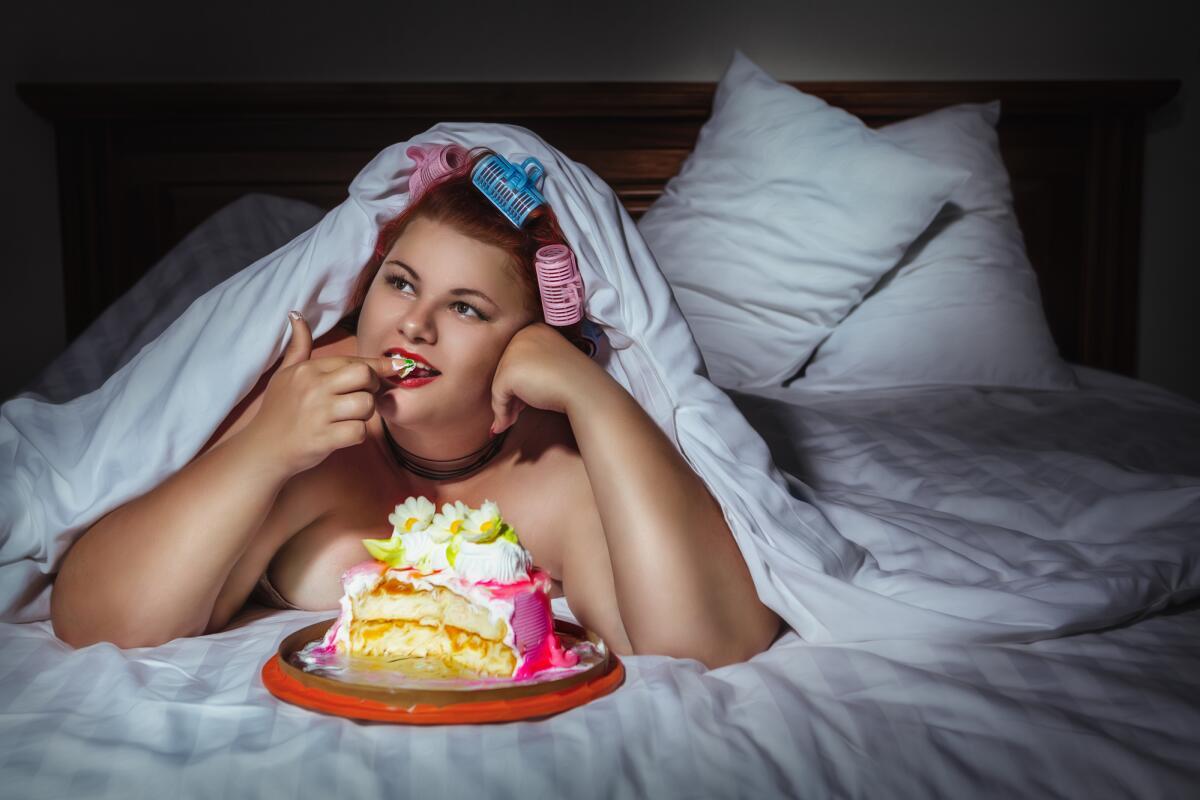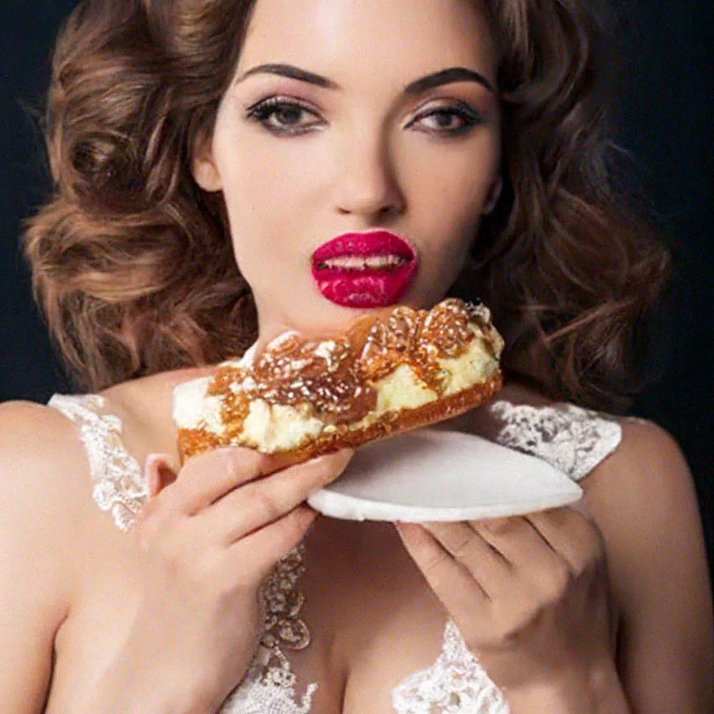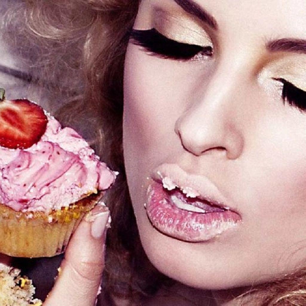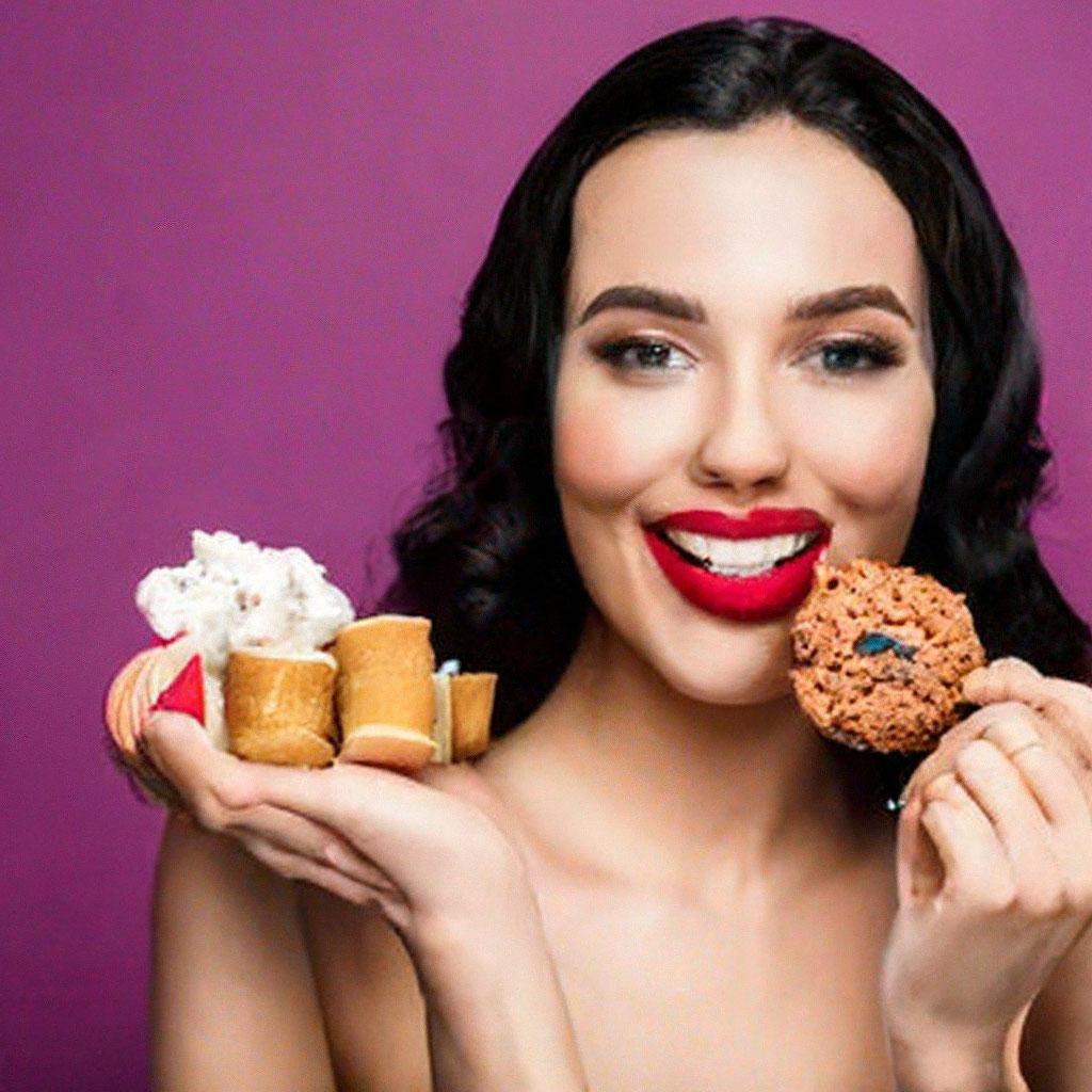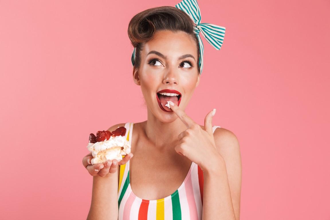 Девушка ест торт