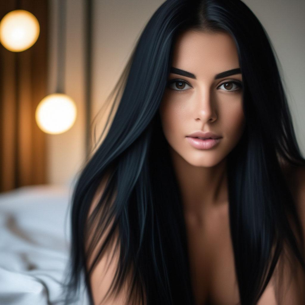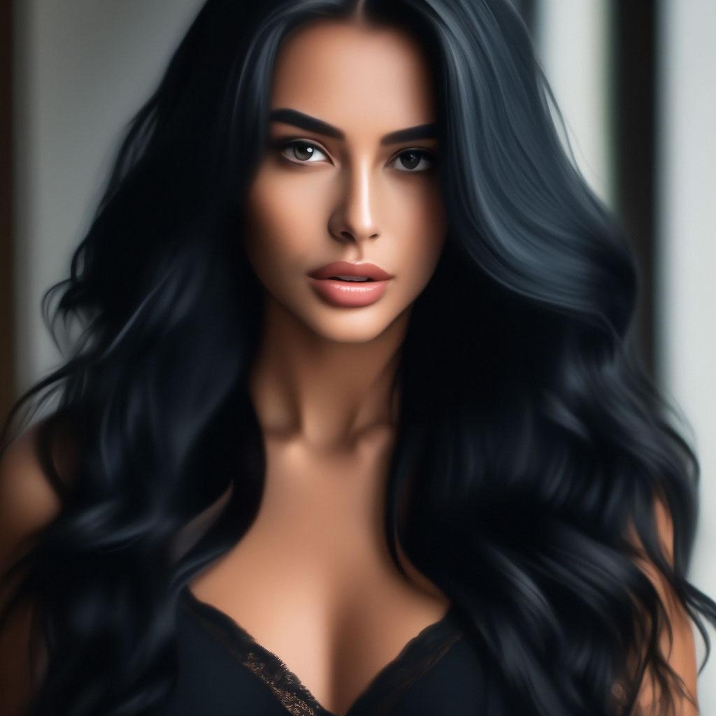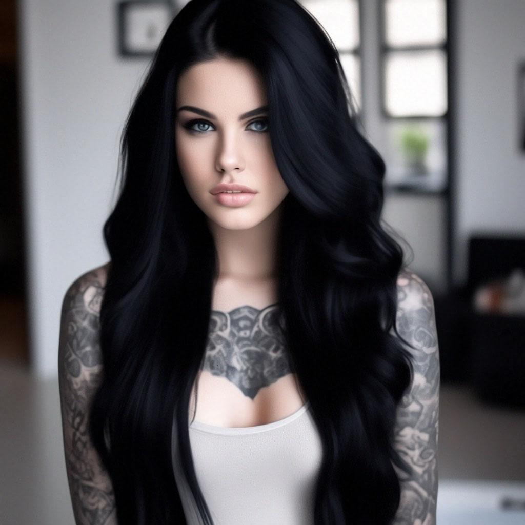 Черные волосы становятся произведением искусства в этих роскошных фотографиях девушки, демонстрирующих глубину цвета и блеск. Они ниспадают волнами или собраны в прическу. Каждый кадр передает атмосферу загадочности и силы. Девушка то поворачивается, показывая волосы, то смотрит в камеру. Фотографии рассказывают о красоте темных волос. Ее кожа контрастирует, глаза выразительны. Эти иллюстрации вдохновляют на эксперименты с цветом. Каждая картинка - это момент элегантности. Девушка воплощает образ темноволосой красавицы, полной шарма.