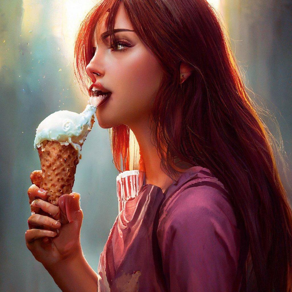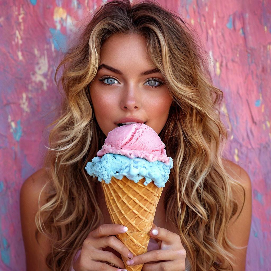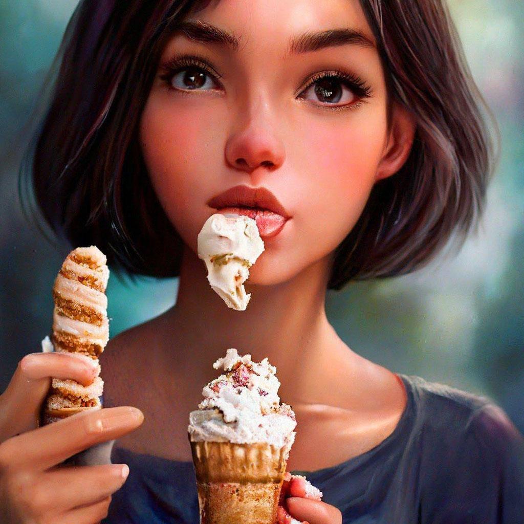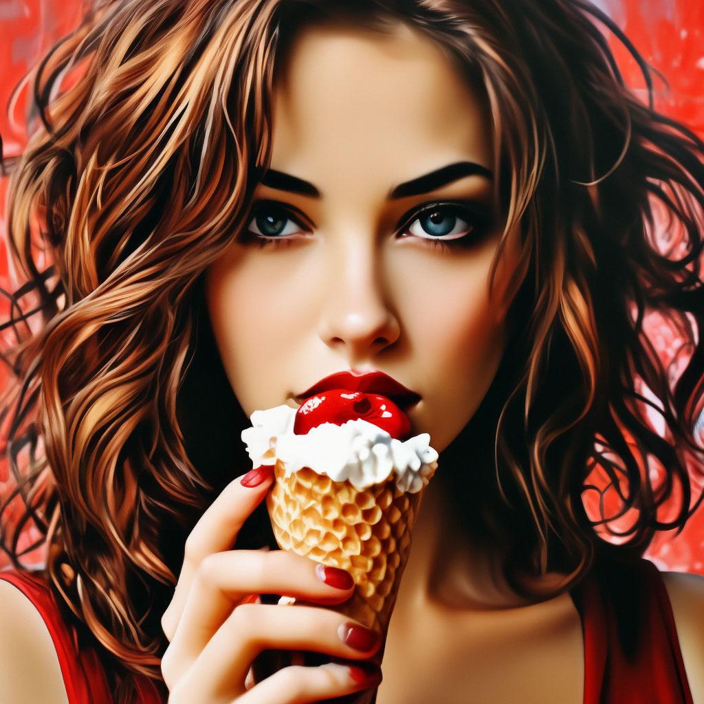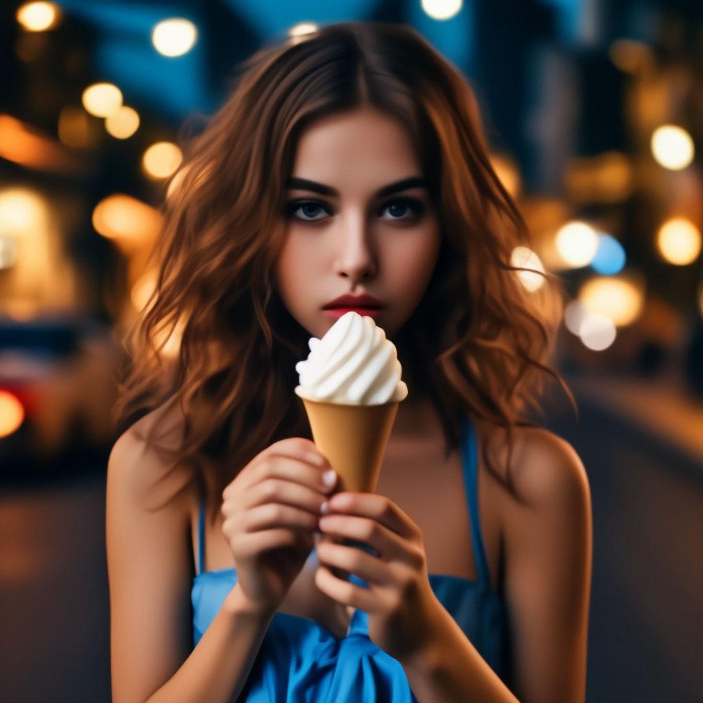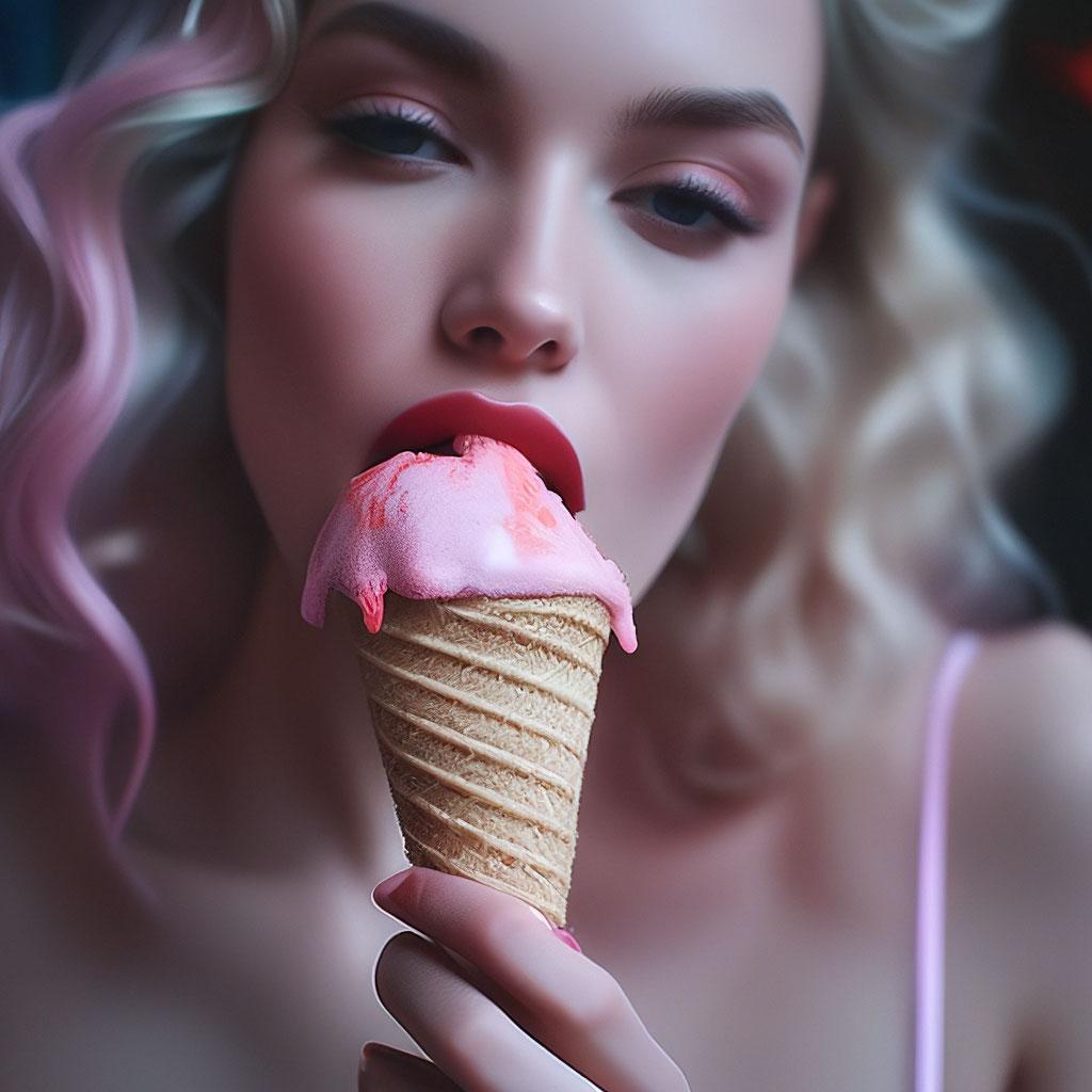 Мороженое становится звездой в этих вкусных фотографиях девушки, чье лицо выражает наслаждение и удовольствие. Она держит вафельный стаканчик, ее губы касаются холодного лакомства. Каждый кадр передает атмосферу лета и детской радости. Девушка то слизывает мороженое, то улыбается счастливо. Фотографии рассказывают о простых радостях жизни. Ее глаза блестят, щеки розовеют. Эти иллюстрации вдохновляют на наслаждение моментами. Каждая картинка - это момент счастья. Девушка воплощает образ гурмана, полного вкусовых ощущений.