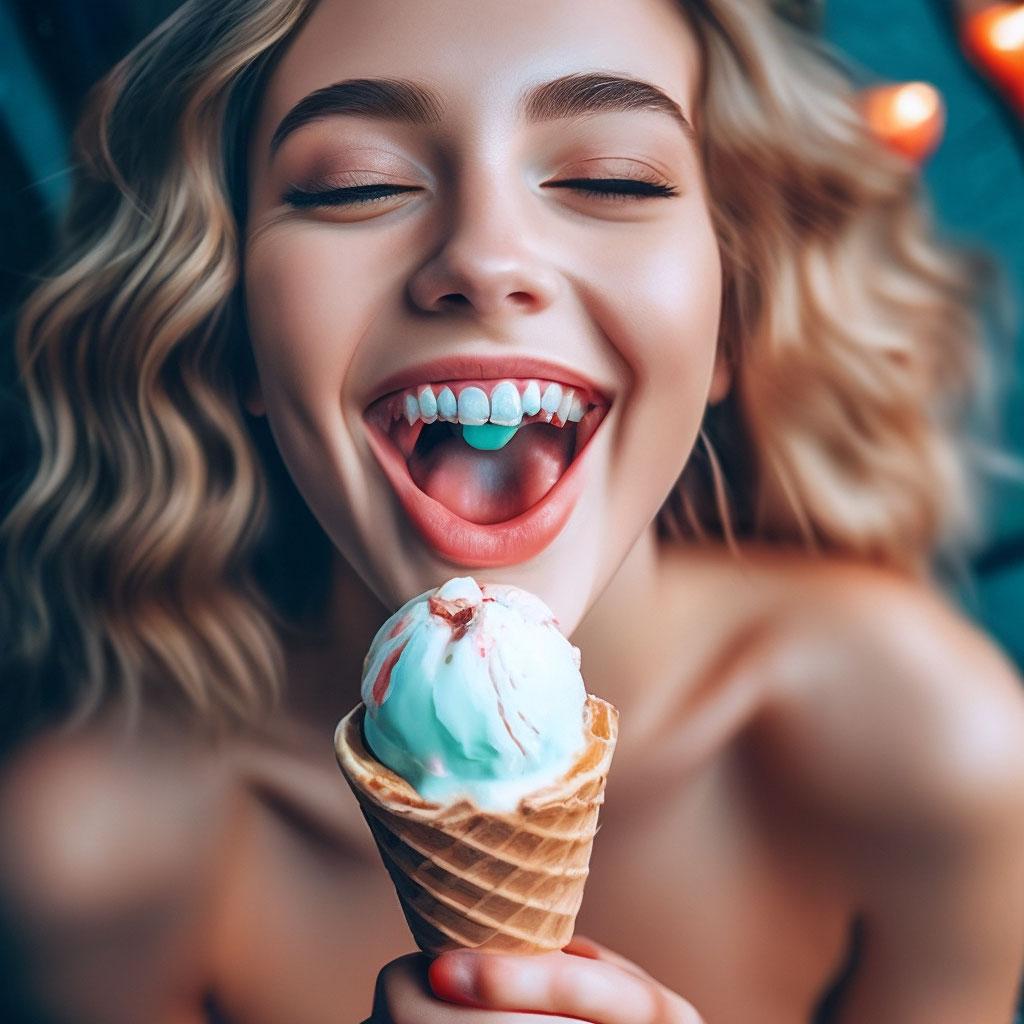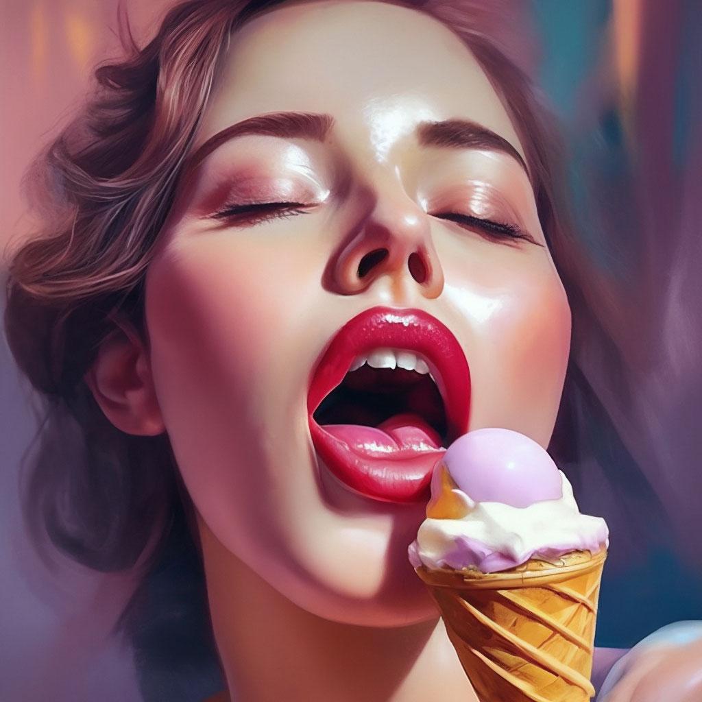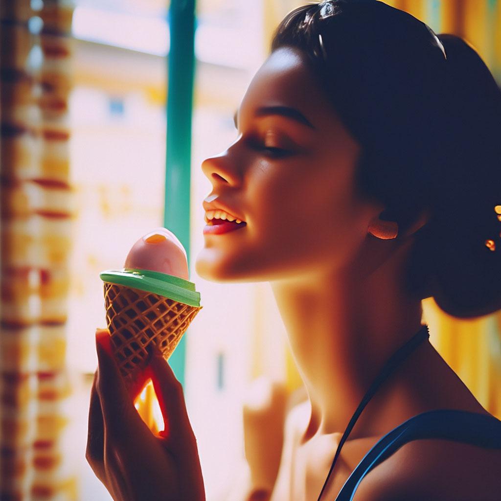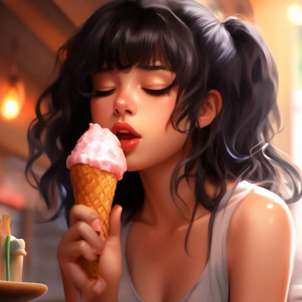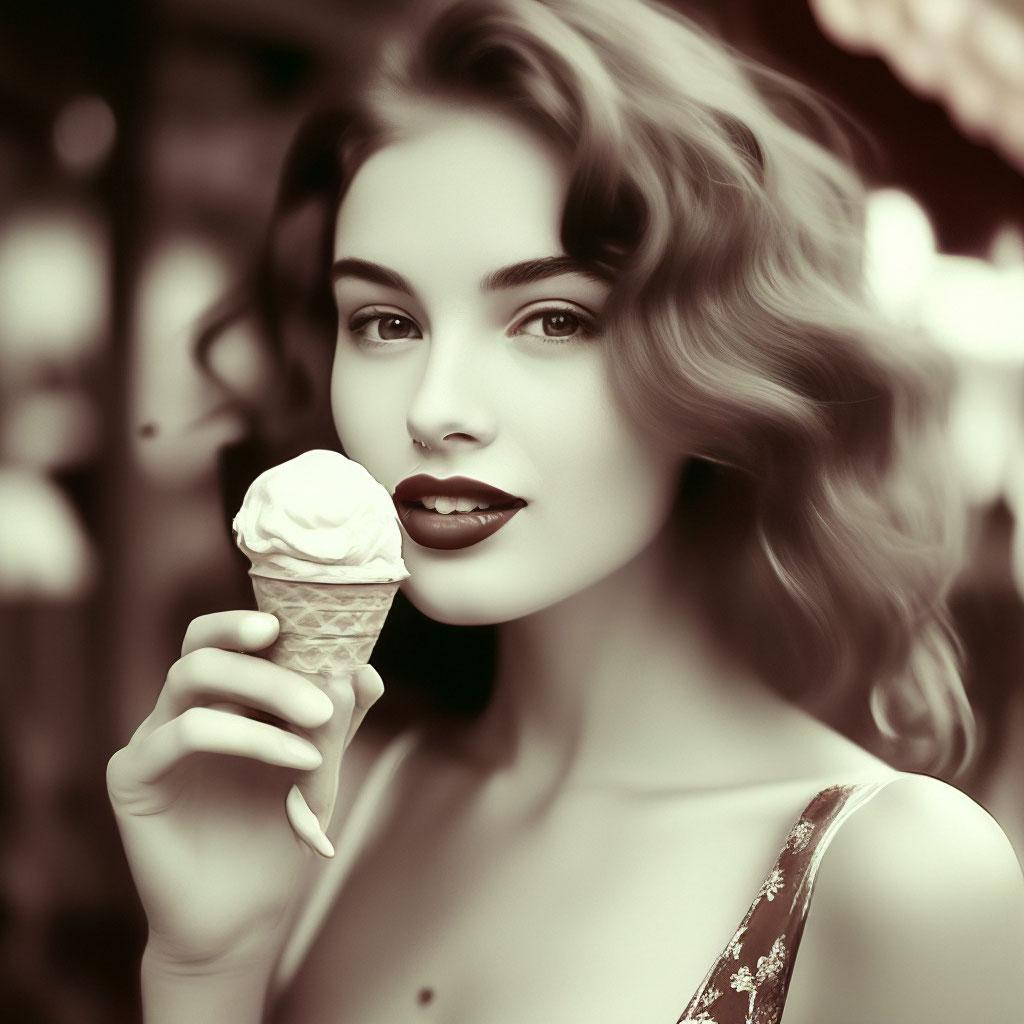 Мороженое становится звездой в этих вкусных фотографиях девушки, чье лицо выражает наслаждение и удовольствие. Она держит вафельный стаканчик, ее губы касаются холодного лакомства. Каждый кадр передает атмосферу лета и детской радости. Девушка то слизывает мороженое, то улыбается счастливо. Фотографии рассказывают о простых радостях жизни. Ее глаза блестят, щеки розовеют. Эти иллюстрации вдохновляют на наслаждение моментами. Каждая картинка - это момент счастья. Девушка воплощает образ гурмана, полного вкусовых ощущений.