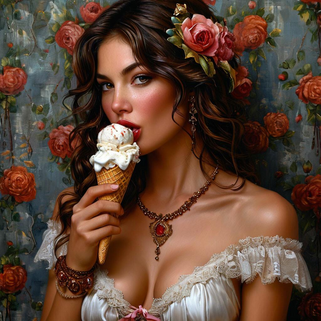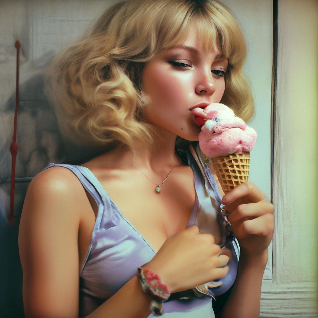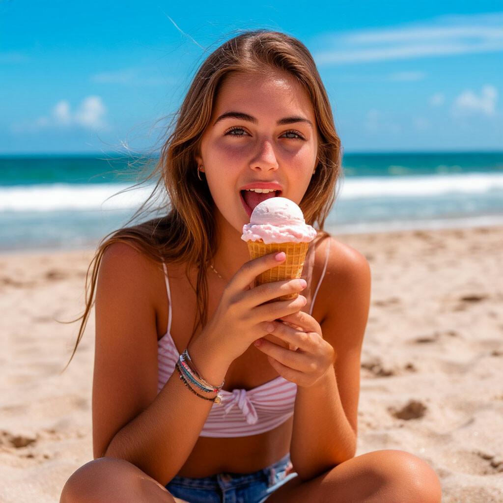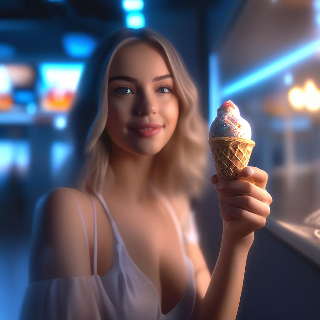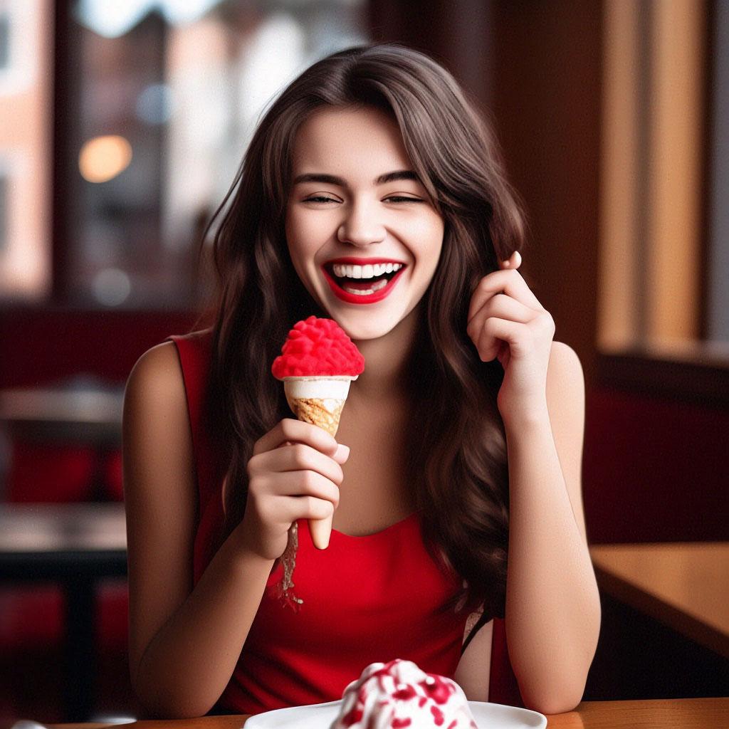 Мороженое становится звездой в этих вкусных фотографиях девушки, чье лицо выражает наслаждение и удовольствие. Она держит вафельный стаканчик, ее губы касаются холодного лакомства. Каждый кадр передает атмосферу лета и детской радости. Девушка то слизывает мороженое, то улыбается счастливо. Фотографии рассказывают о простых радостях жизни. Ее глаза блестят, щеки розовеют. Эти иллюстрации вдохновляют на наслаждение моментами. Каждая картинка - это момент счастья. Девушка воплощает образ гурмана, полного вкусовых ощущений.