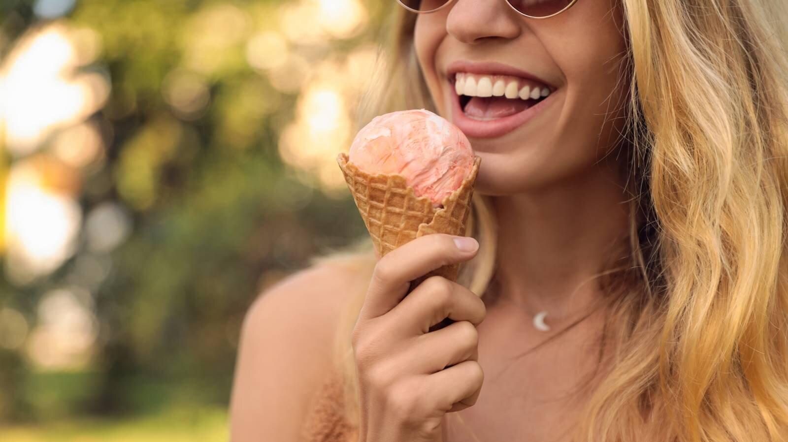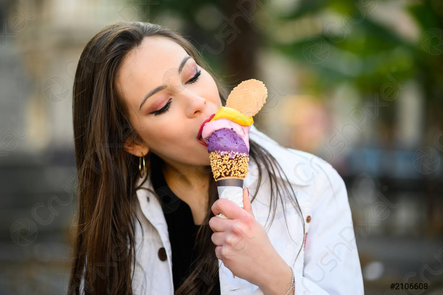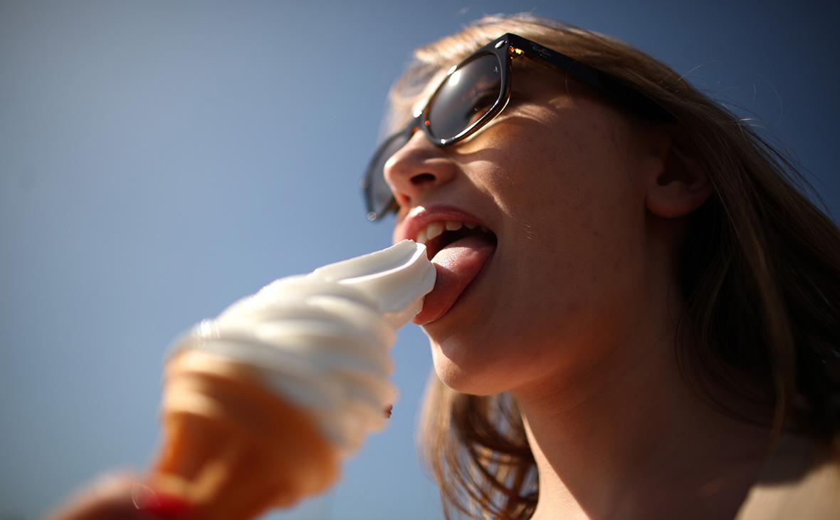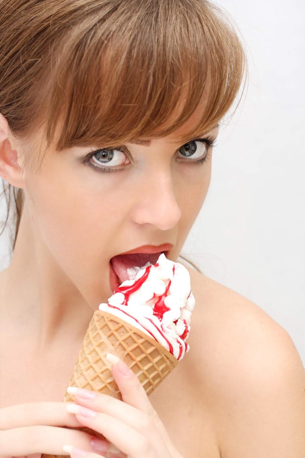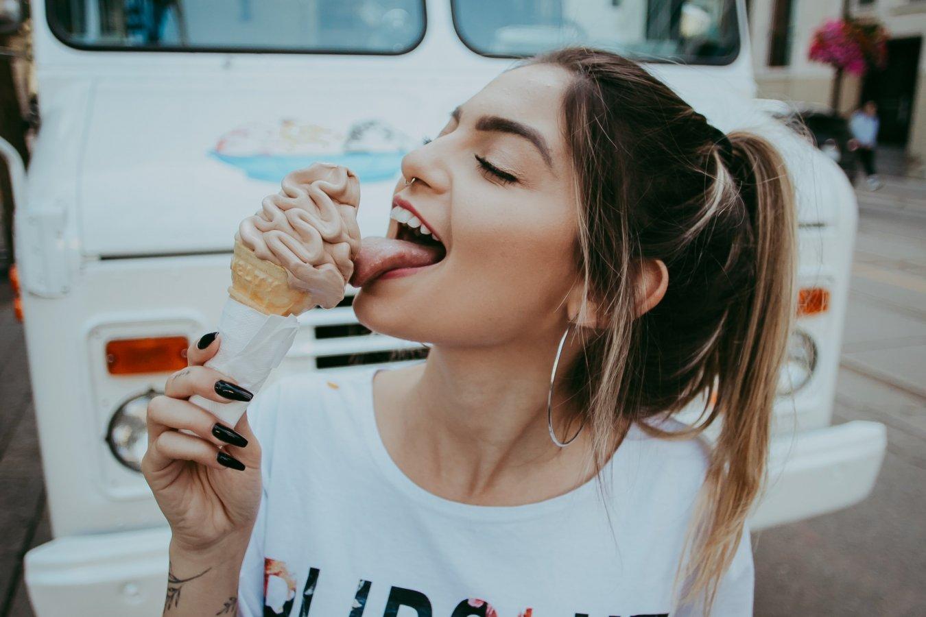 Девушка ест мороженое
