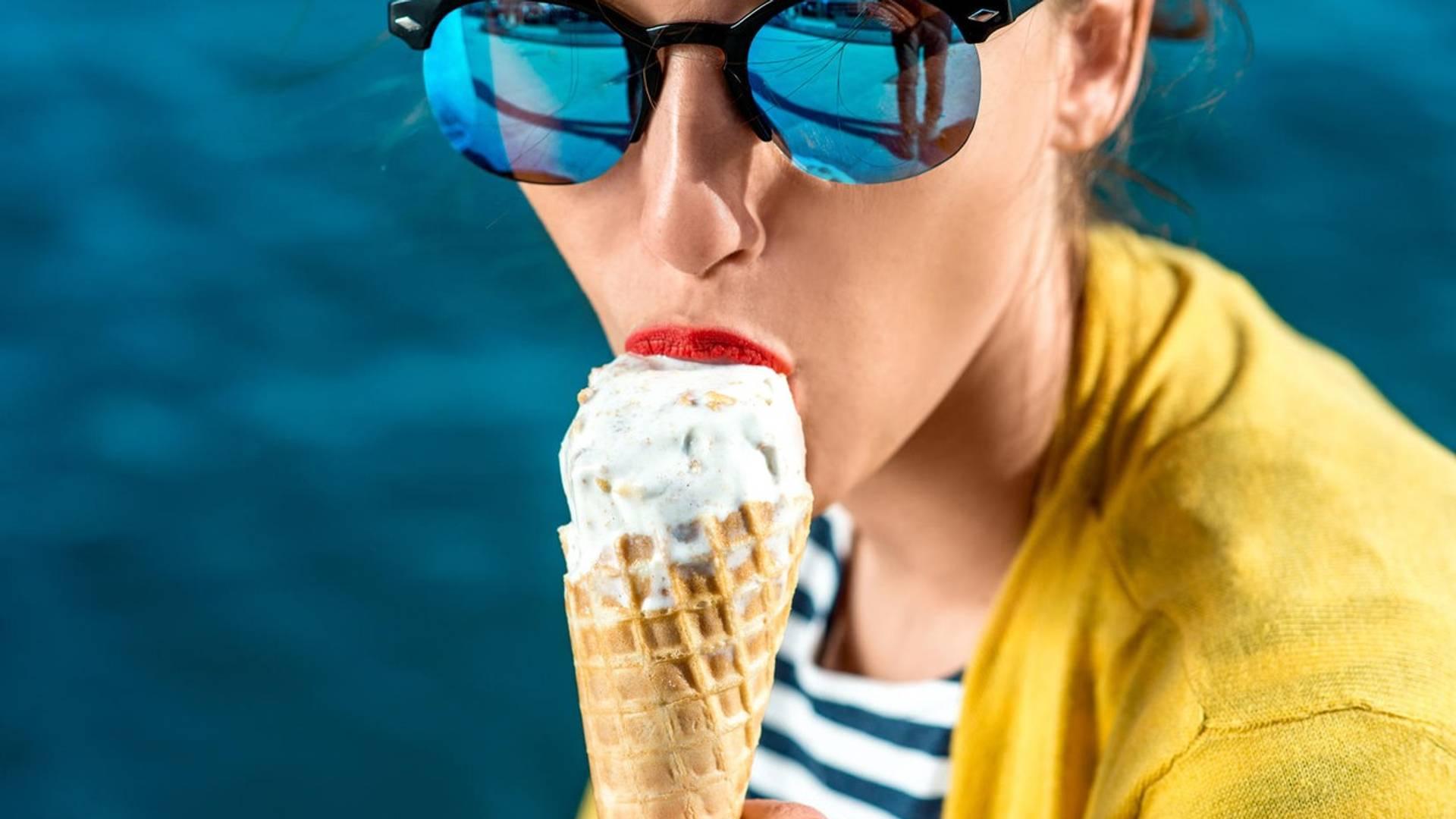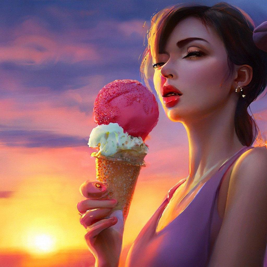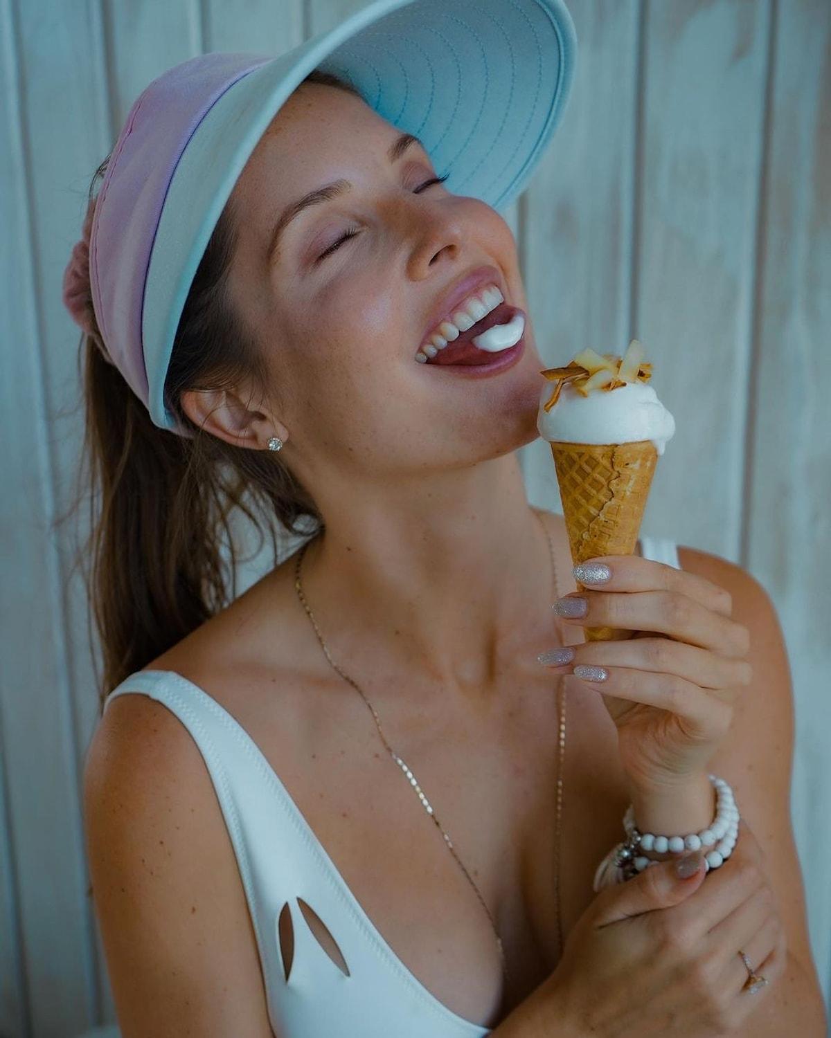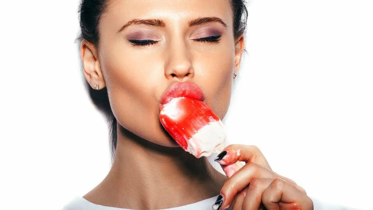 Девушка ест мороженое