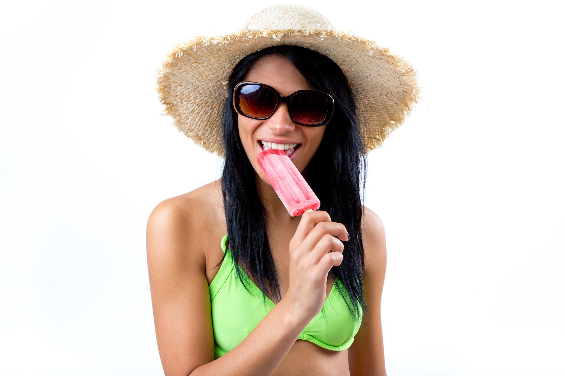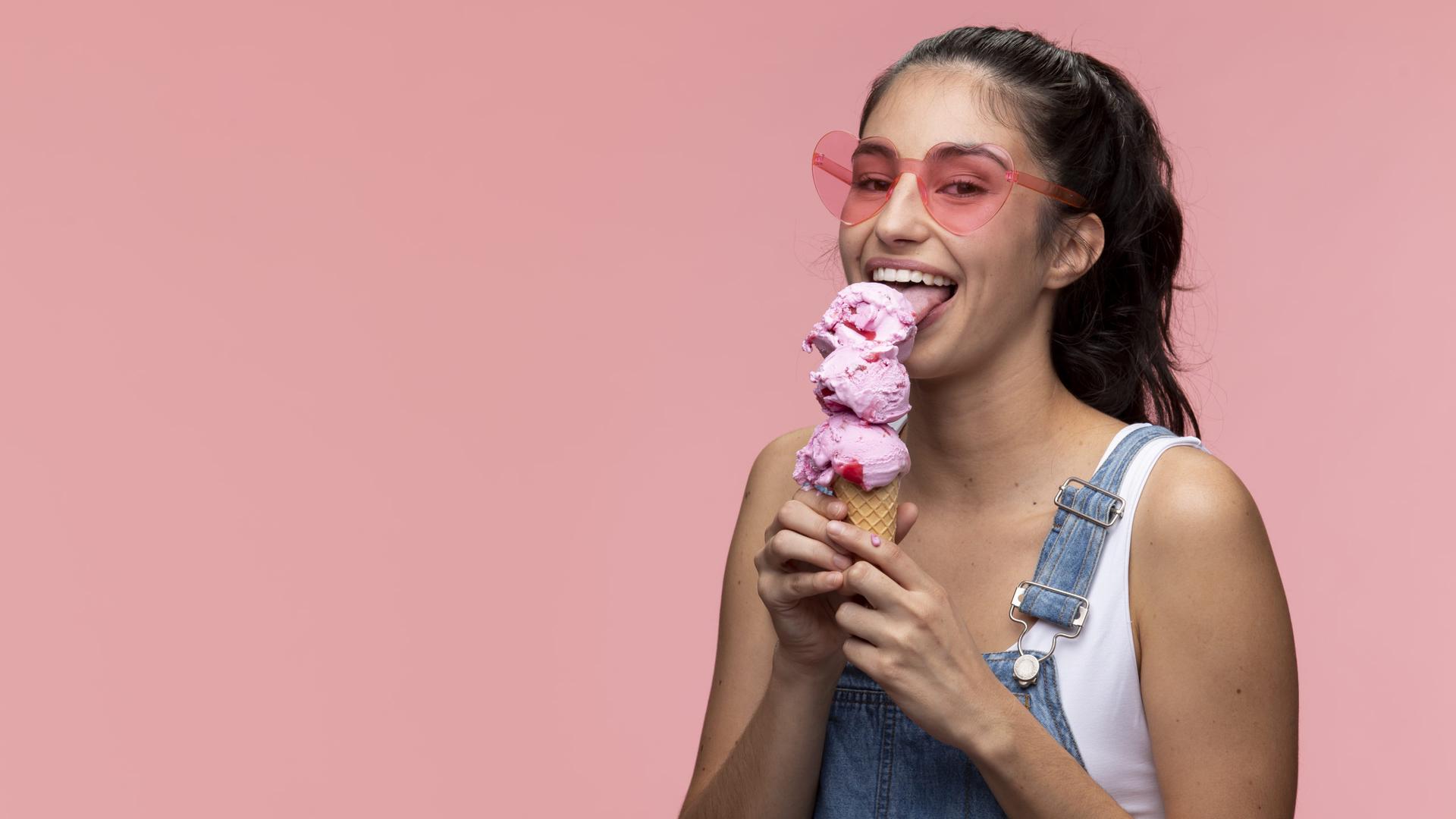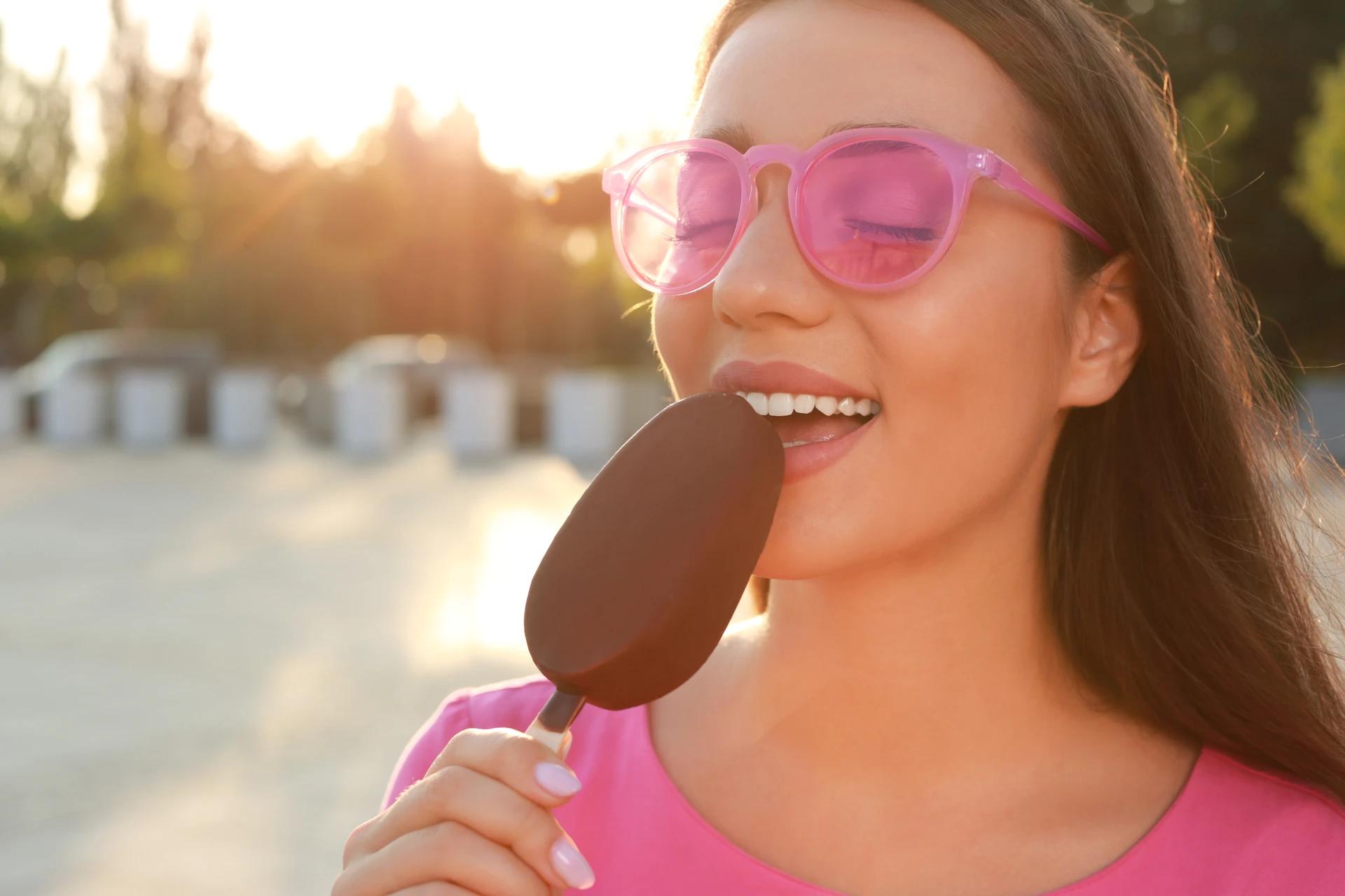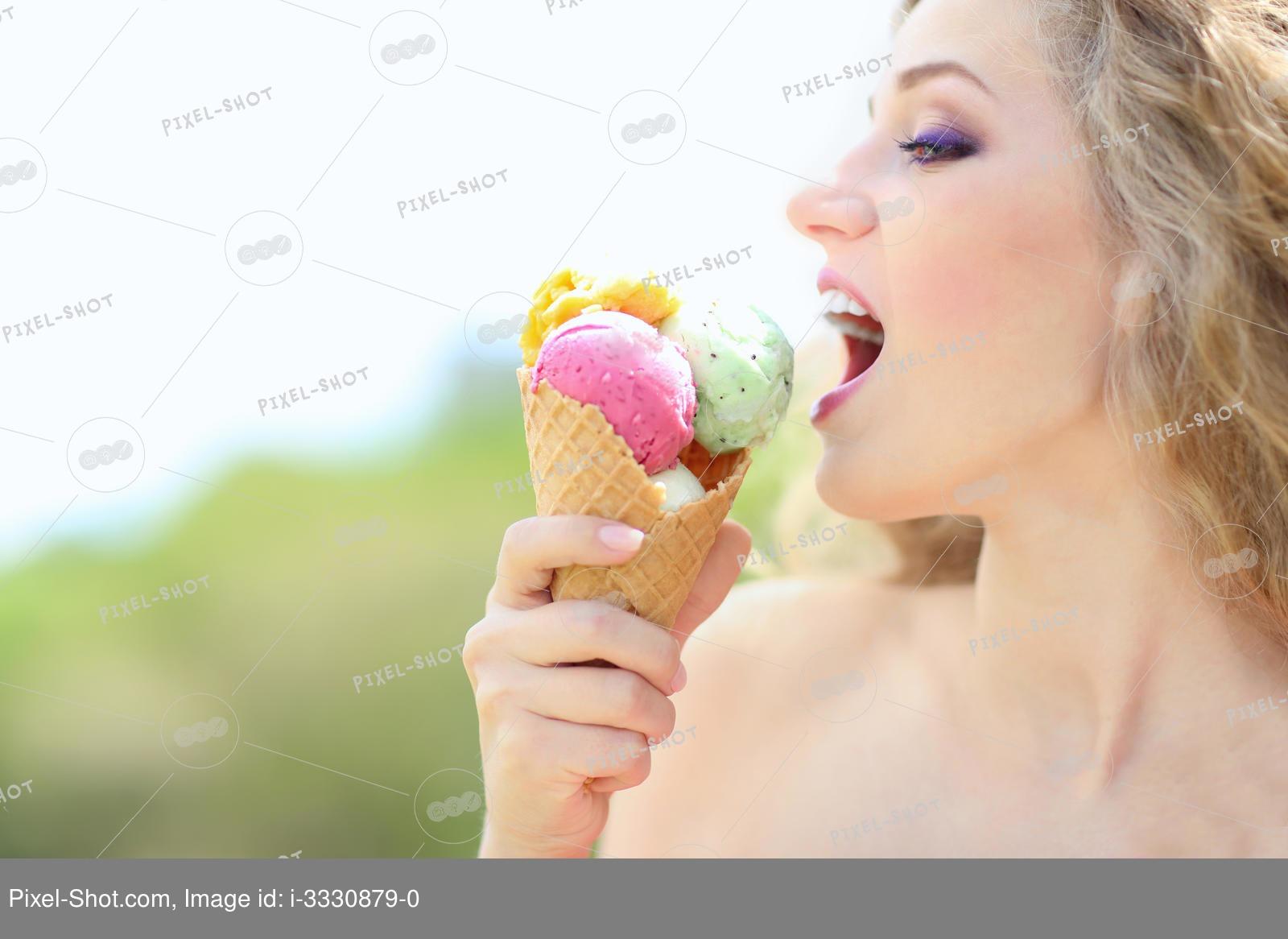 Девушка ест мороженое