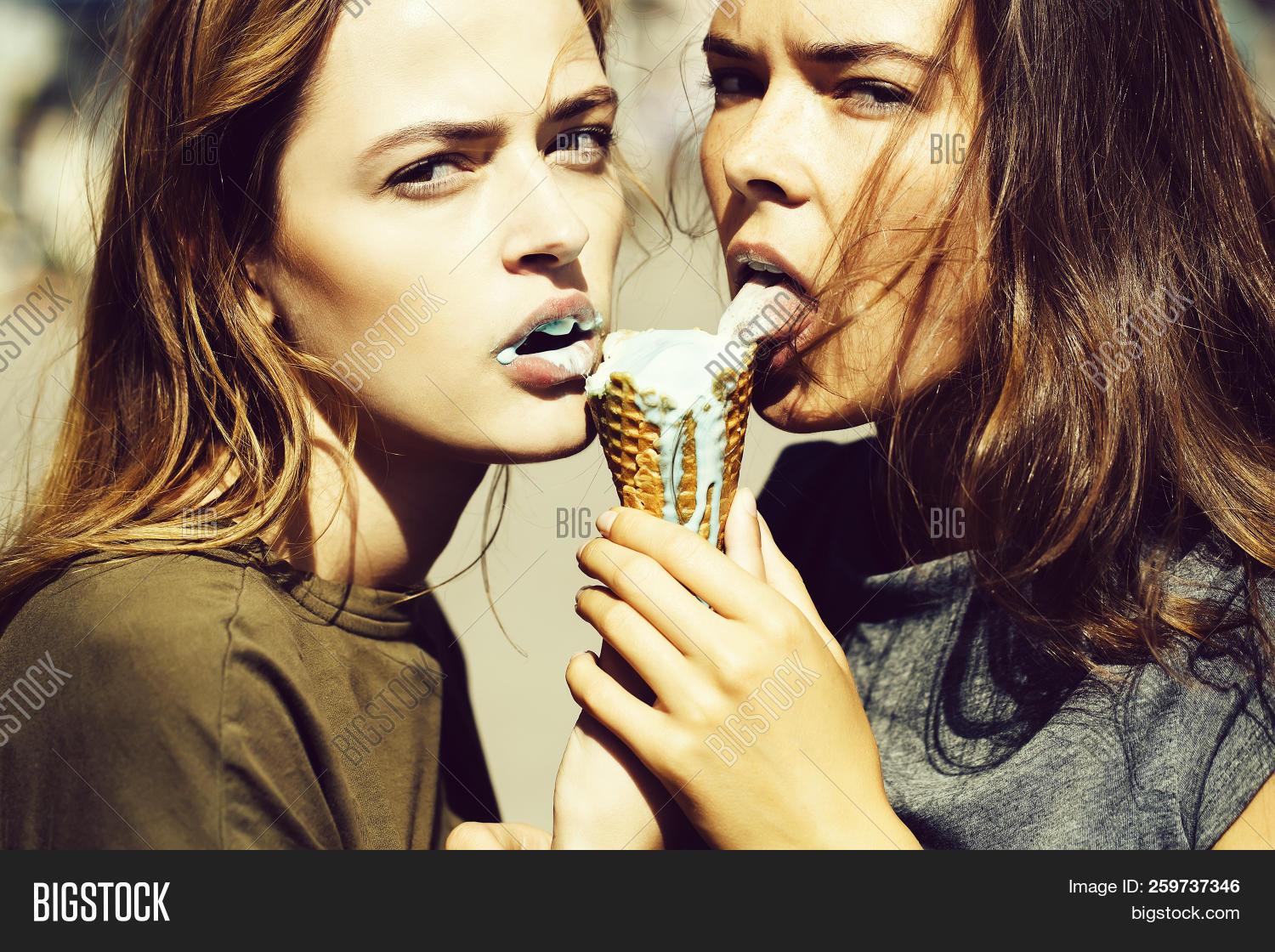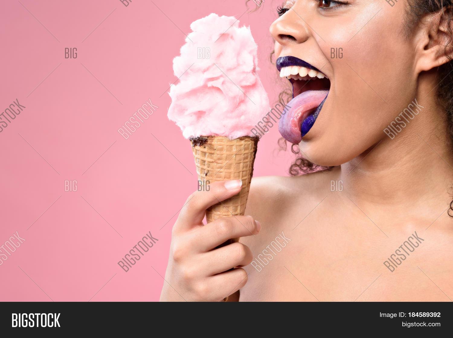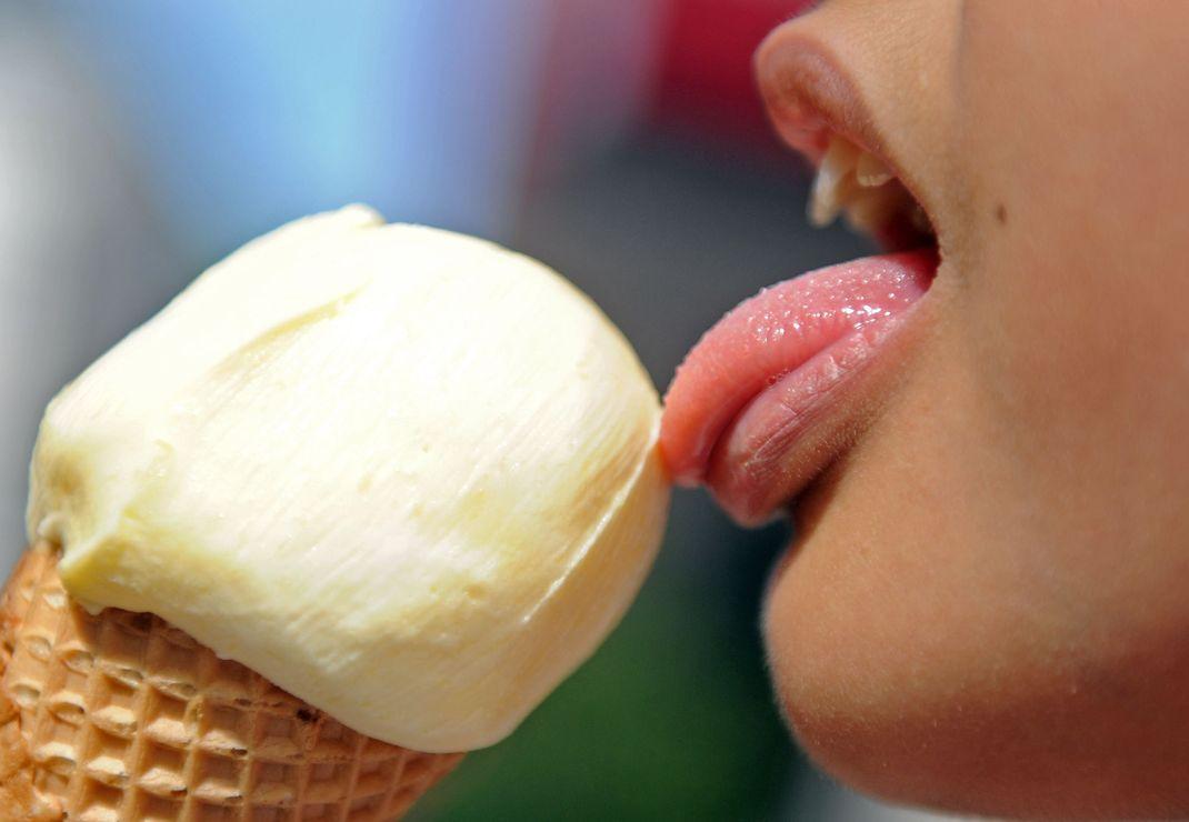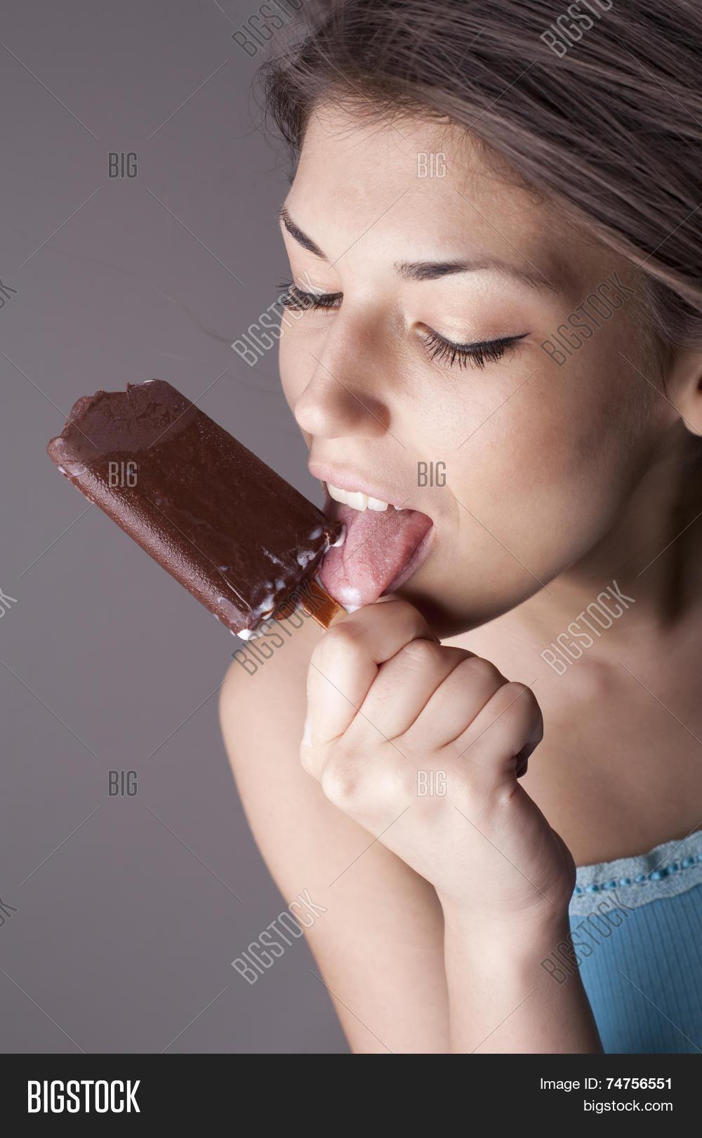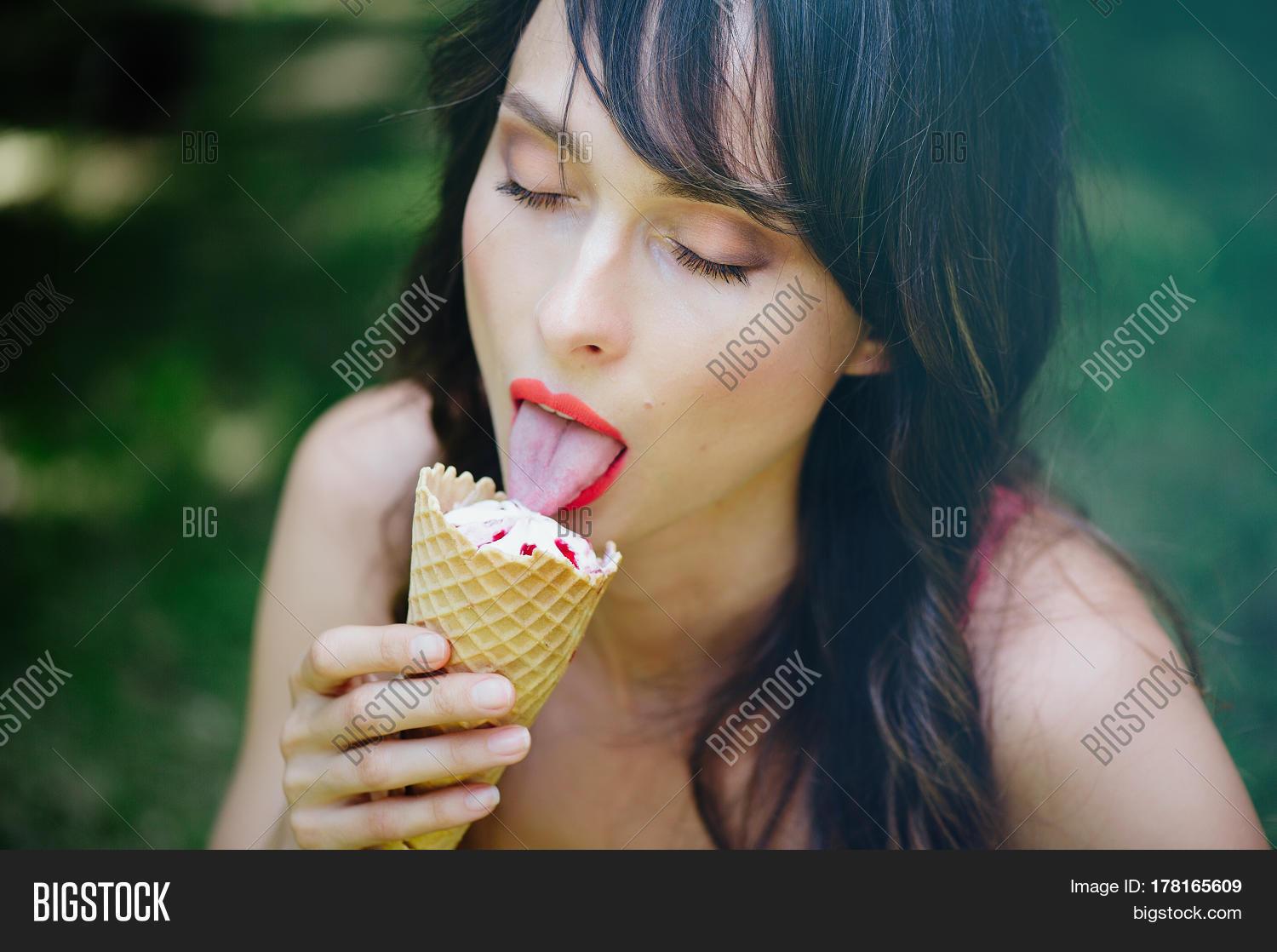 Девушка ест мороженое