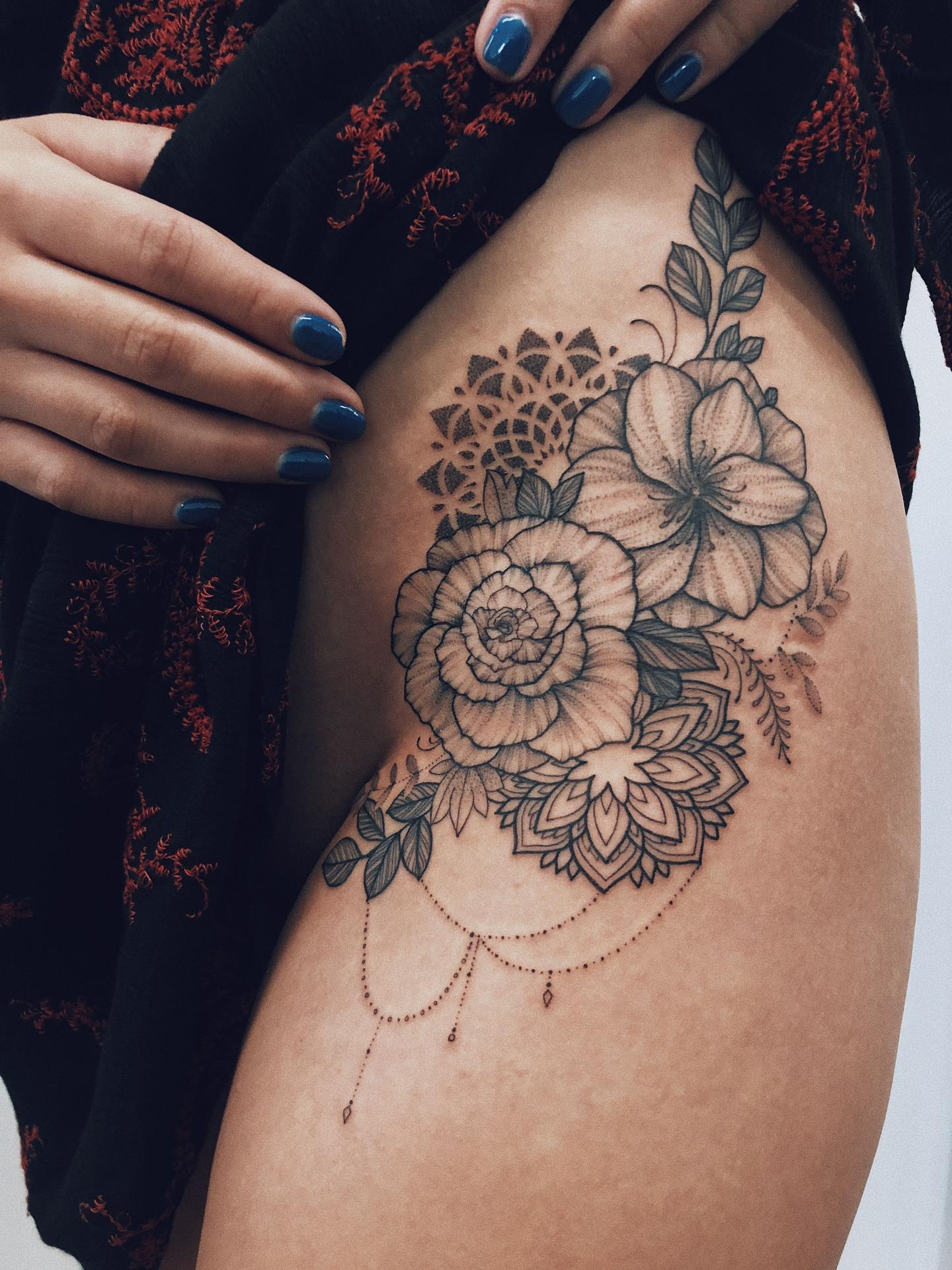 Тату на полных девушках