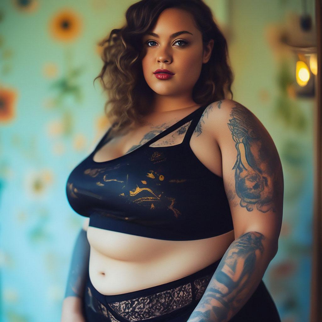 Татуировки становятся живыми картинами на телах полных девушек в этих фотографиях, демонстрирующих гармонию форм и художественного самовыражения. Их фигуры пышные и женственные, кожа гладкая и ухоженная. Каждый кадр передает атмосферу уверенности и индивидуальности. Девушки позируют в белье или купальниках, позволяя рассмотреть детали татуировок - цветы, геометрические узоры, надписи. Фотографии рассказывают о принятии своего тела и искусстве как форме самовыражения. Их волосы ниспадают на плечи, глаза сияют внутренней силой. Эти иллюстрации вдохновляют на любовь к себе и эксперименты с образом. Каждая картинка - это момент триумфа над стереотипами и самовыражения. Девушки воплощают образ современной женщины, ценящей свою уникальность и красоту во всех формах.