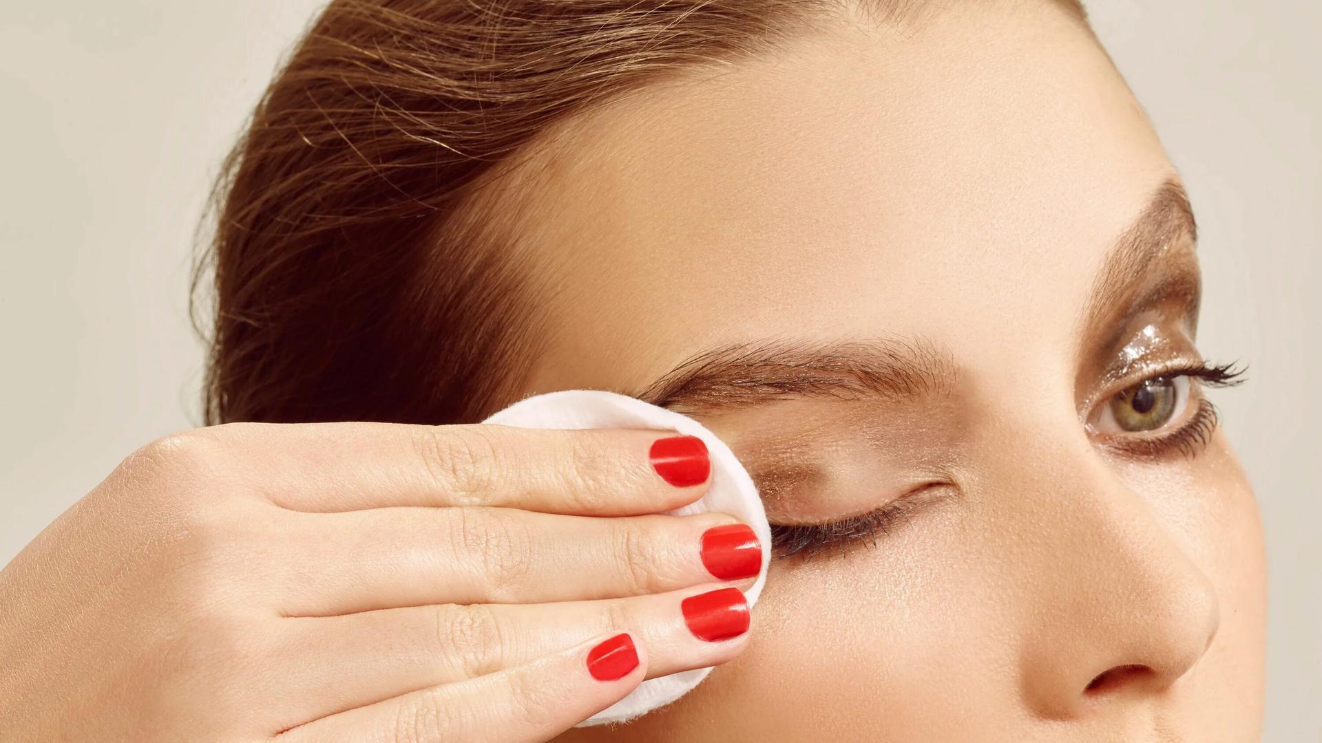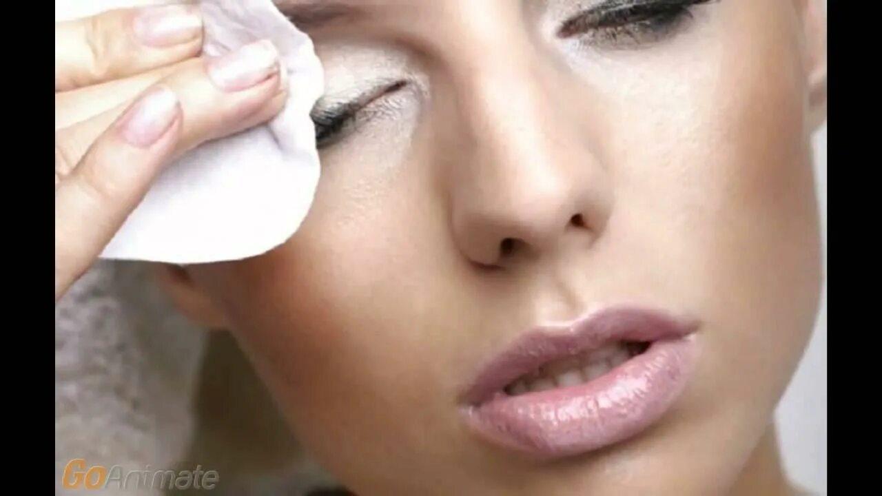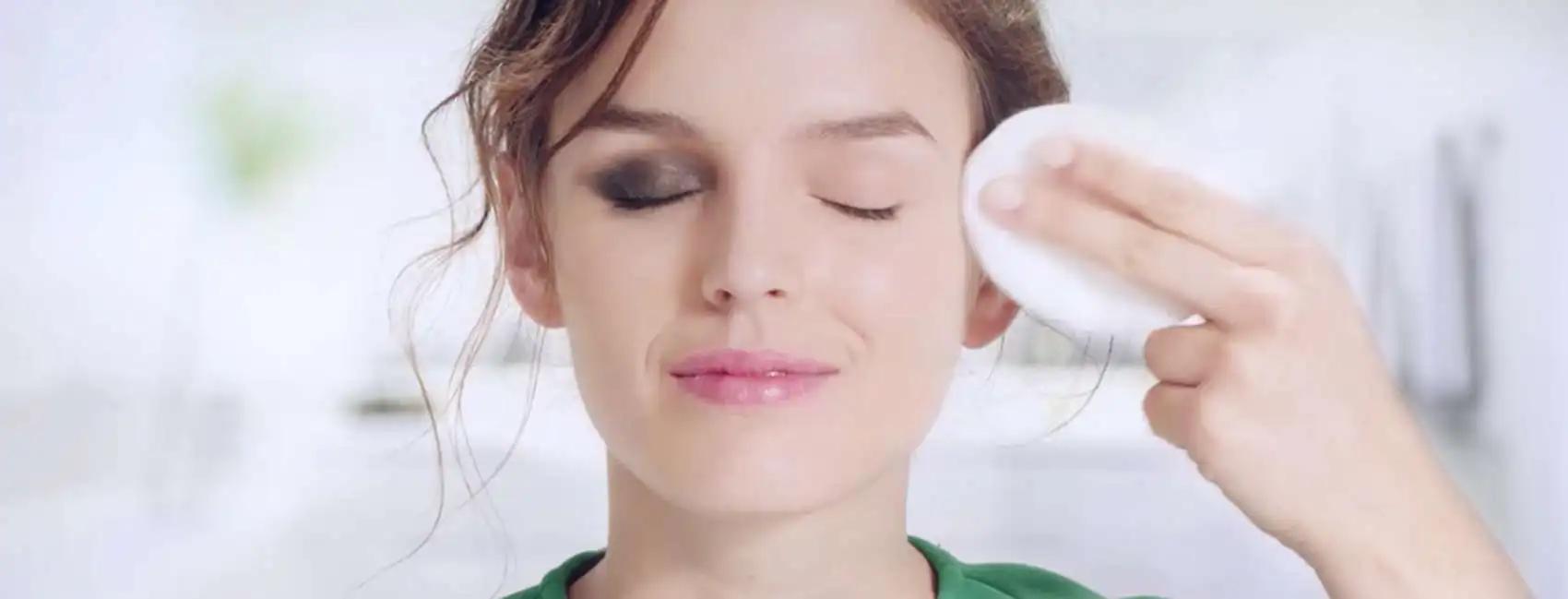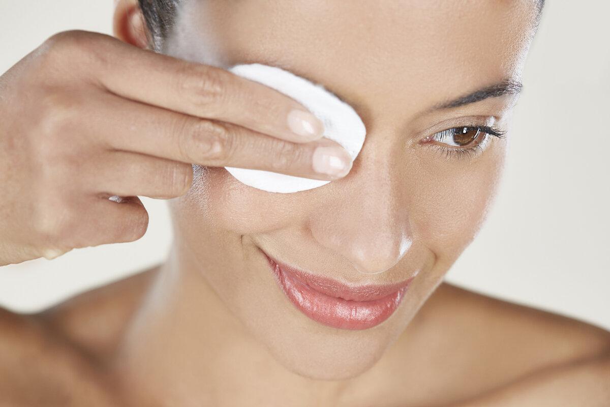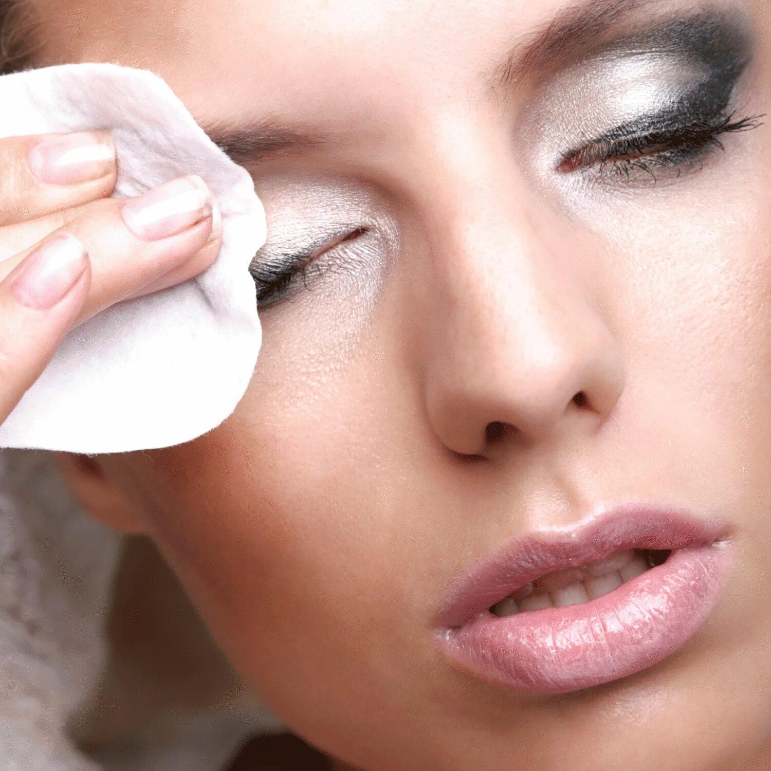 Девушка смывает макияж