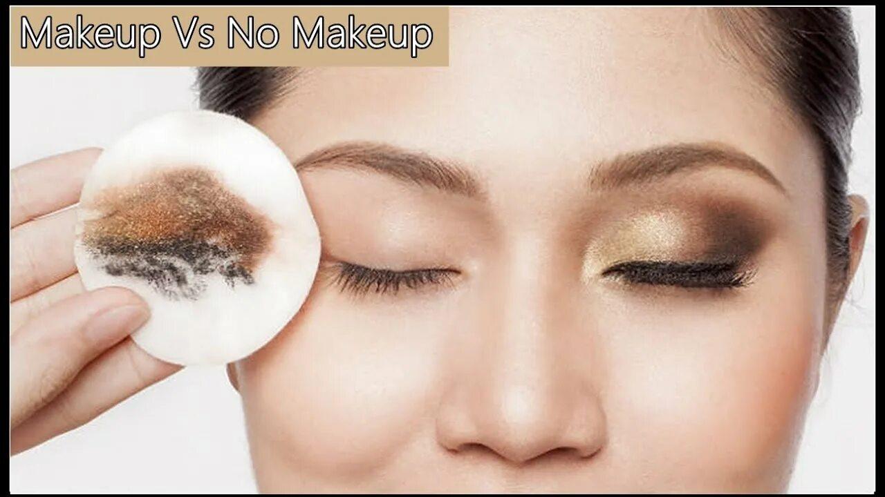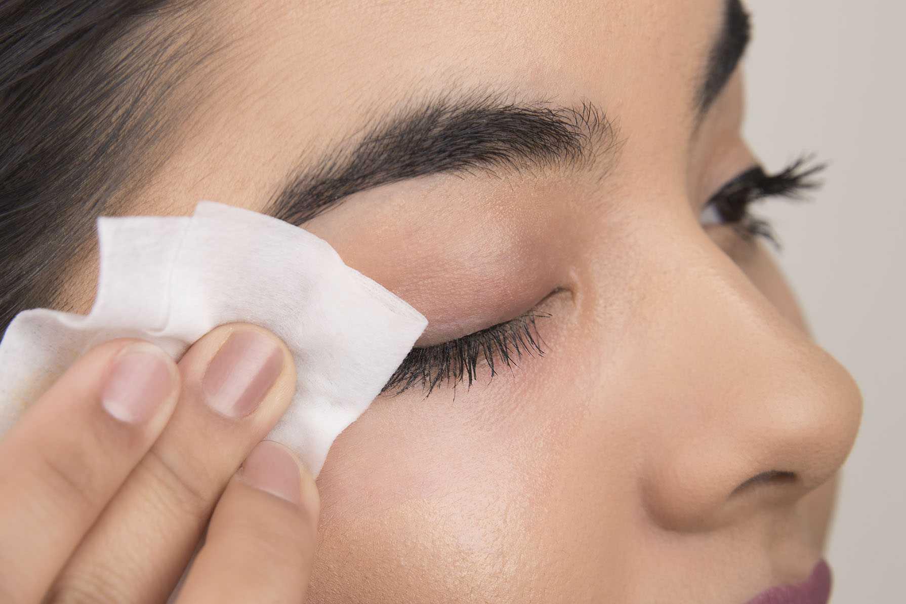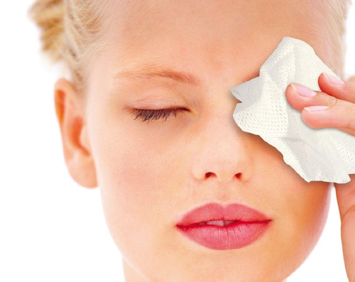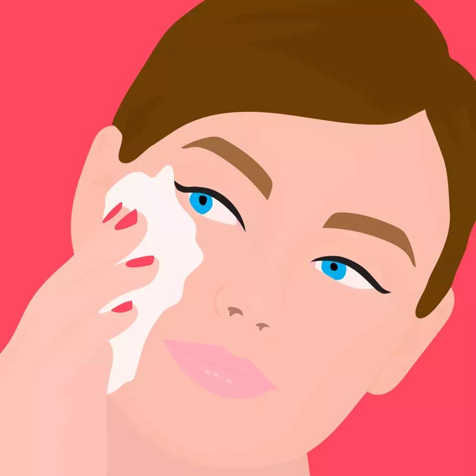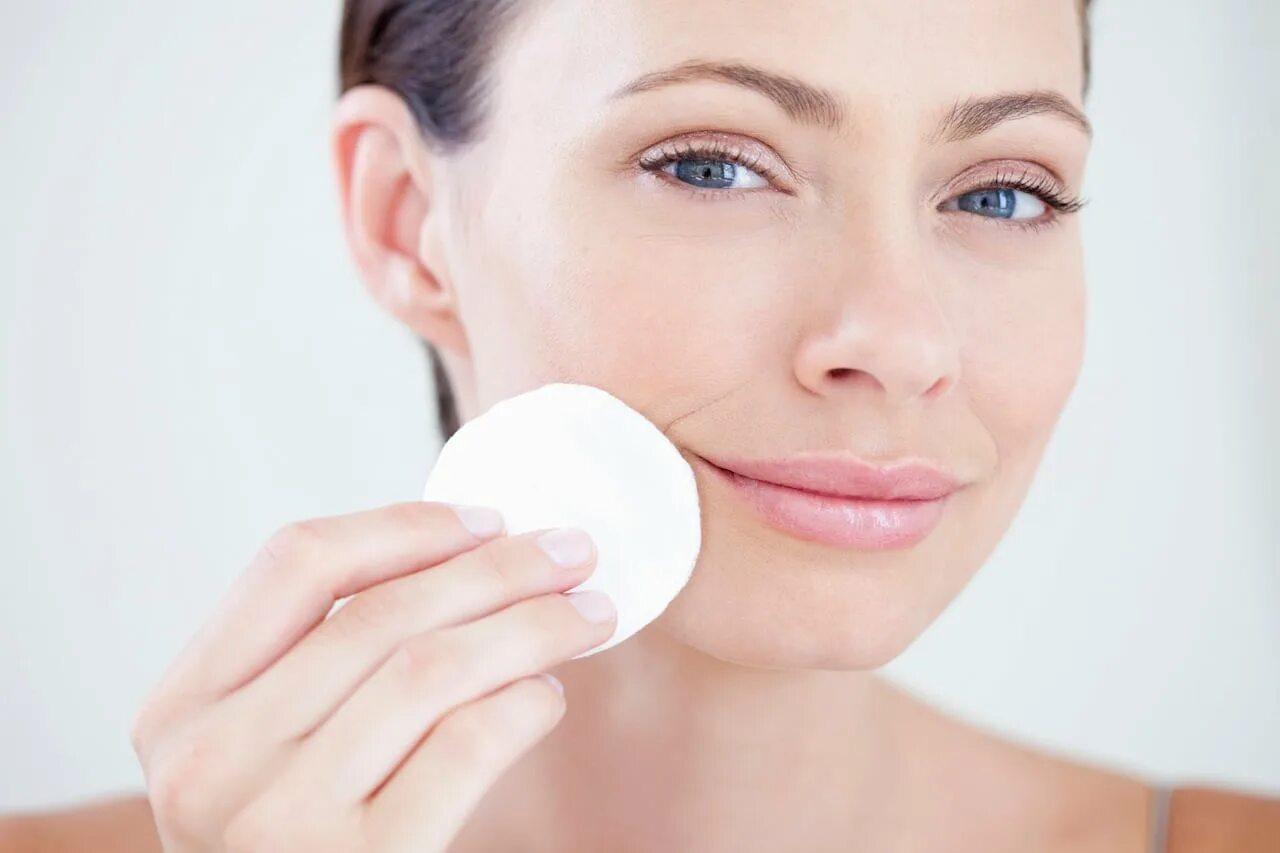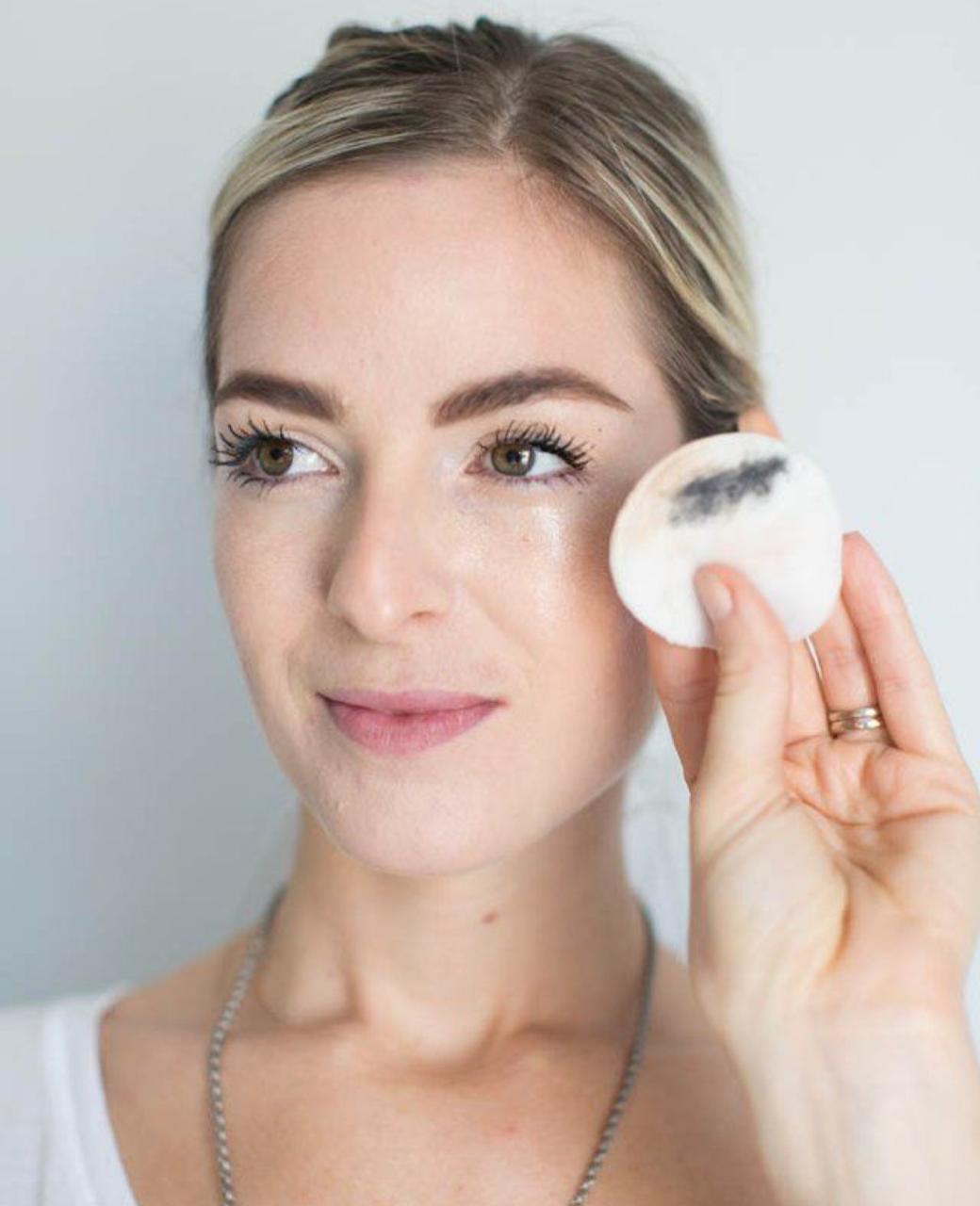 Девушка смывает макияж