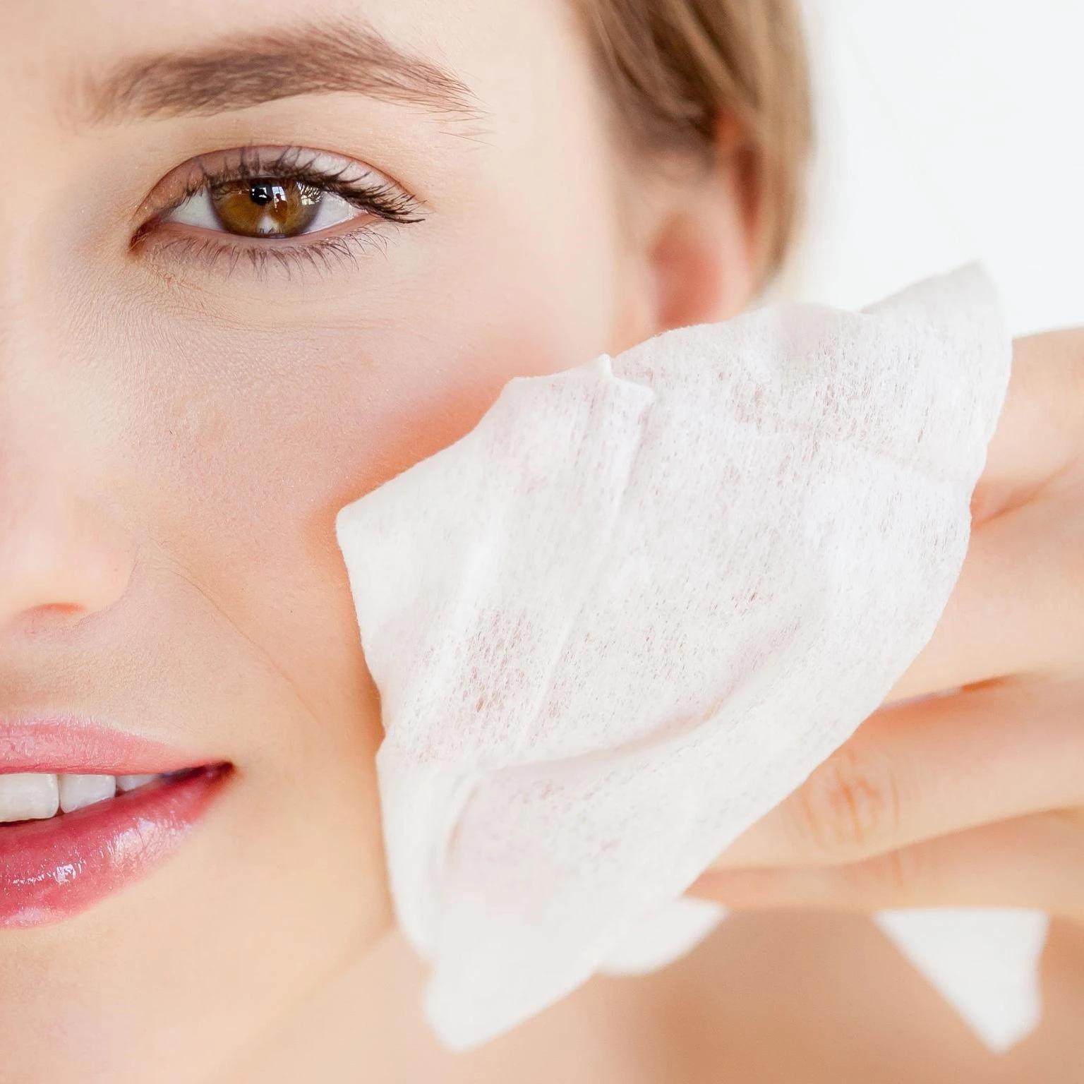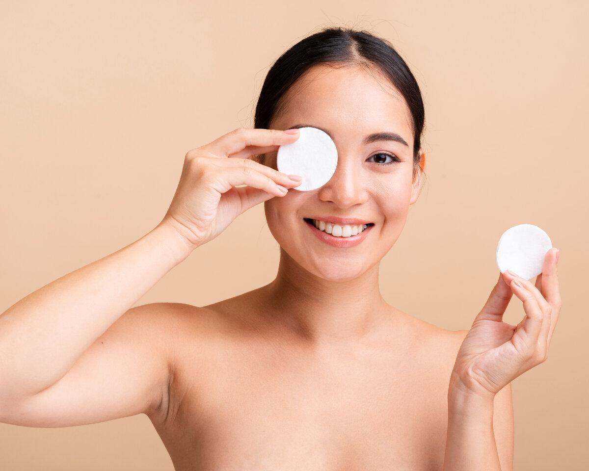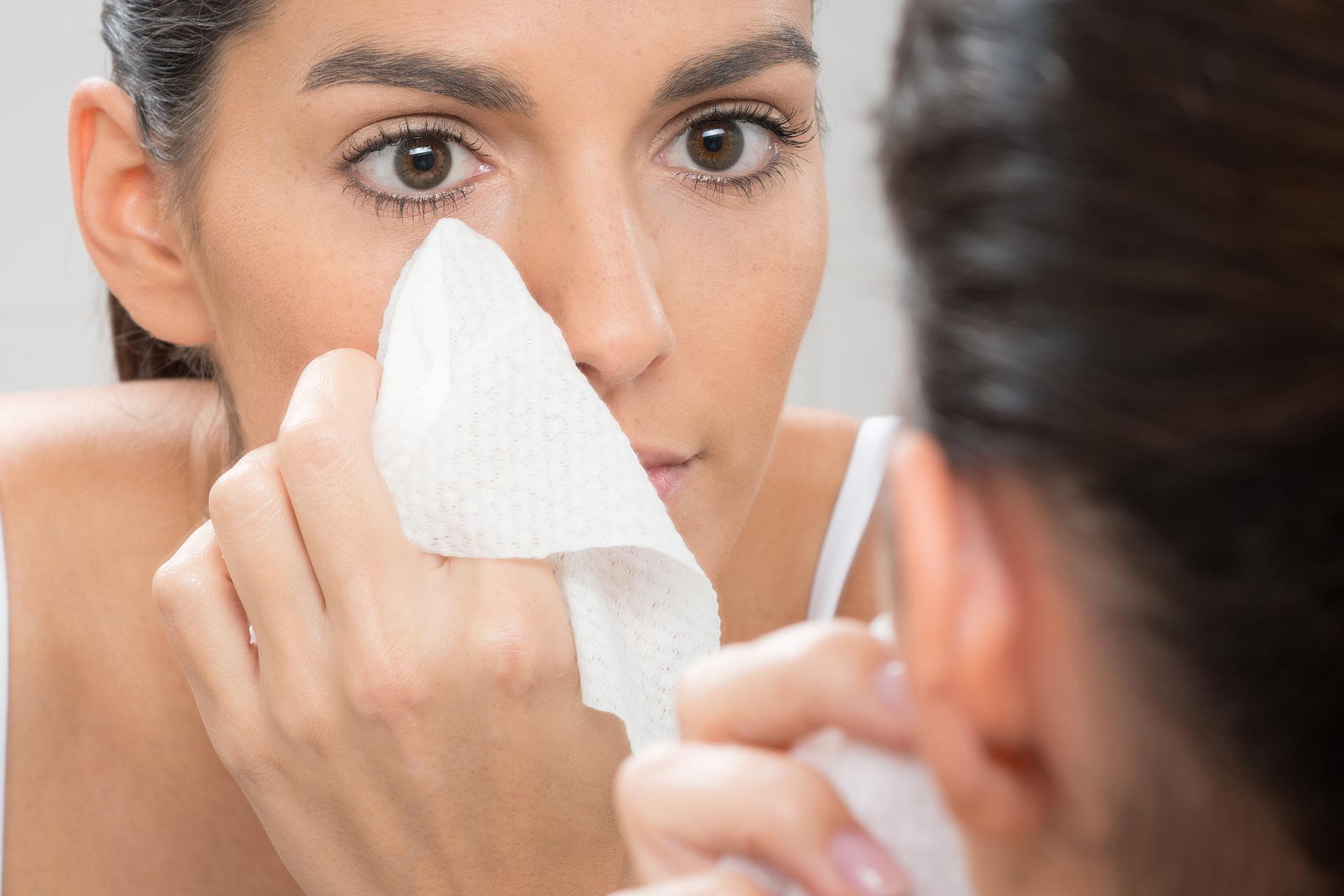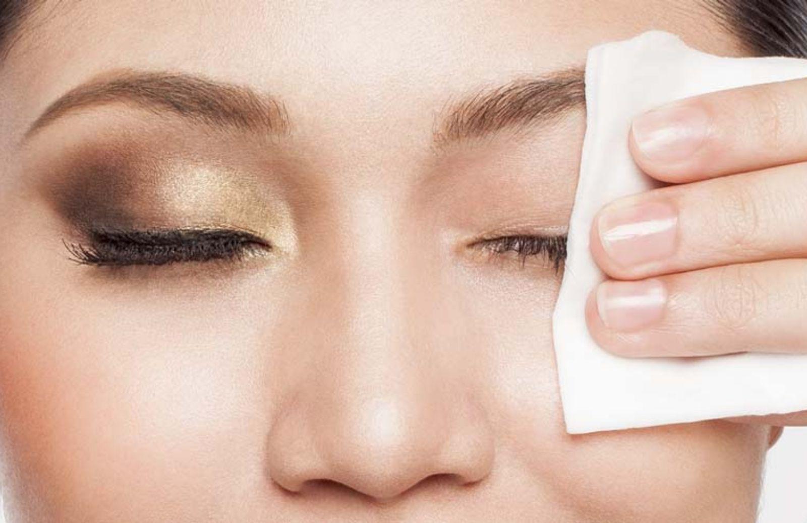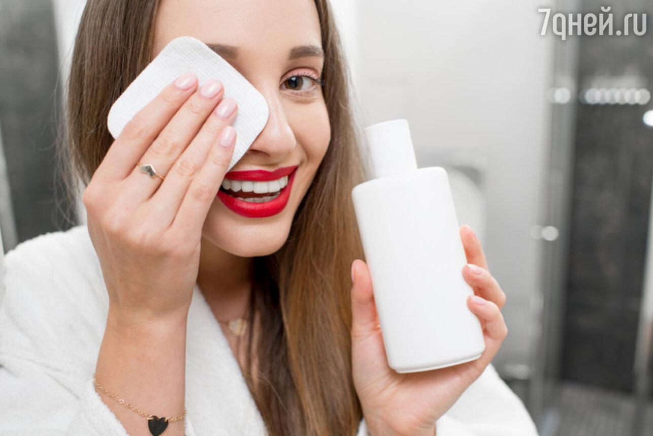 Девушка смывает макияж