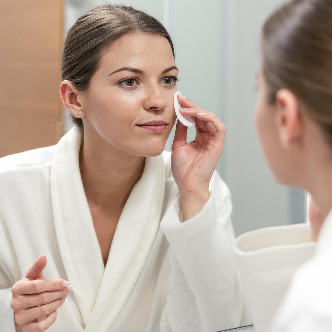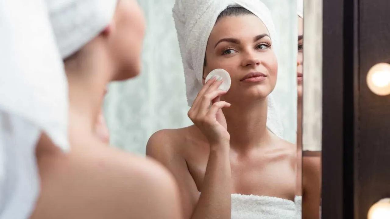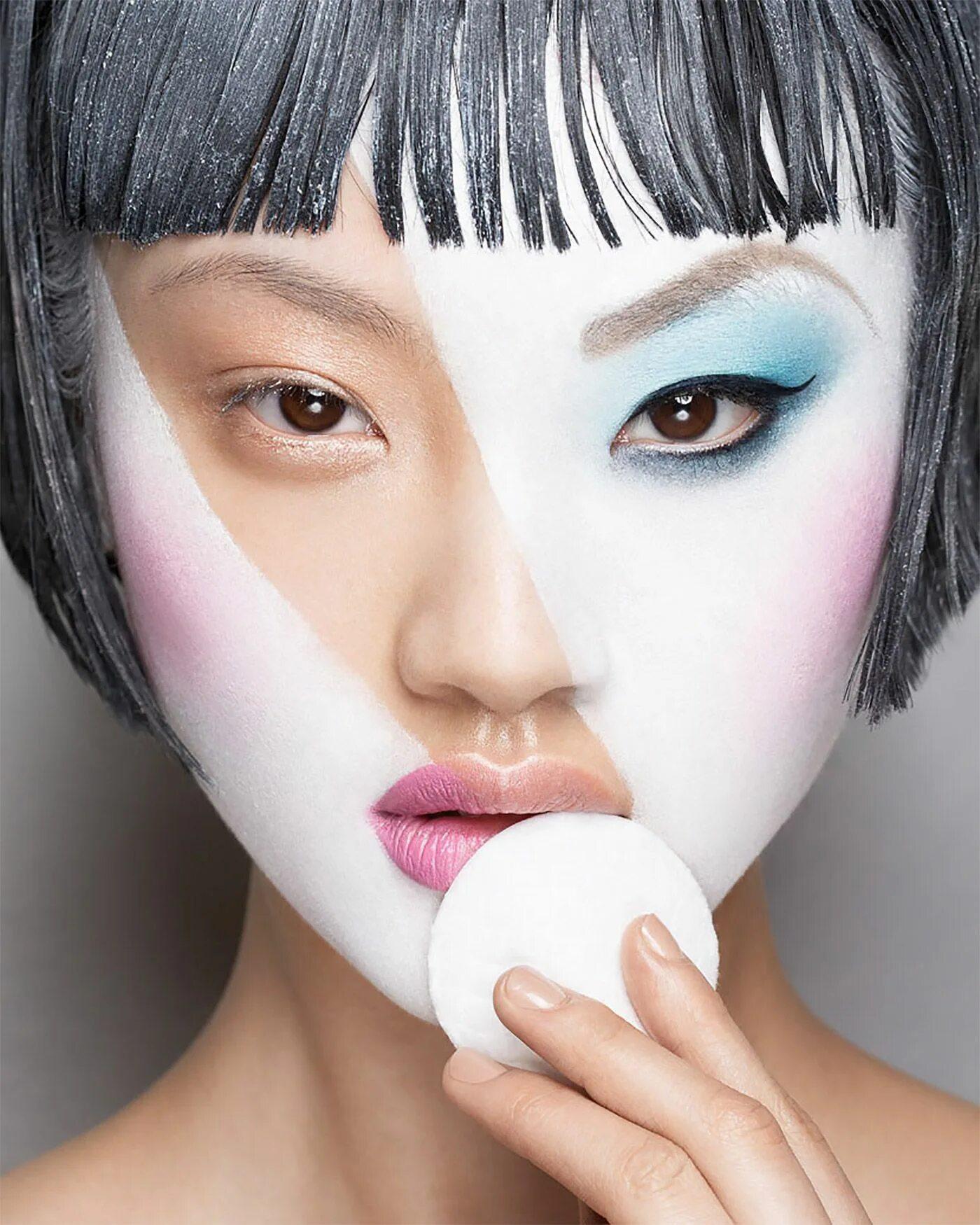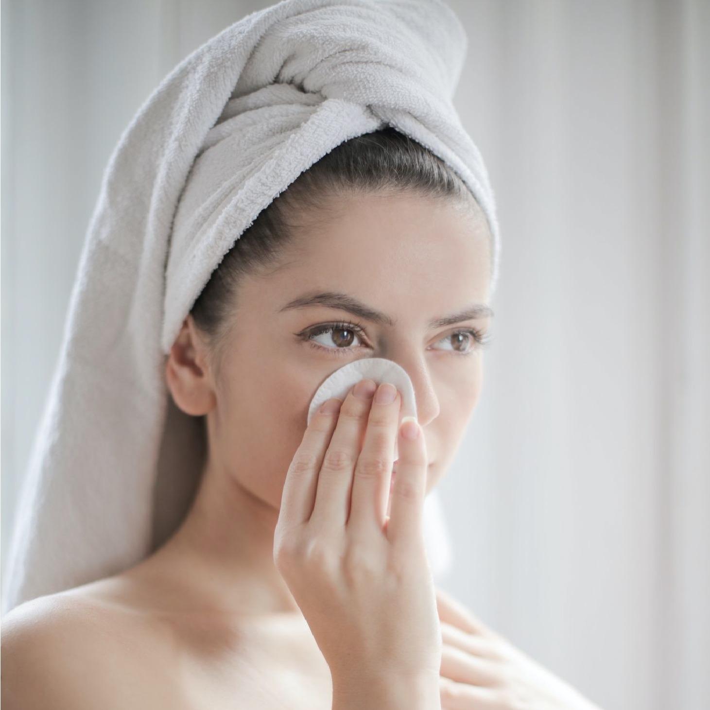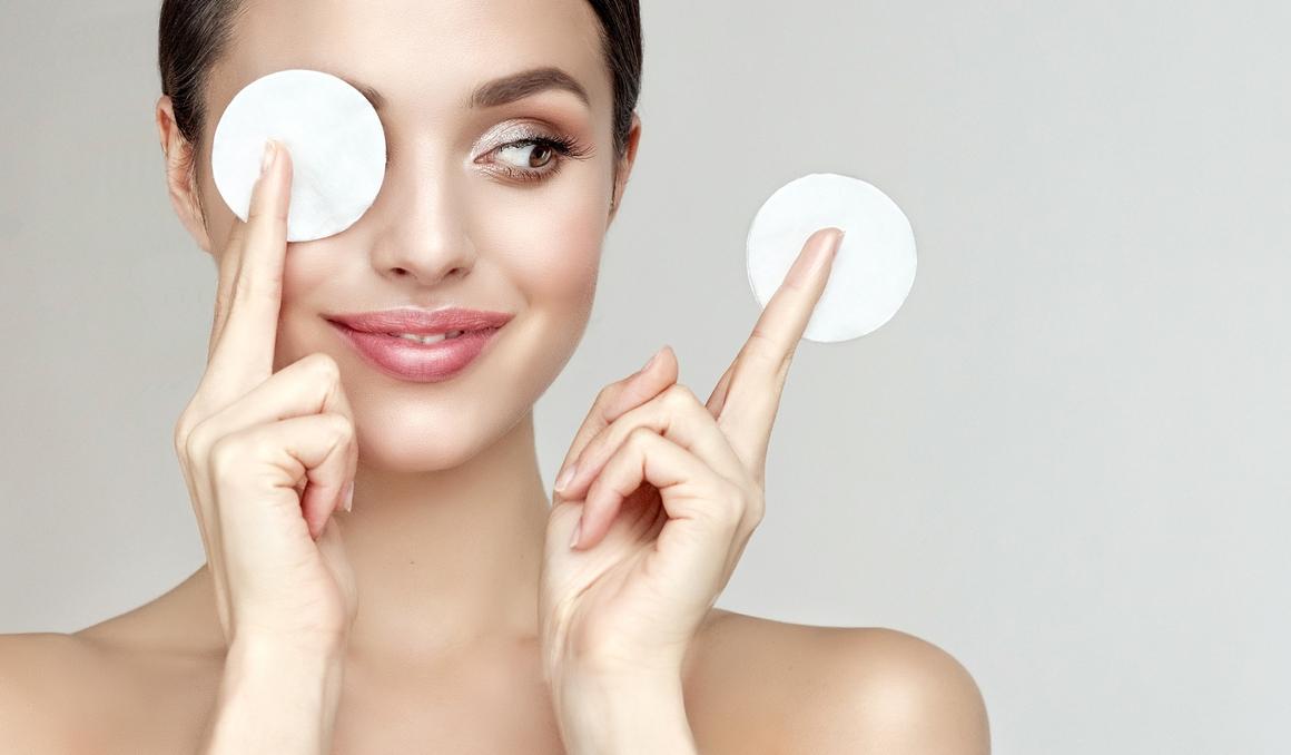 Девушка смывает макияж