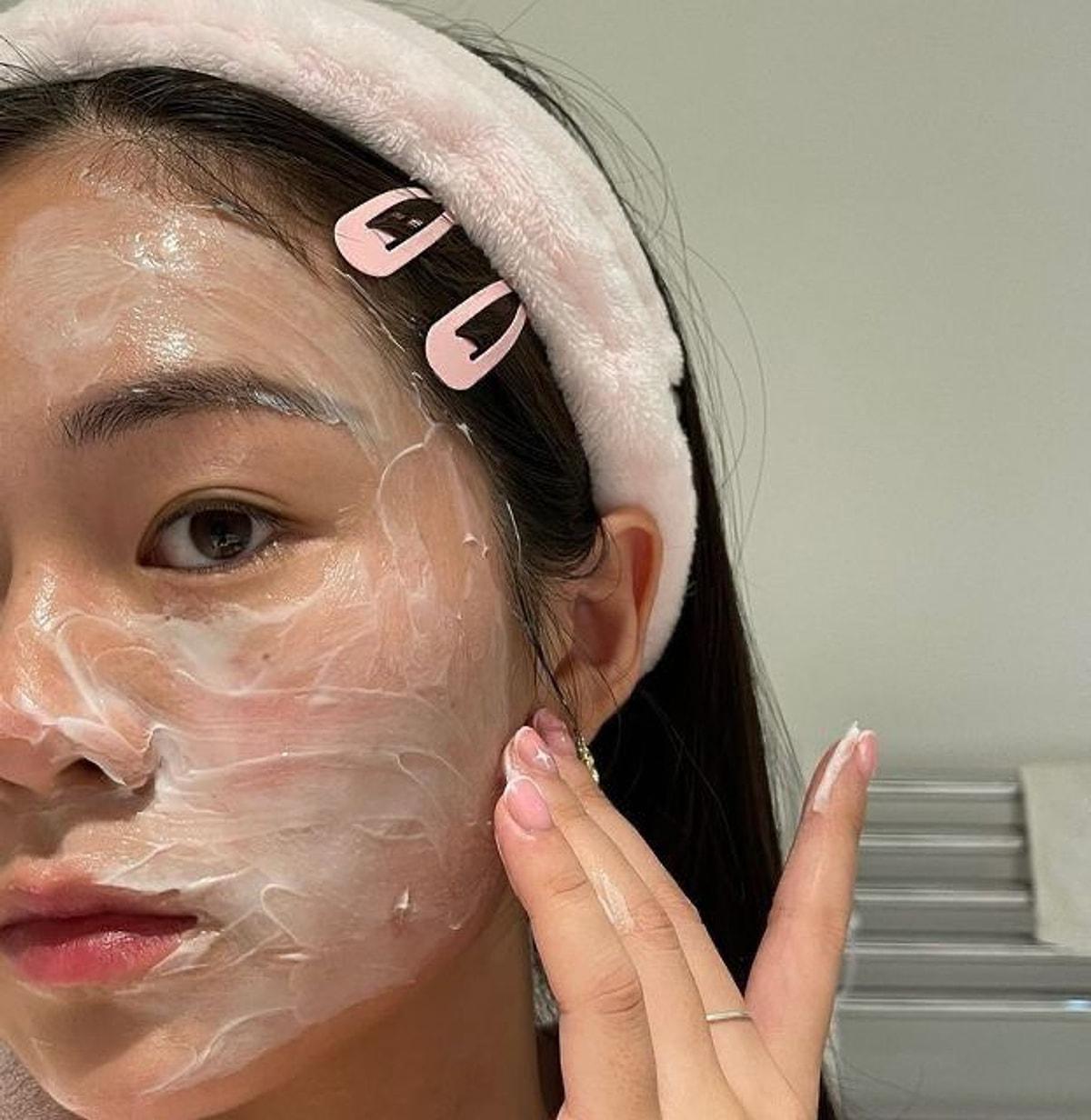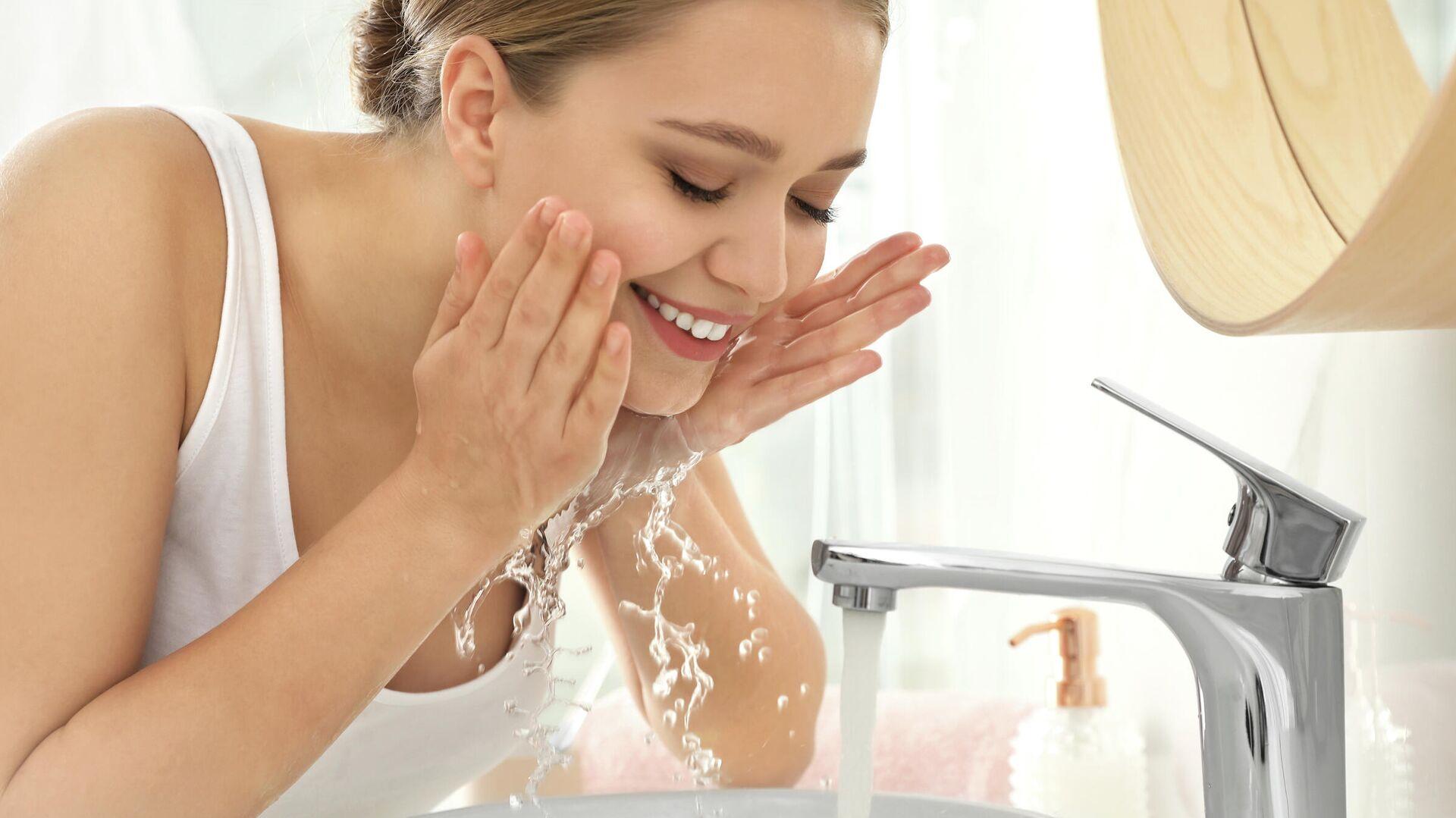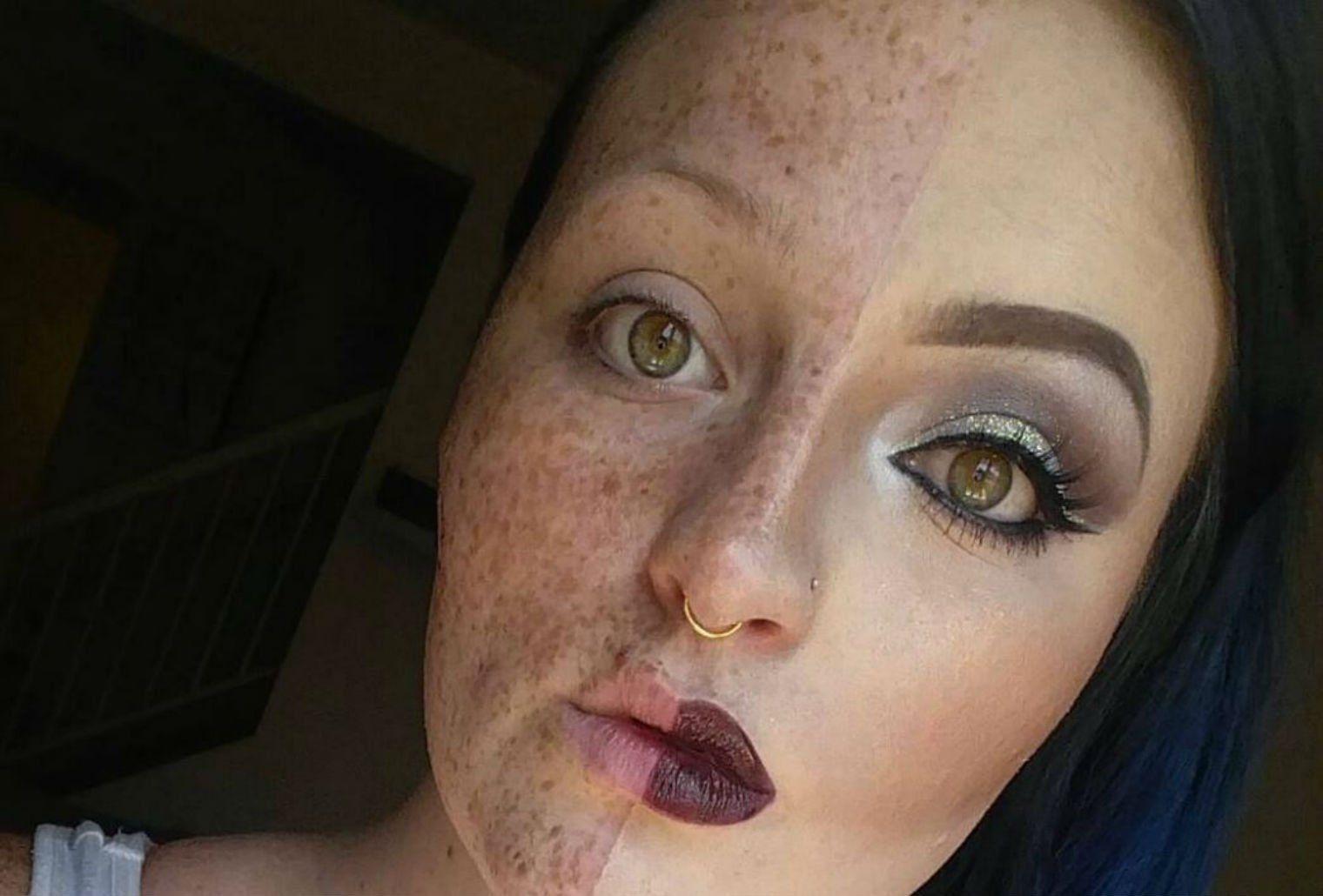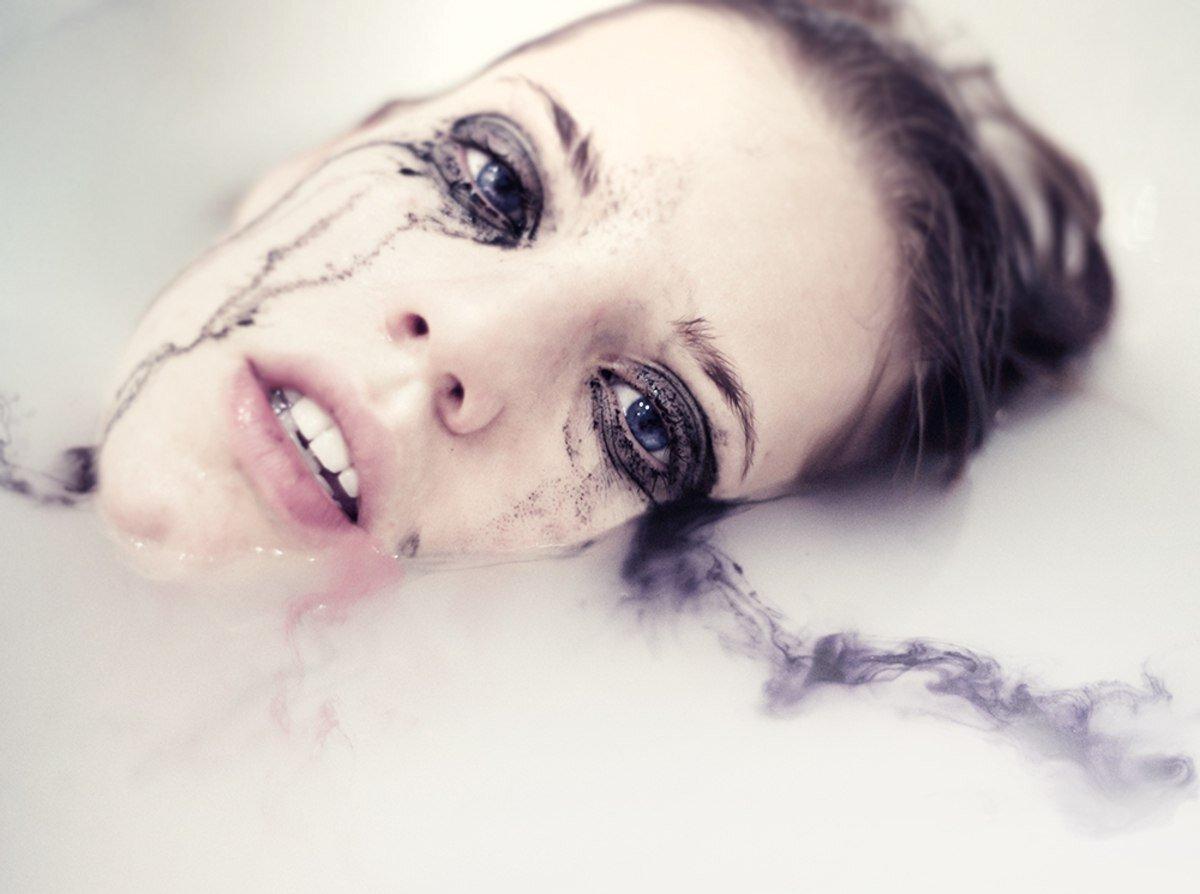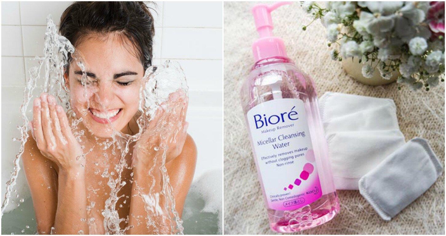 Девушка смывает макияж
