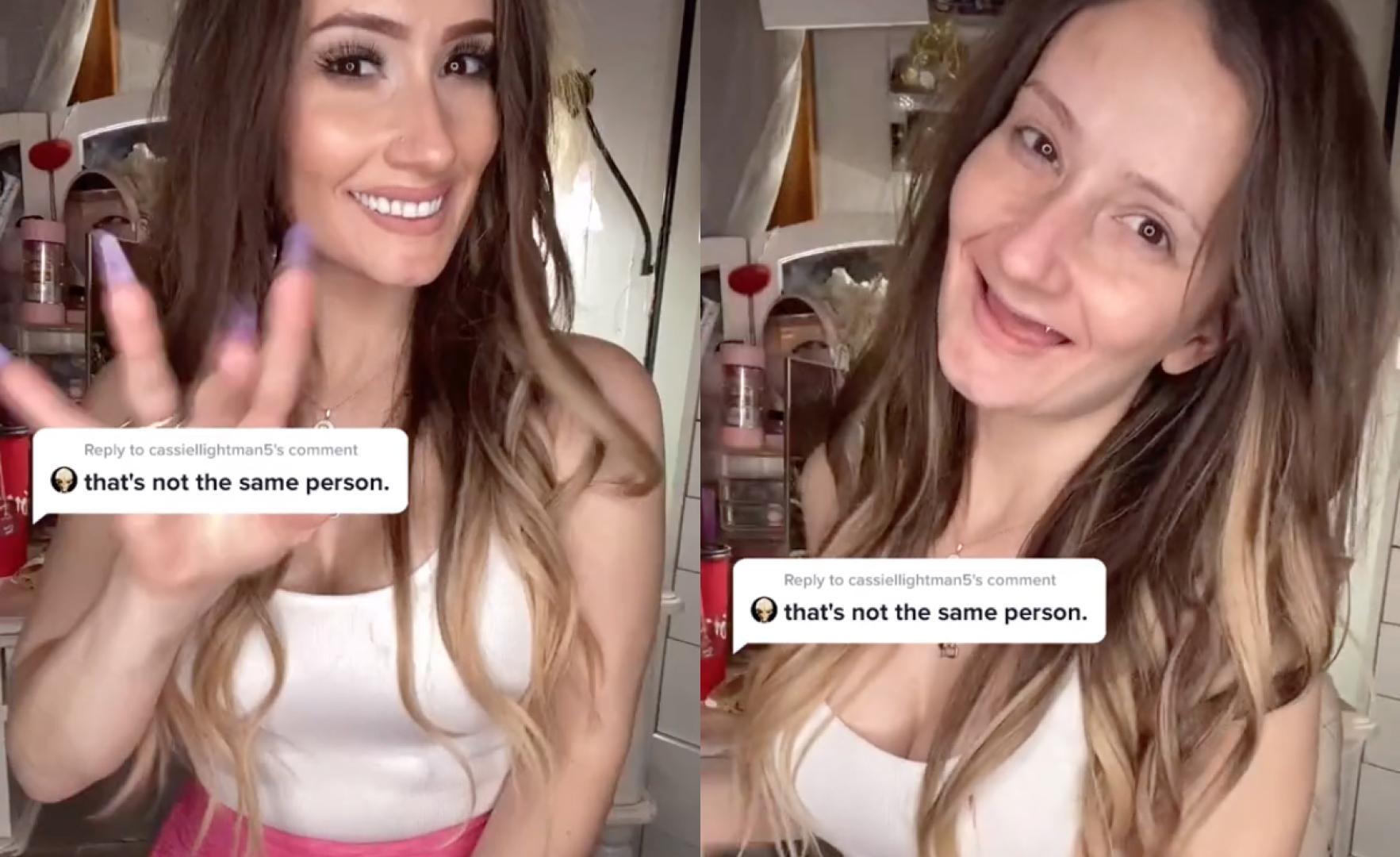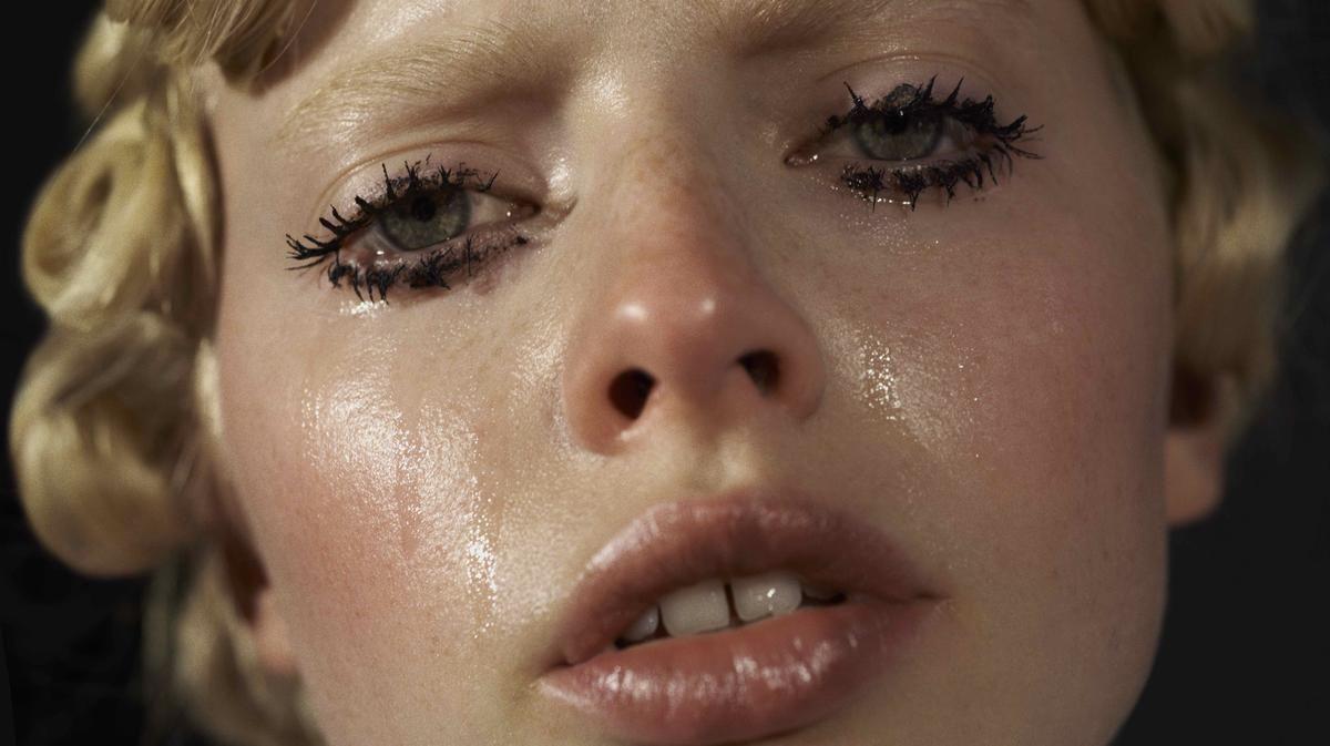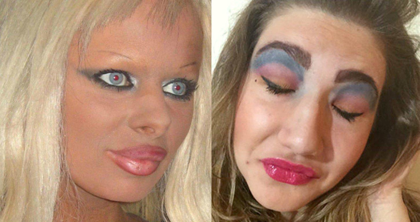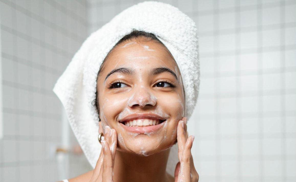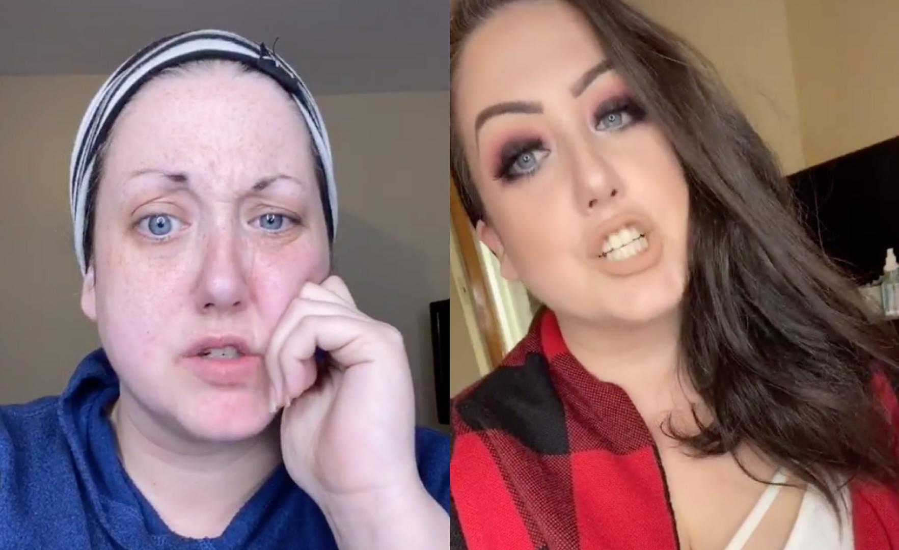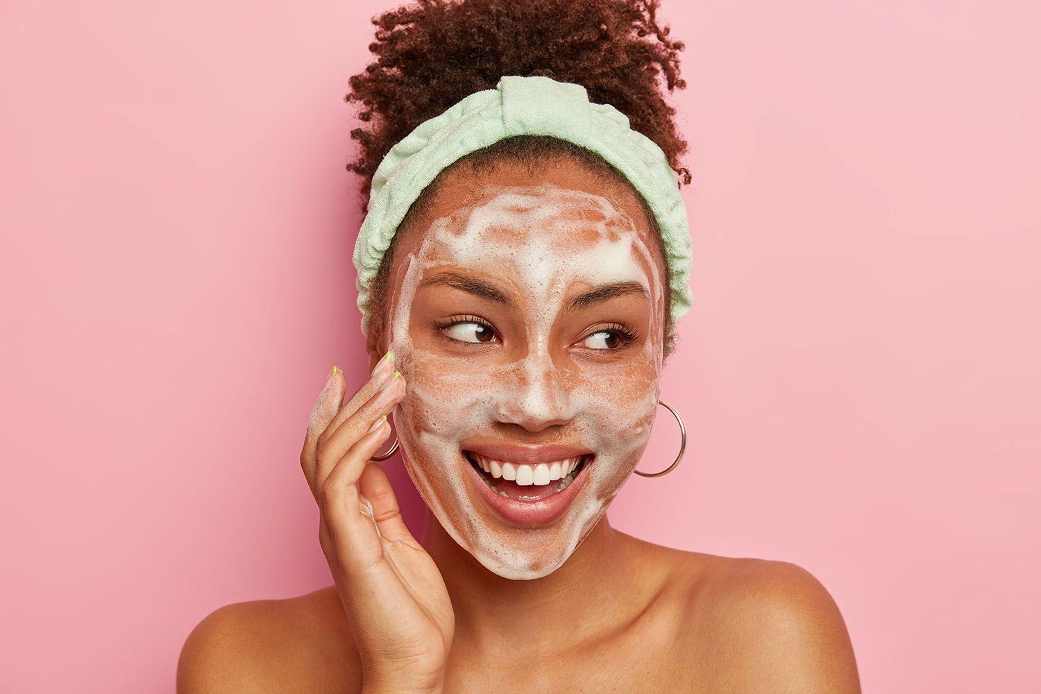 Девушка смывает макияж
