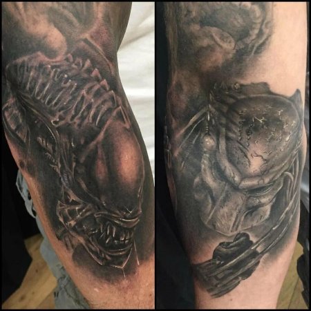 Хищник и Чужой представляют собой уникальный дуэт в мире научной фантастики, где каждое существо обладает своими особенностями и характеристиками, которые делают их опасными и непредсказуемыми противниками. Чужой против хищника, запечатленный в тату, становится символом борьбы между двумя силами, каждая из которых обладает своими преимуществами и недостатками. Картинки Чужой и Хищник создают атмосферу напряженности и опасности, где каждое сражение может стать последним для одного из участников.