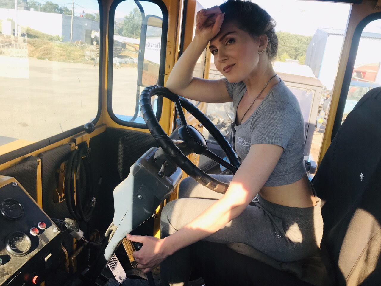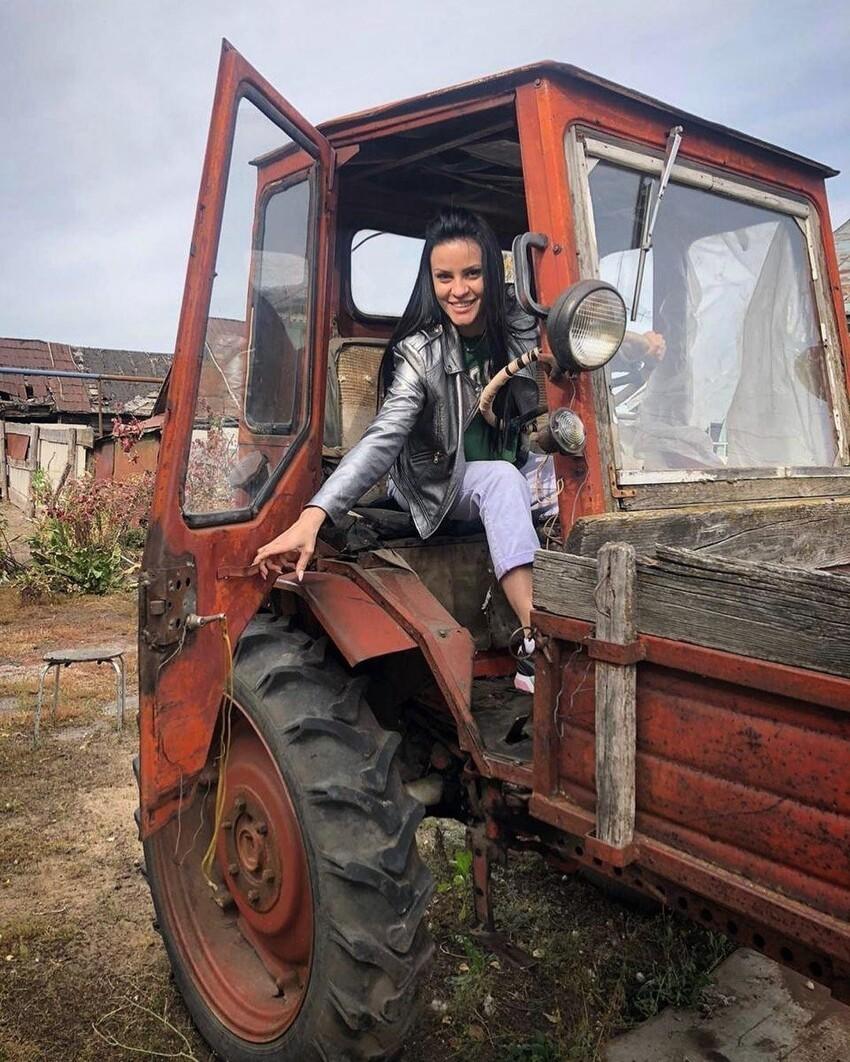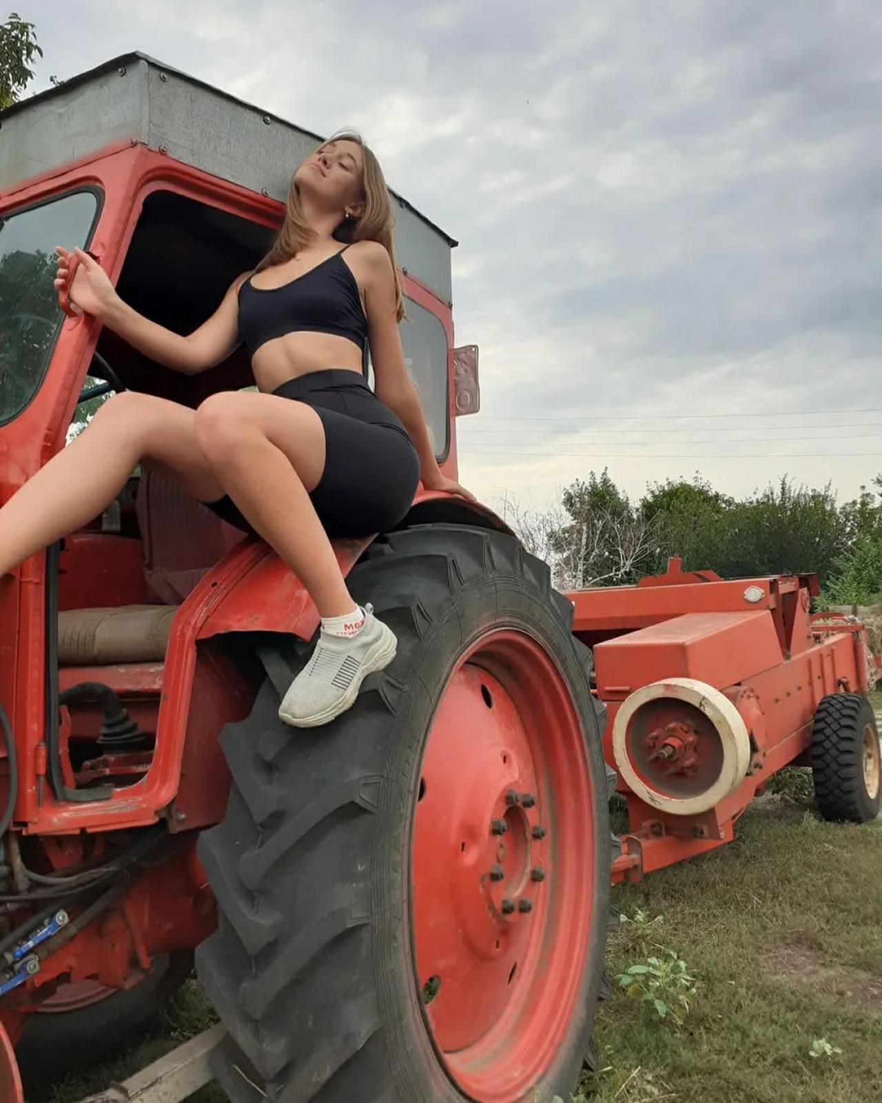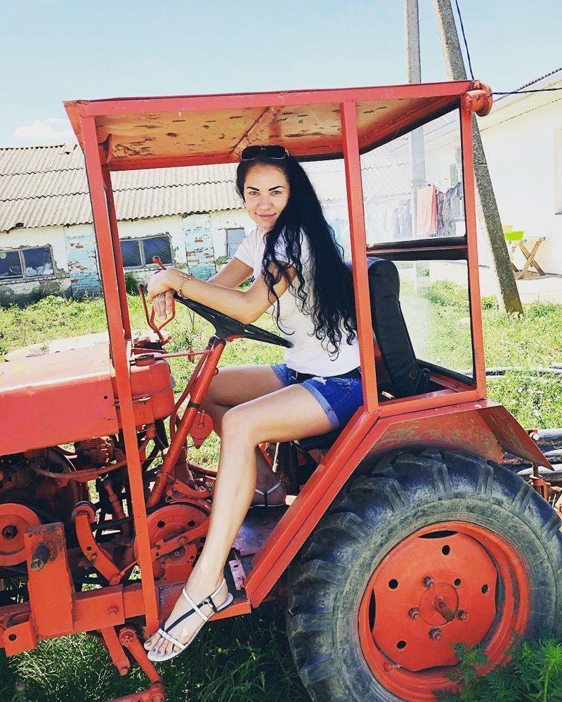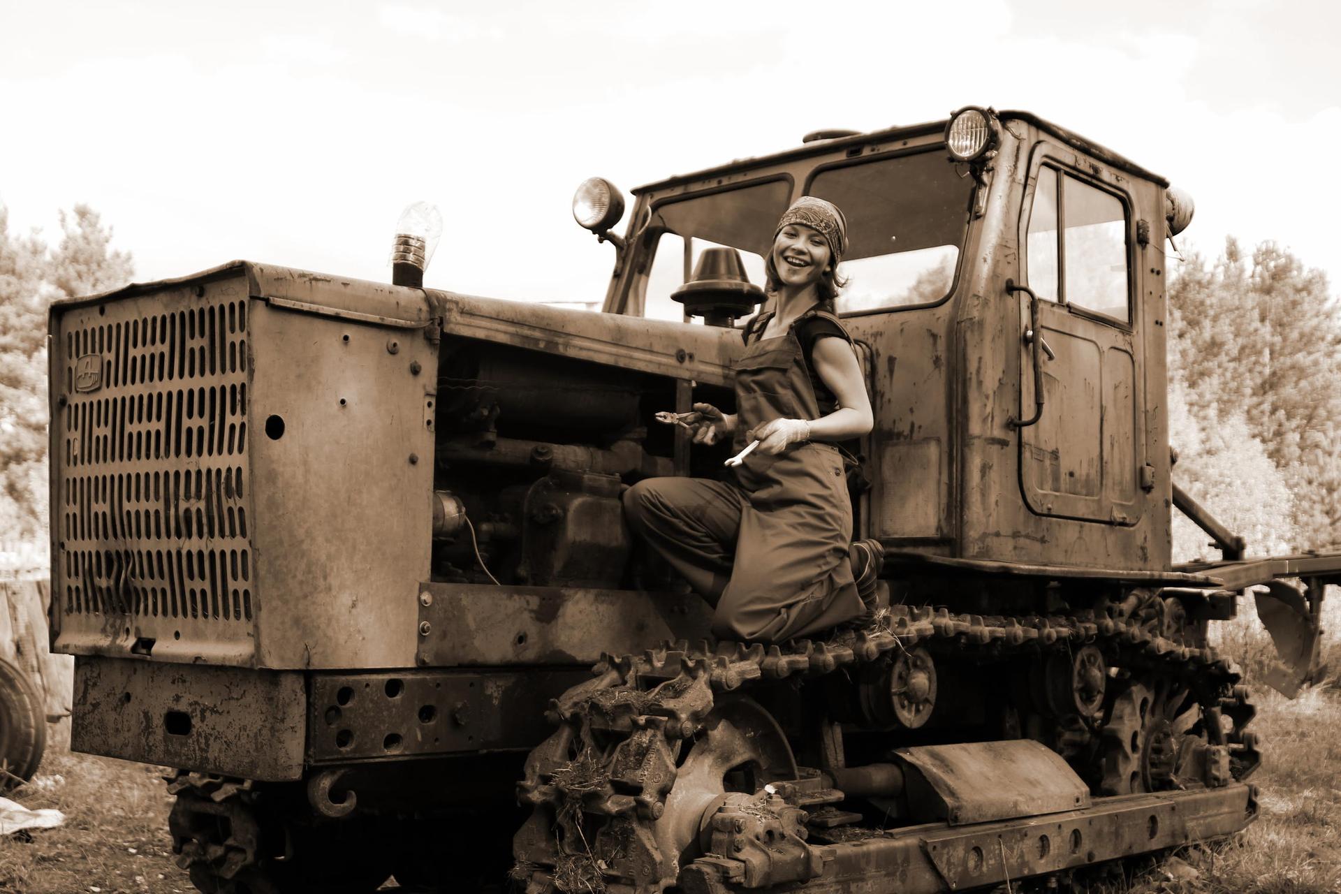 Девушка на тракторе