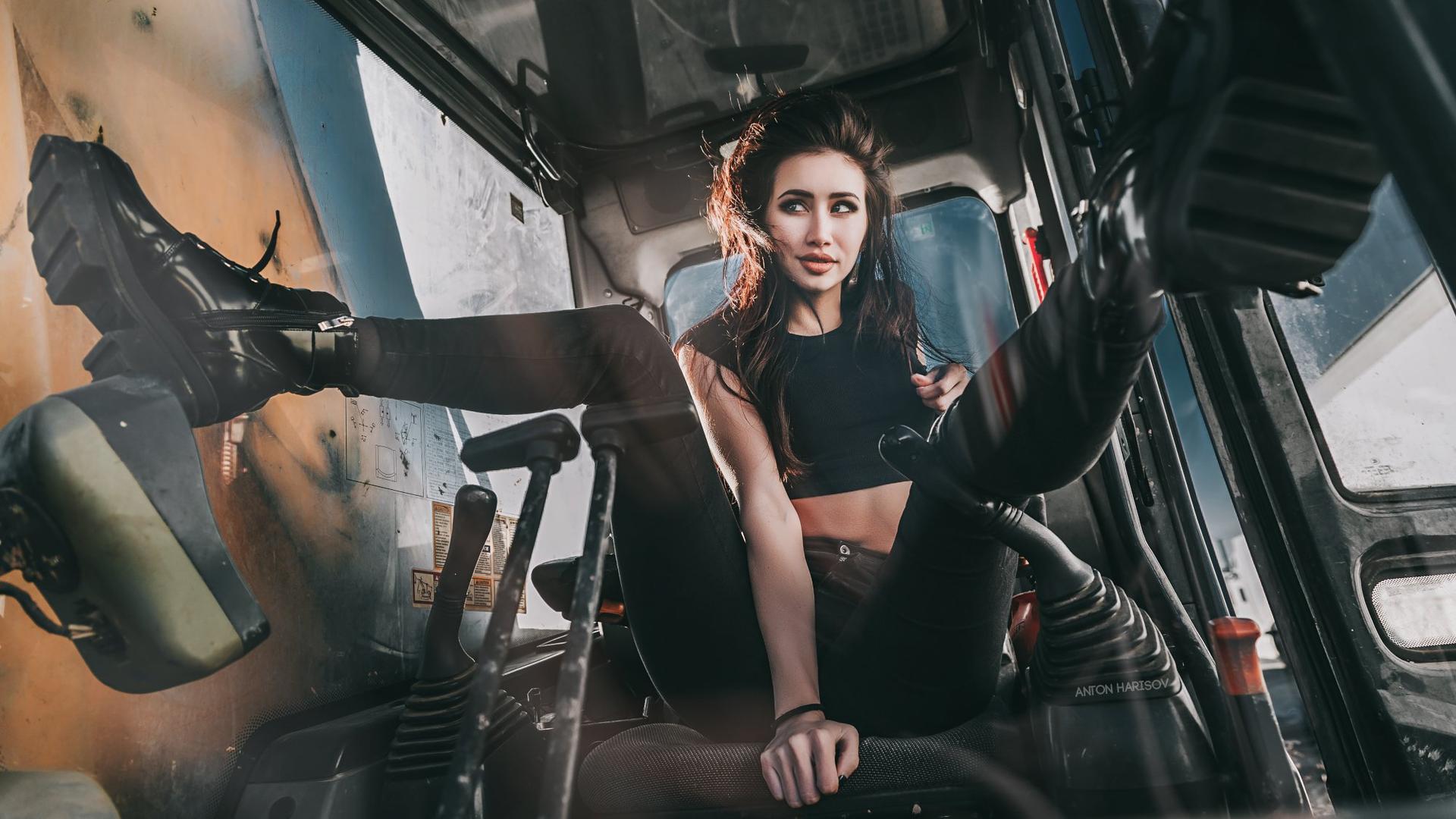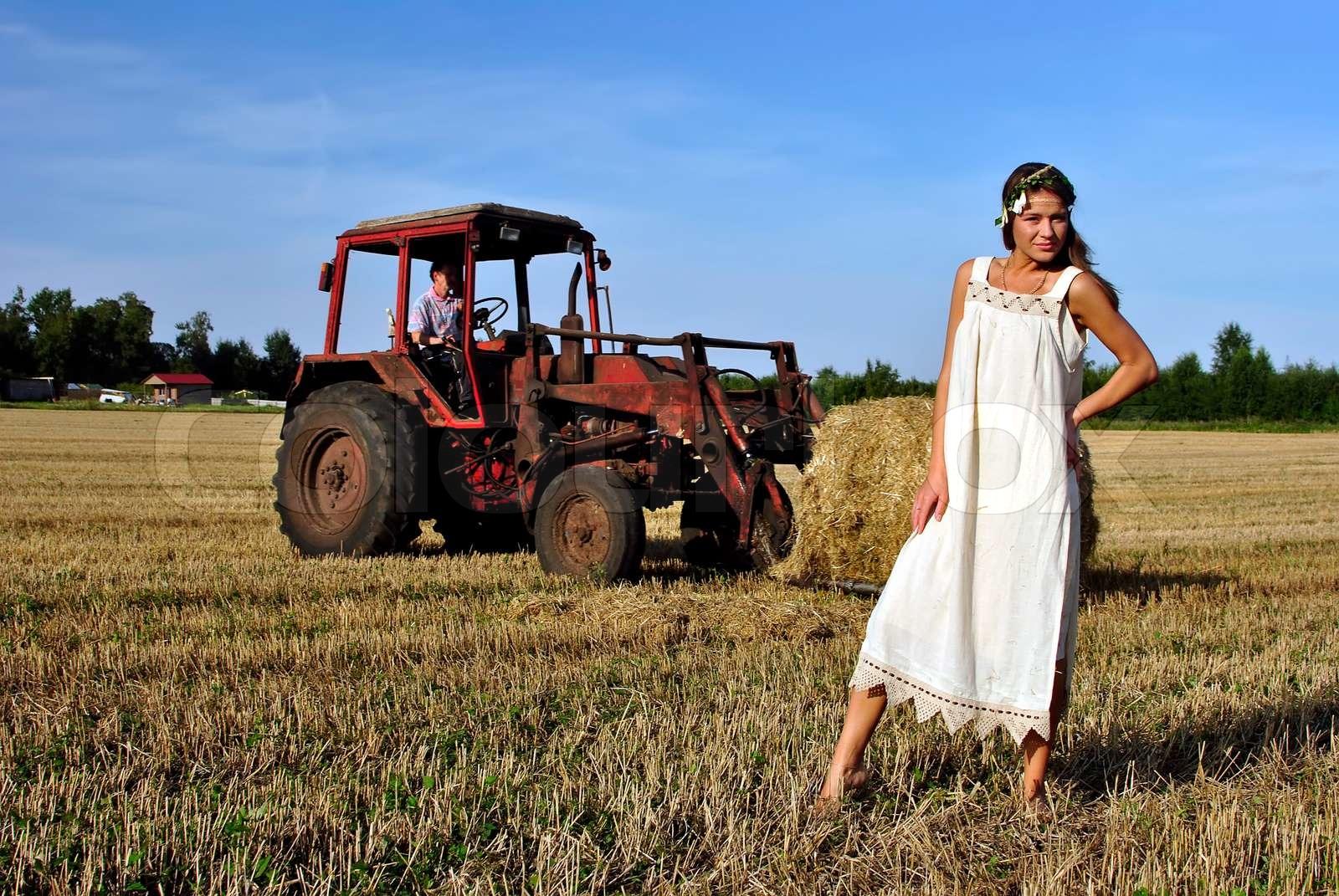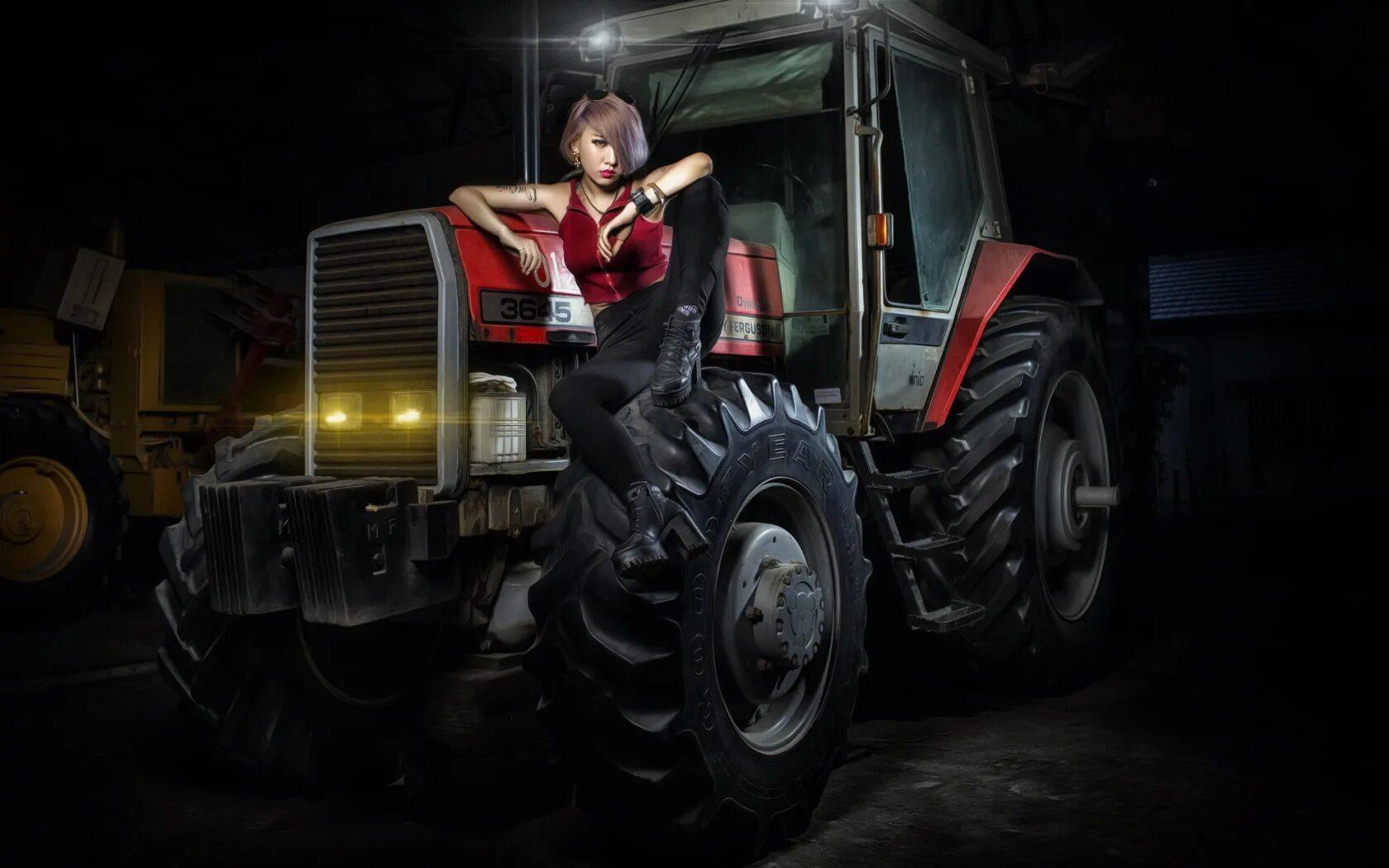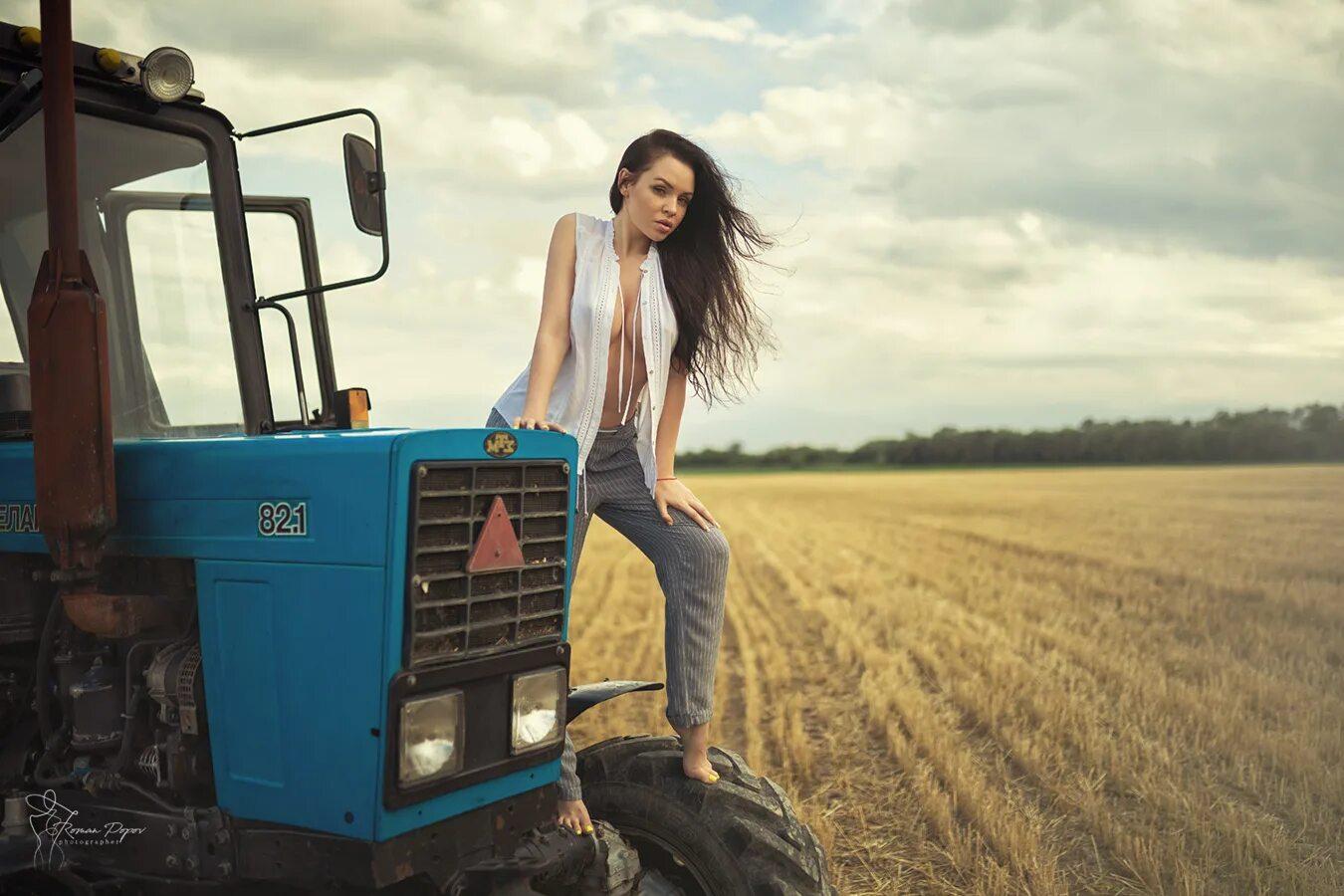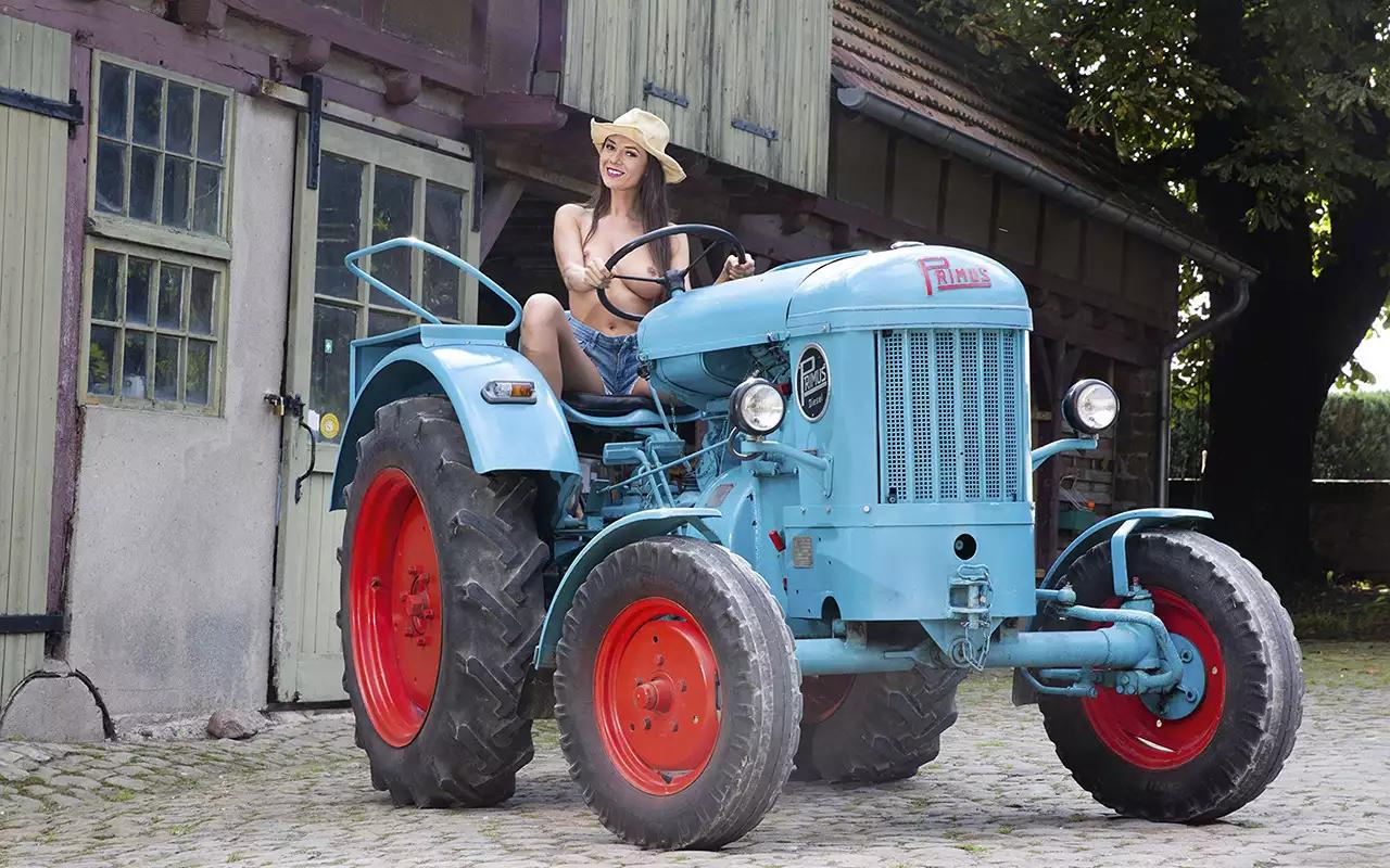 Девушка на тракторе