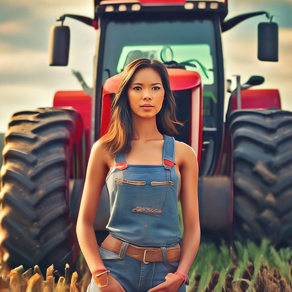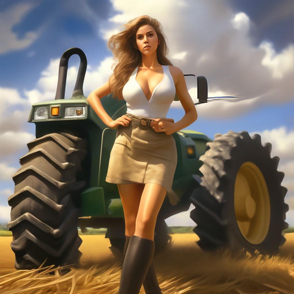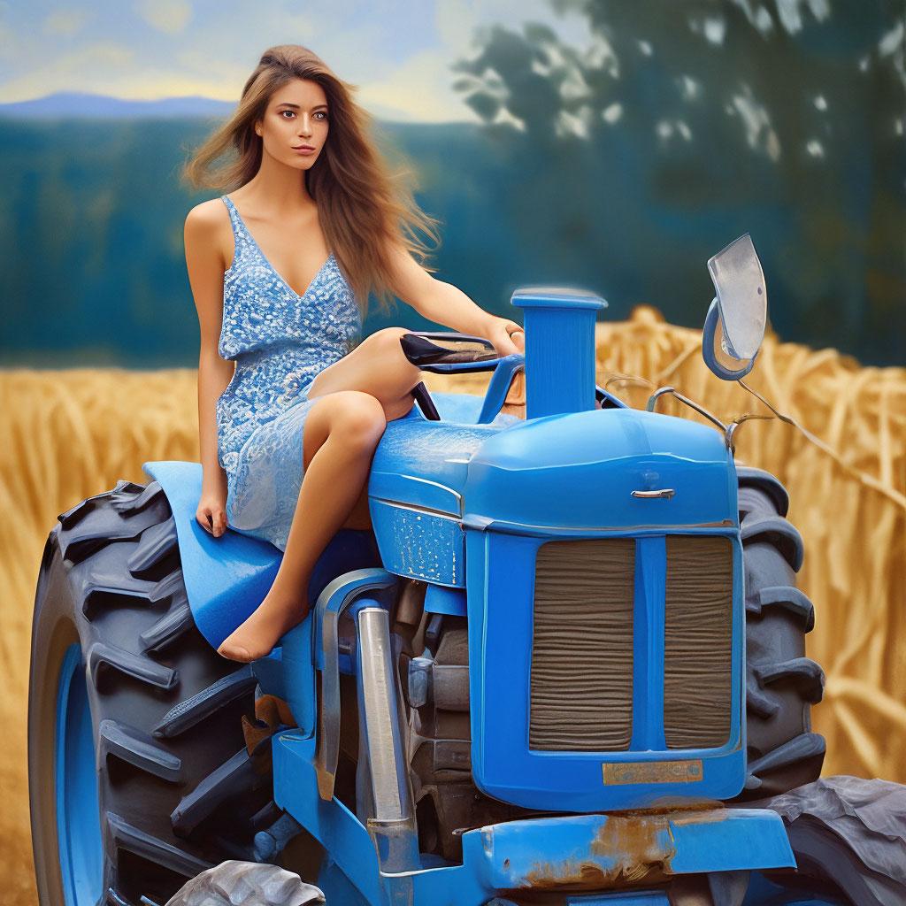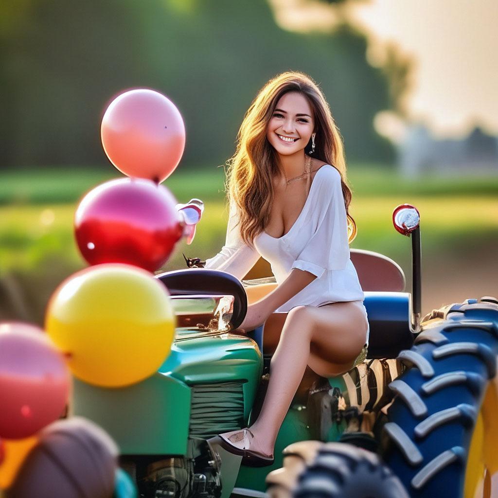 Необычное сочетание нежной женственности и мощной сельскохозяйственной техники создает запоминающиеся композиции в этих фотографиях. Девушка уверенно сидит за рулем трактора, ее руки крепко держат рычаги управления, а взгляд выражает сосредоточенность и решимость. Просторные поля или фермерский двор становятся фоном для этих необычных портретов. Ее рабочая одежда - клетчатая рубашка и джинсы - идеально дополняет образ современной фермерши. Волосы собраны в практичную прическу или развиваются на ветру из открытого окна кабины. Каждый снимок рассказывает историю о силе характера и умении справляться с любыми вызовами. Девушка то улыбается, демонстрируя белоснежные зубы, то серьезно смотрит вдаль, планируя следующий маневр. Фотографии показывают контраст между хрупкой фигурой и массивной машиной, подчеркивая внутреннюю силу героини. Эти иллюстрации вдохновляют на преодоление стереотипов и уважение к женскому труду в любой сфере деятельности.