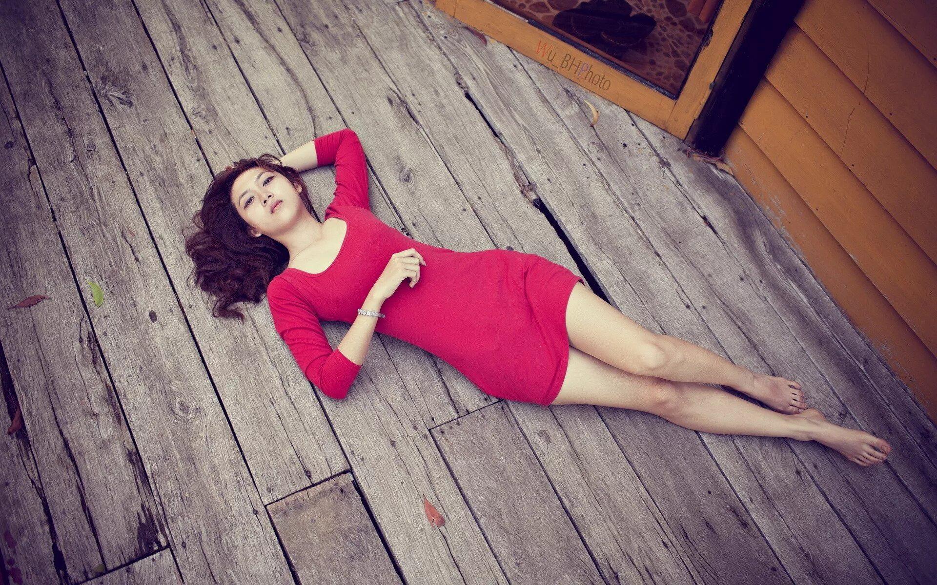 Девушка лежит на полу