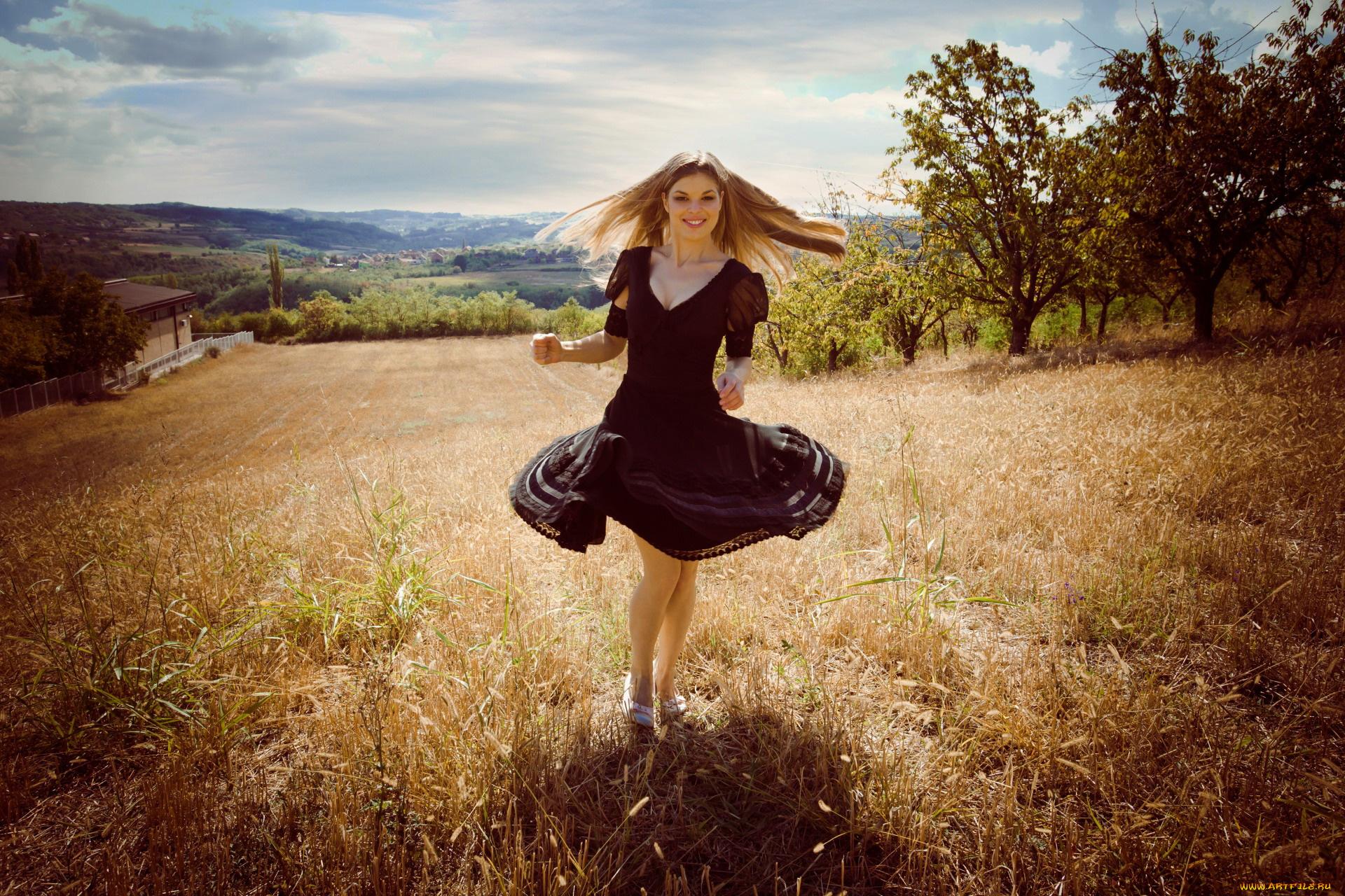 Ветер в волосах: бег как танец жизни Девушка в легком платье Эрин Уоссон Dress Девушка в длинном платье бежит Фитнес модели Физическая активность Девушки