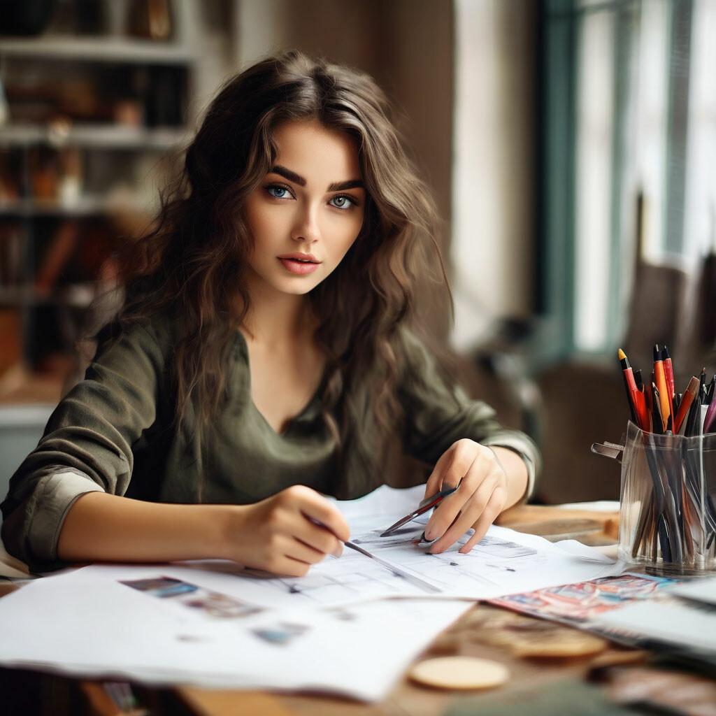 Дизайн - это не просто профессия, это образ жизни, который проникает во все сферы деятельности творческой девушки. Эти иллюстрации показывают, как креативность может проявляться в образах, одежде и окружающей обстановке, создавая уникальные комбинации. Каждая фотография рассказывает о моменте вдохновения, когда идеи становятся реальностью. Тематические элементы инструментов, материалов и рабочих пространств подчеркивают творческий процесс и его результаты. Такие фото помогают понять, как дизайн может трансформировать обыденность в искусство и вдохновлять на новые достижения.